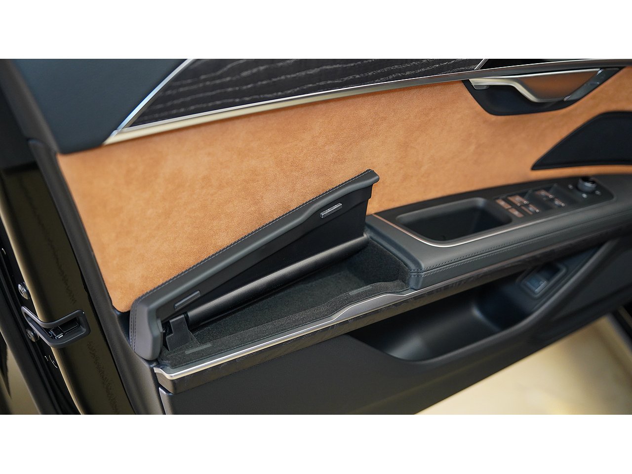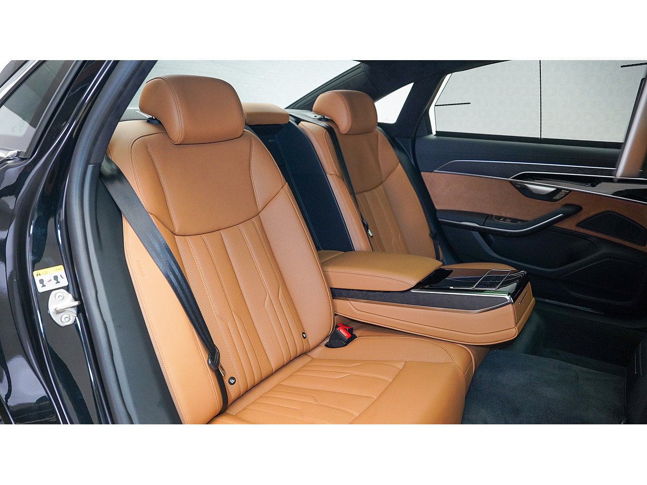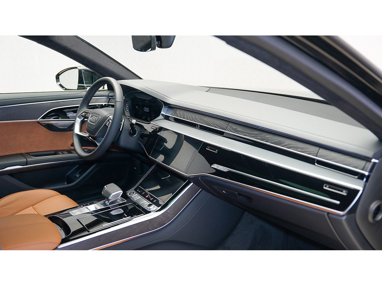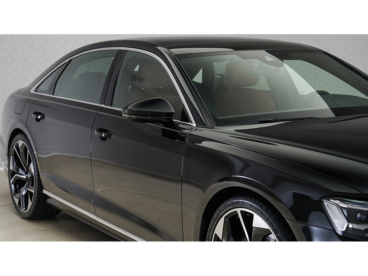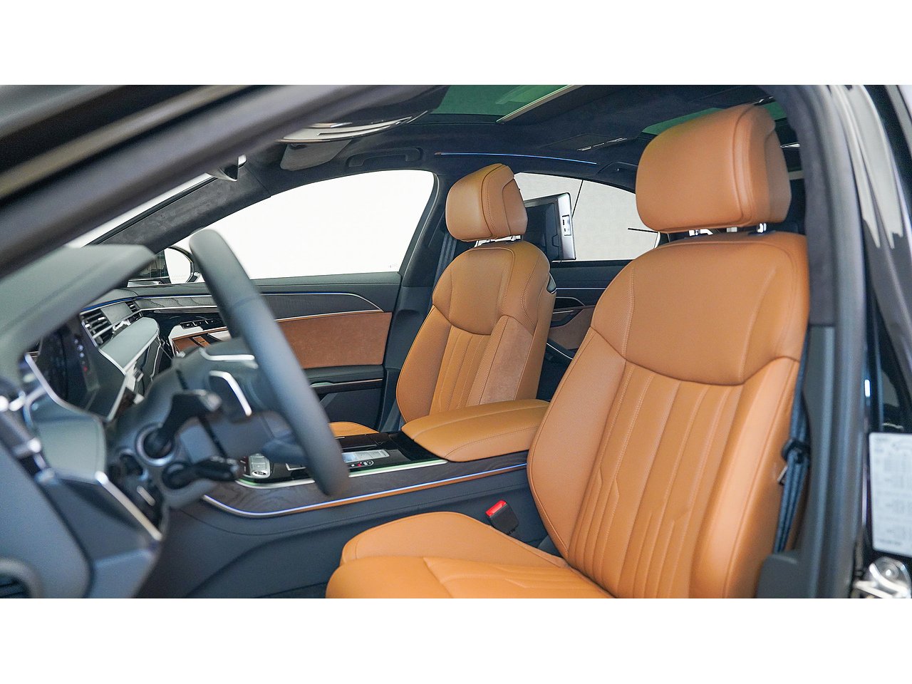 Brand new 2026 Audi A8 55 TFSI Long in Mythos Black with Cognac Brown Valcona leather, GCC specification with delivery mileage and full warranty plus service coverage. A highly specified executive sedan enhanced with 22-inch RS Design forged alloys and rear seat entertainment, presenting a rare opportunity to secure immediate ownership at a compelling advantage over list price.