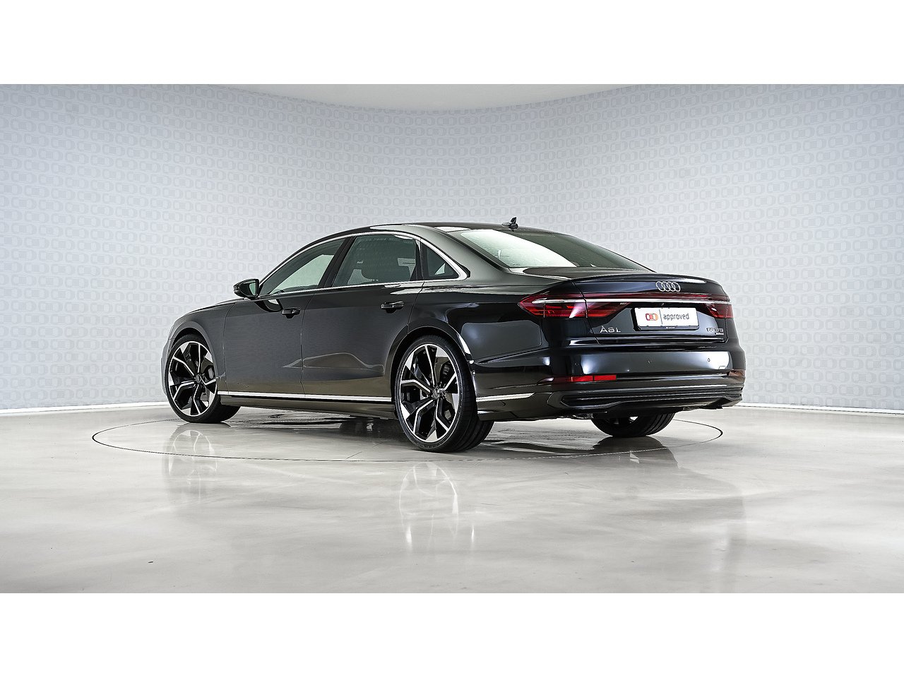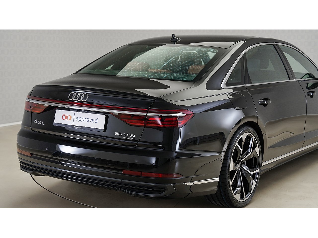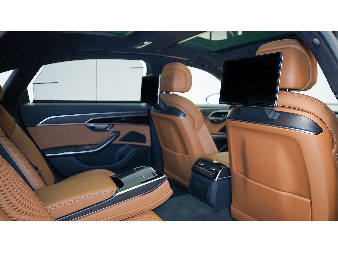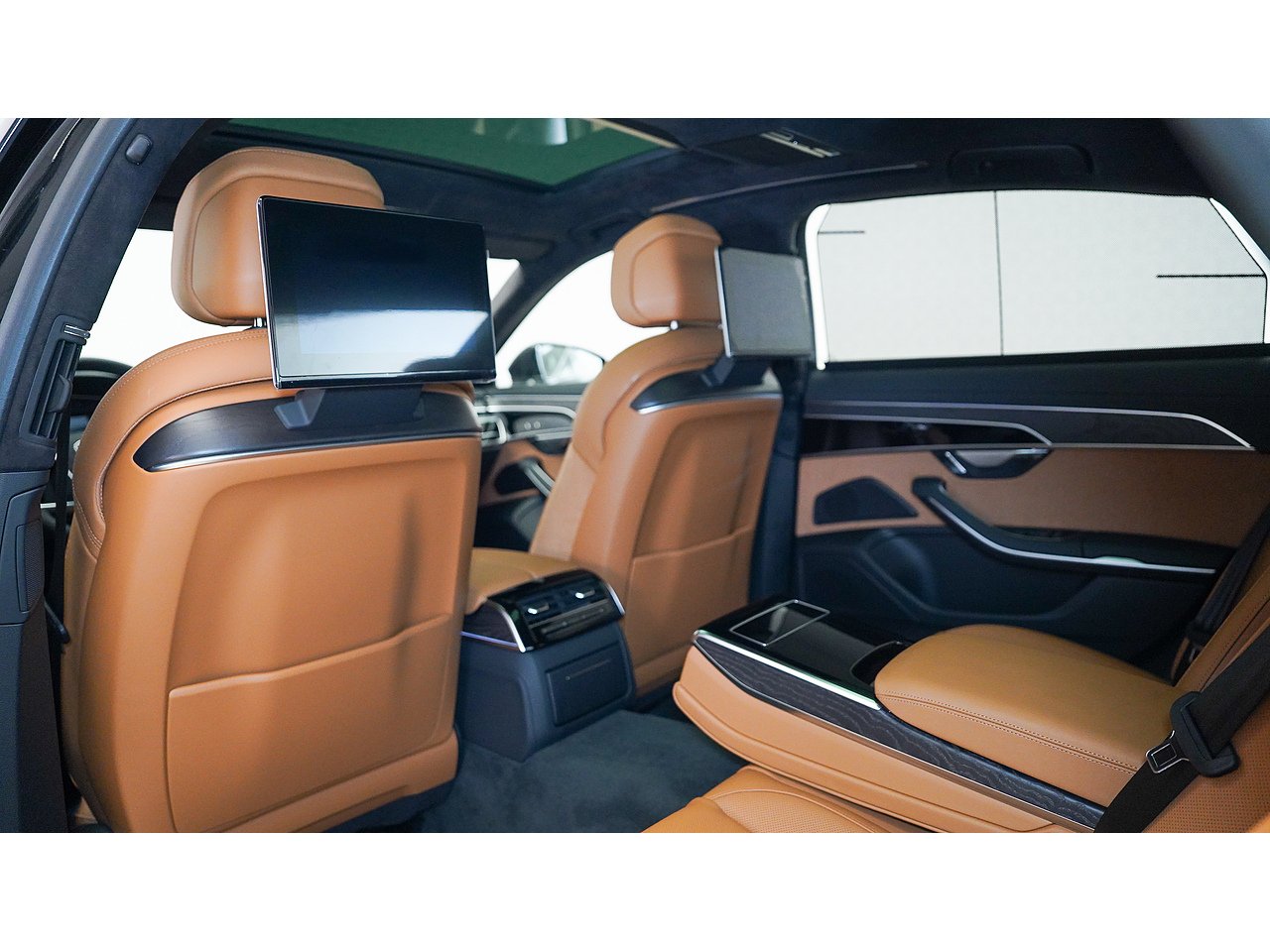 Brand new 2026 Audi A8 55 TFSI Long in Mythos Black with Cognac Brown Valcona leather, GCC specification with delivery mileage and full warranty plus service coverage. A highly specified executive sedan enhanced with 22-inch RS Design forged alloys and rear seat entertainment, presenting a rare opportunity to secure immediate ownership at a compelling advantage over list price.