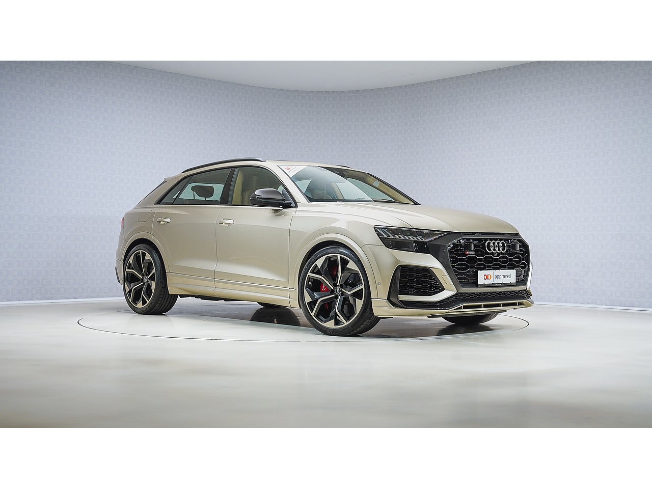 The 2022 Audi RS Q8 TFSI Quattro Carbon Exclusive Edition stands out as an Audi Exclusive model, featuring a rare Vicuna Beige exterior and a luxurious Cognac Exclusive interior. This bespoke color combination enhances the RSQ8’s aggressive stance, complemented by carbon fiber accents from the Carbon Edition package.