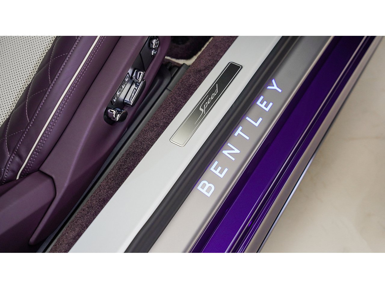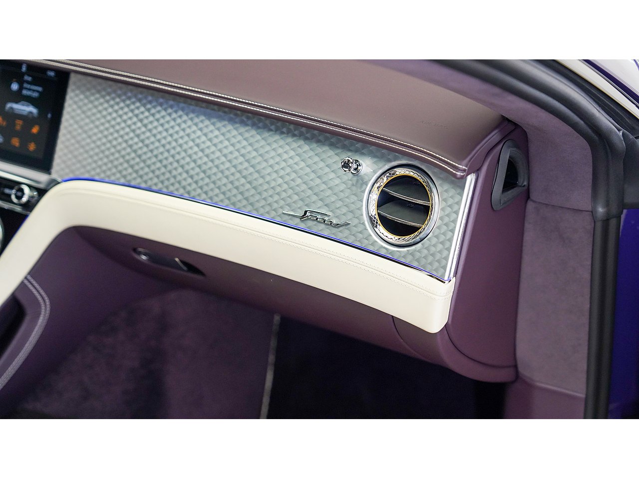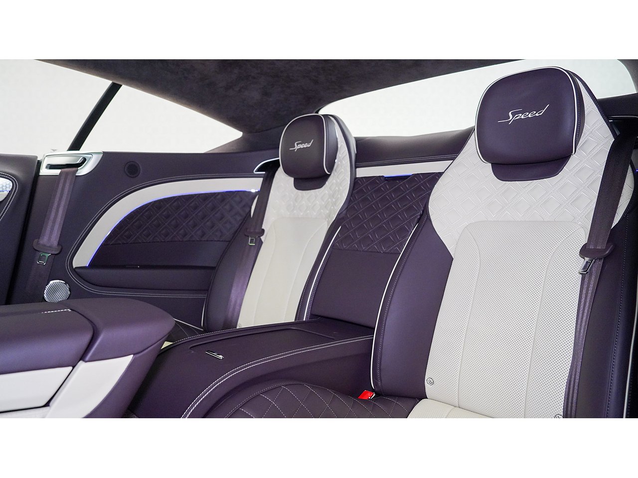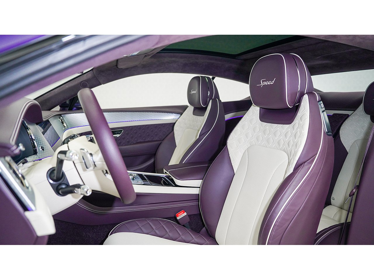 The exterior stands out with its deep Azure Purple paintwork, dark-tint brightware, Speed-specific styling, and exclusive 22-inch wheels that give the car a commanding, athletic presence. Inside, the GT Speed blends performance and craftsmanship with Alcantara accents, diamond quilting and Speed embroidery creating an environment that is both luxurious and driver-focused.