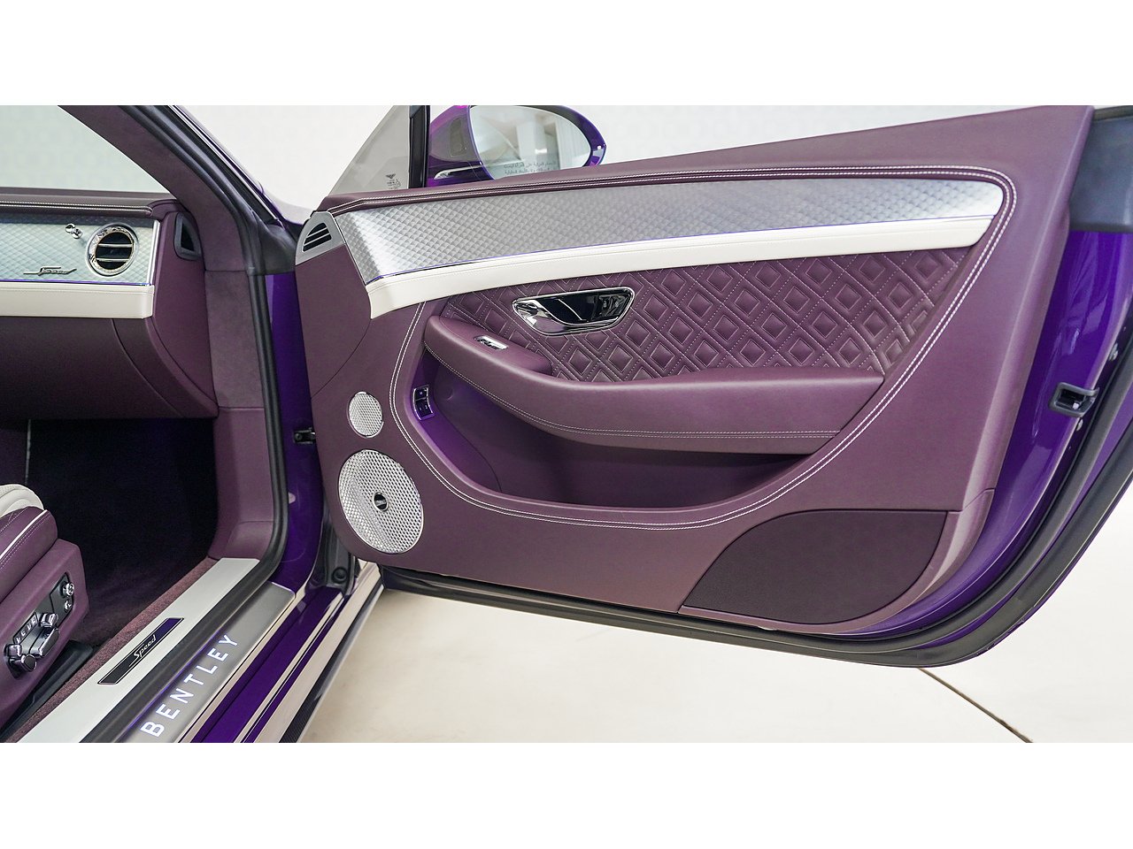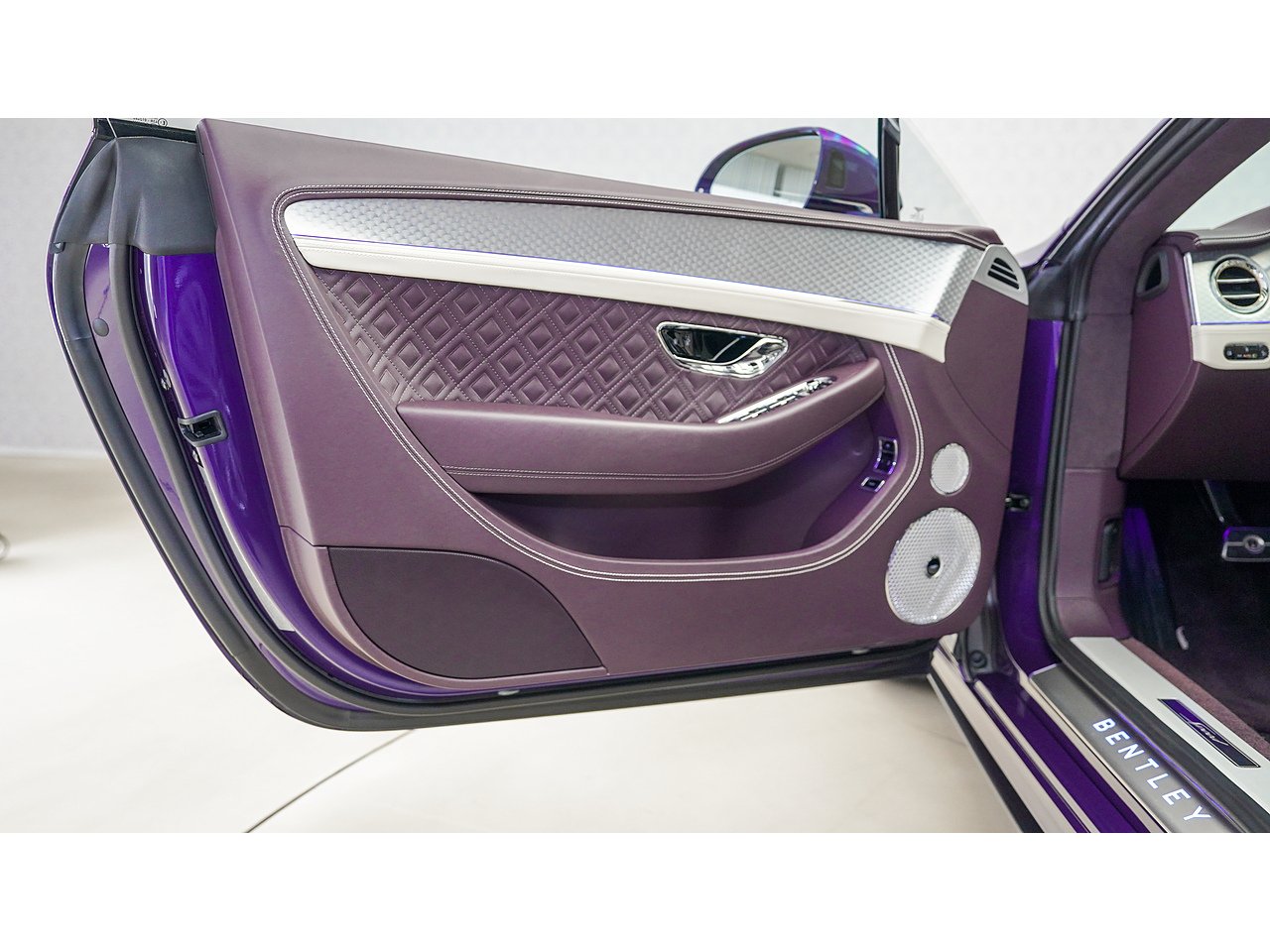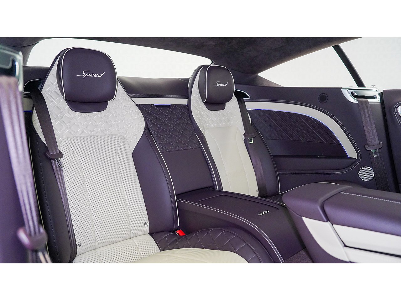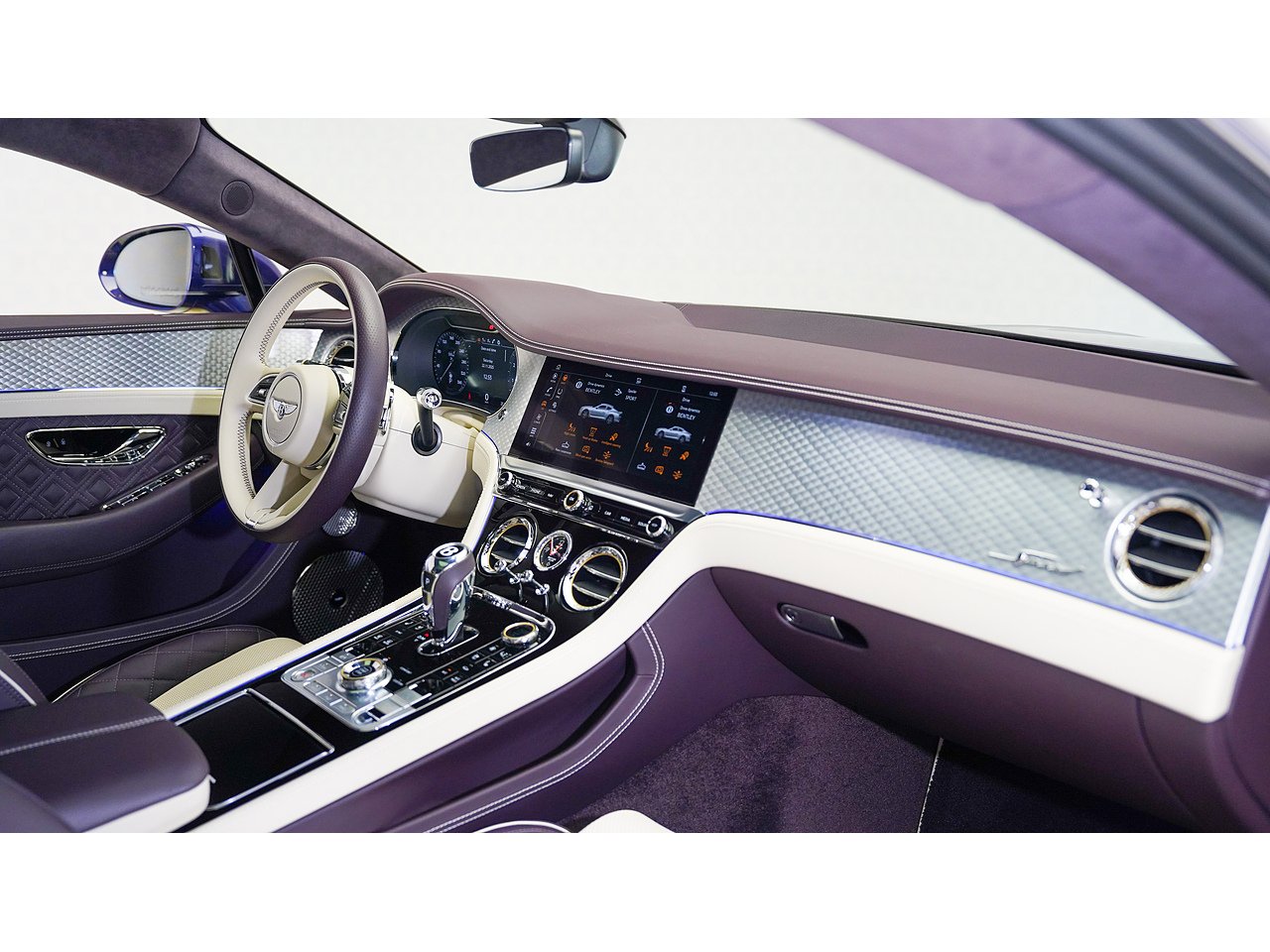 The exterior stands out with its deep Azure Purple paintwork, dark-tint brightware, Speed-specific styling, and exclusive 22-inch wheels that give the car a commanding, athletic presence. Inside, the GT Speed blends performance and craftsmanship with Alcantara accents, diamond quilting and Speed embroidery creating an environment that is both luxurious and driver-focused.