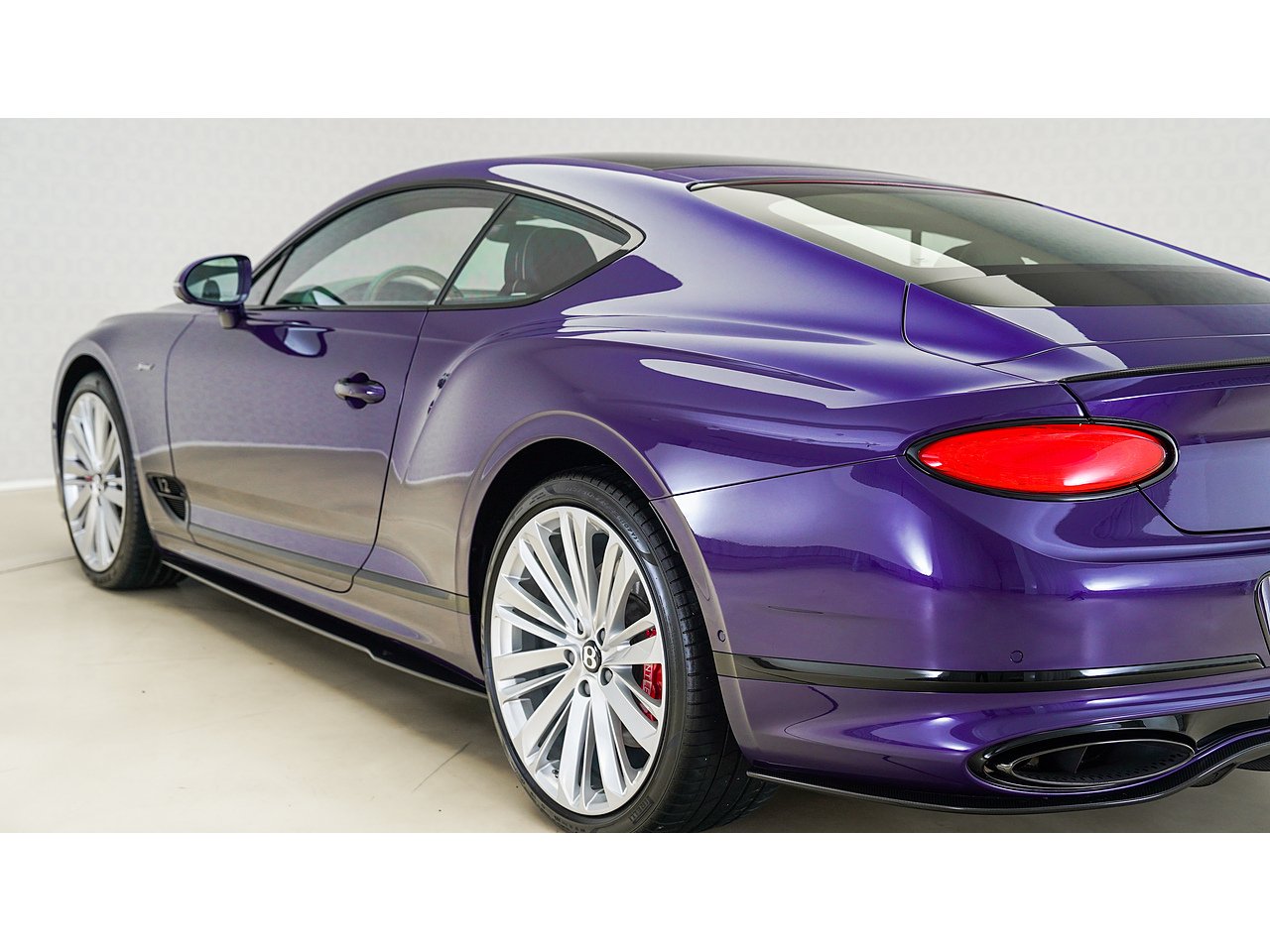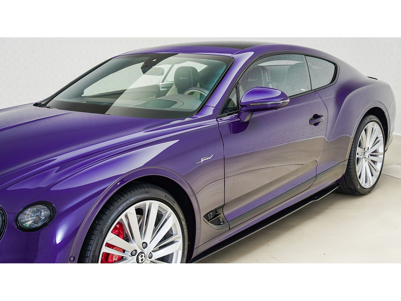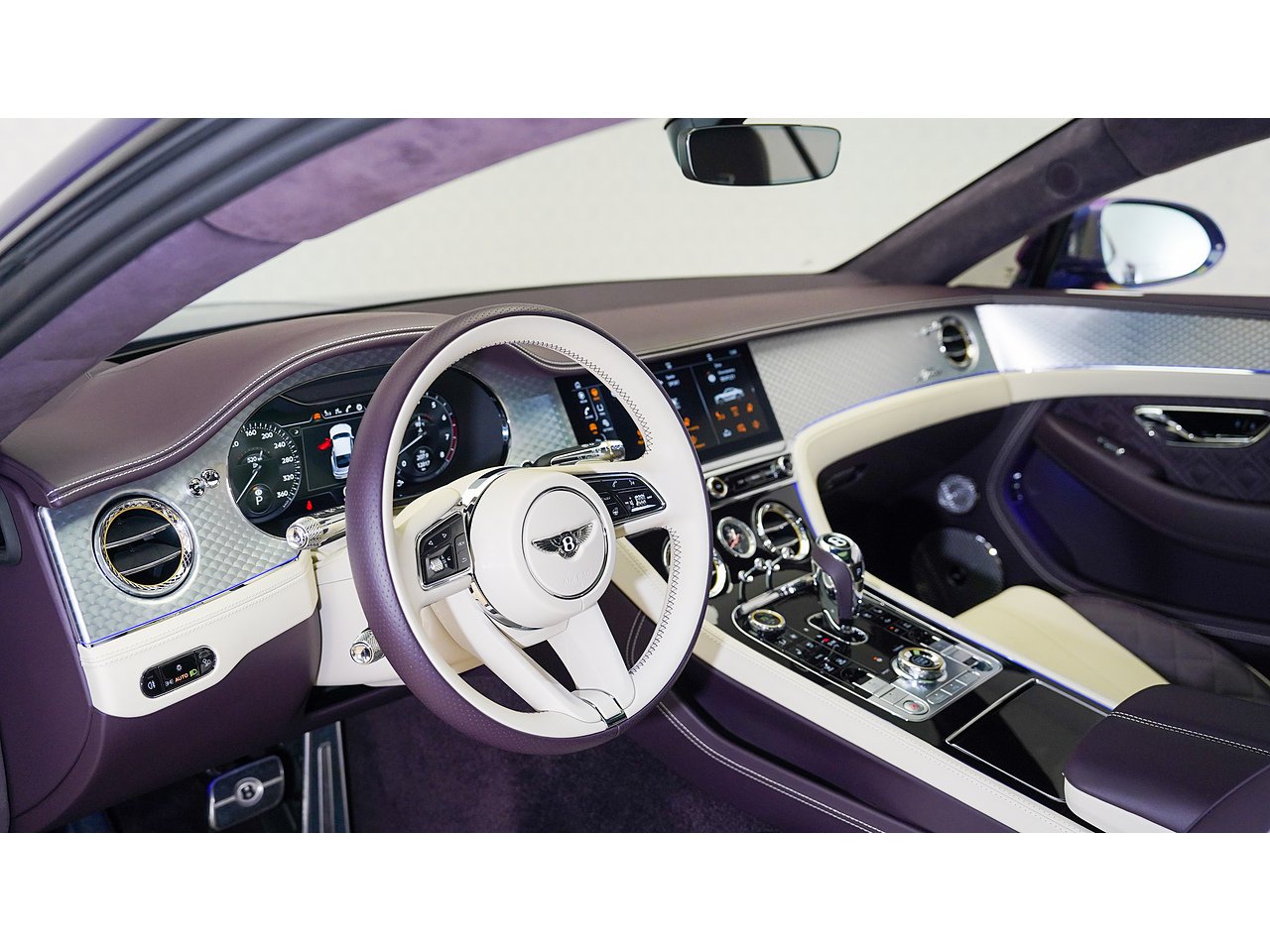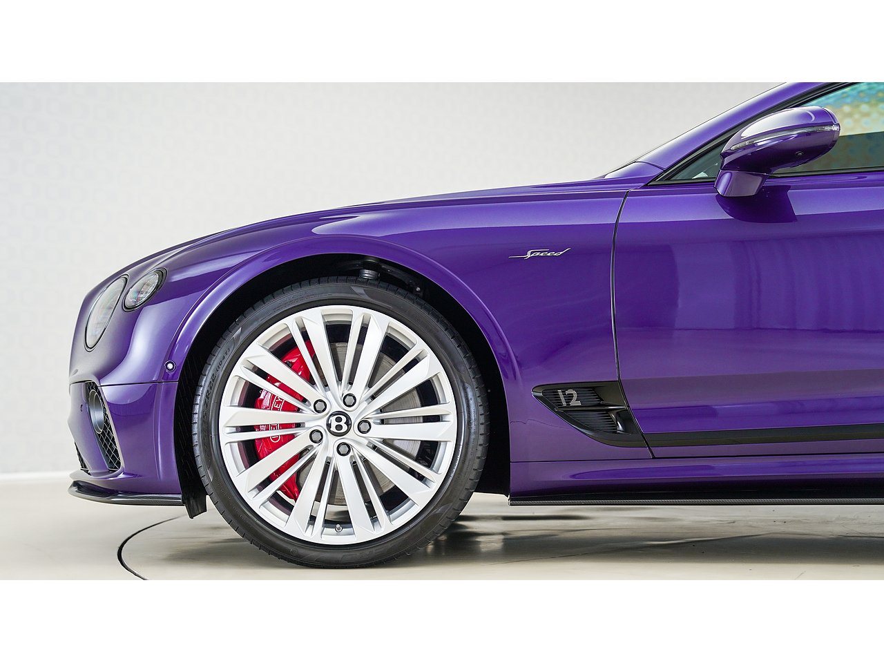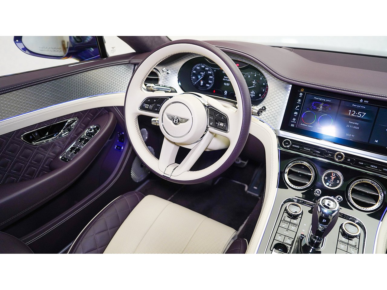 The exterior stands out with its deep Azure Purple paintwork, dark-tint brightware, Speed-specific styling, and exclusive 22-inch wheels that give the car a commanding, athletic presence. Inside, the GT Speed blends performance and craftsmanship with Alcantara accents, diamond quilting and Speed embroidery creating an environment that is both luxurious and driver-focused.