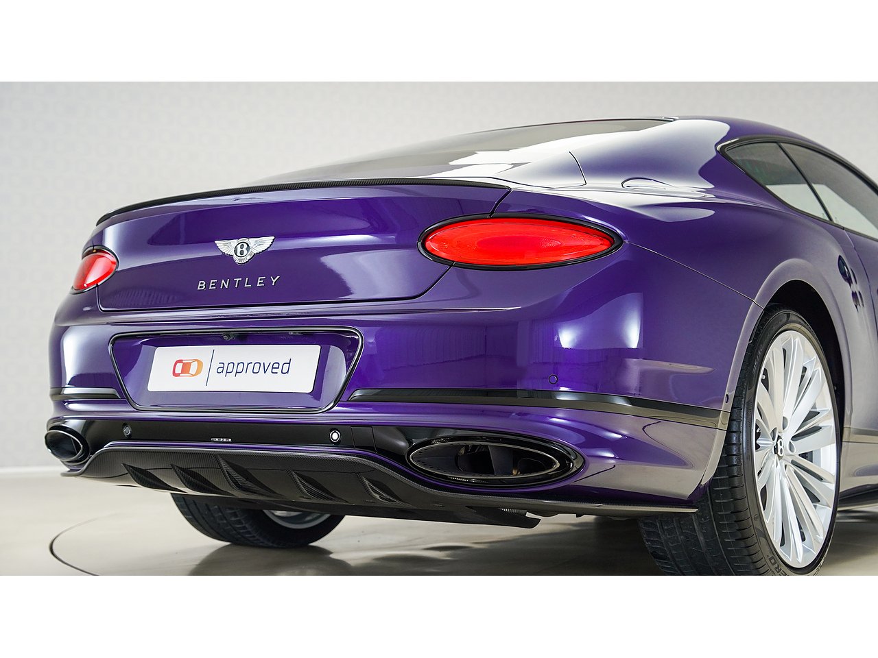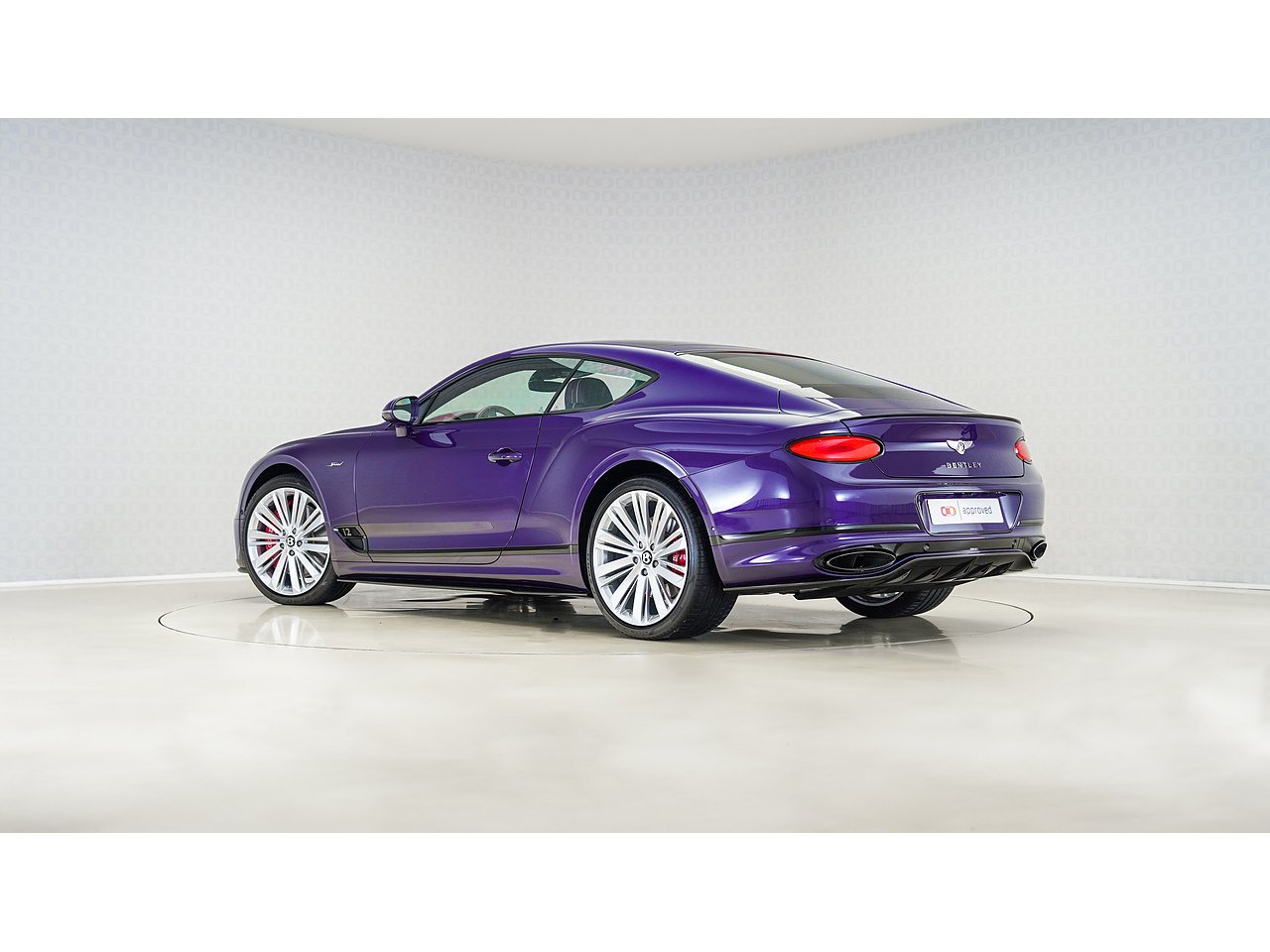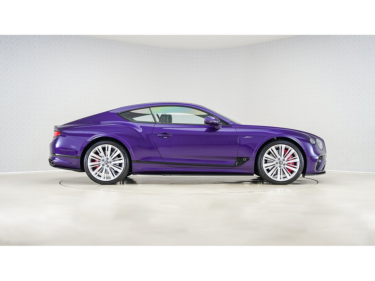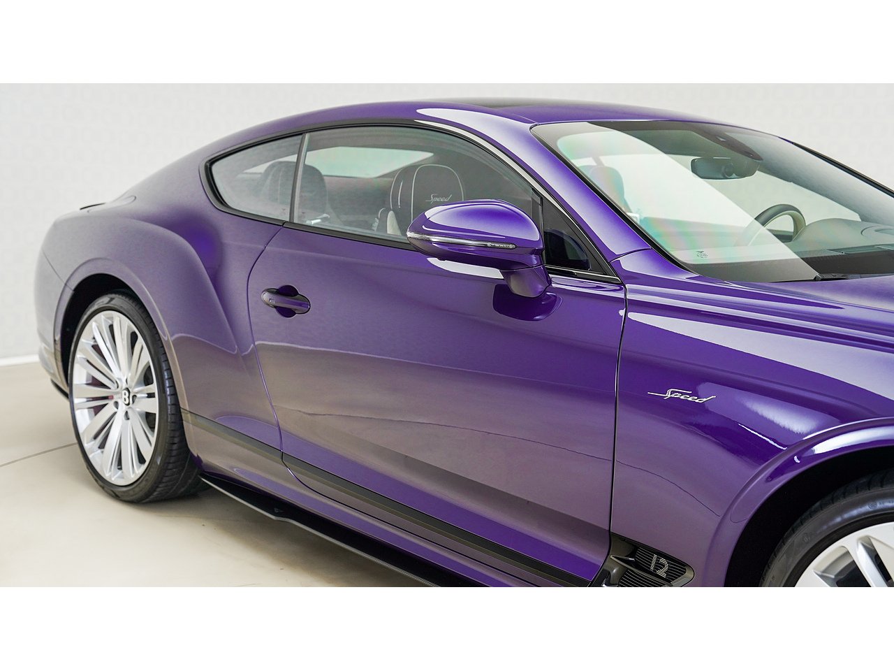 The exterior stands out with its deep Azure Purple paintwork, dark-tint brightware, Speed-specific styling, and exclusive 22-inch wheels that give the car a commanding, athletic presence. Inside, the GT Speed blends performance and craftsmanship with Alcantara accents, diamond quilting and Speed embroidery creating an environment that is both luxurious and driver-focused.