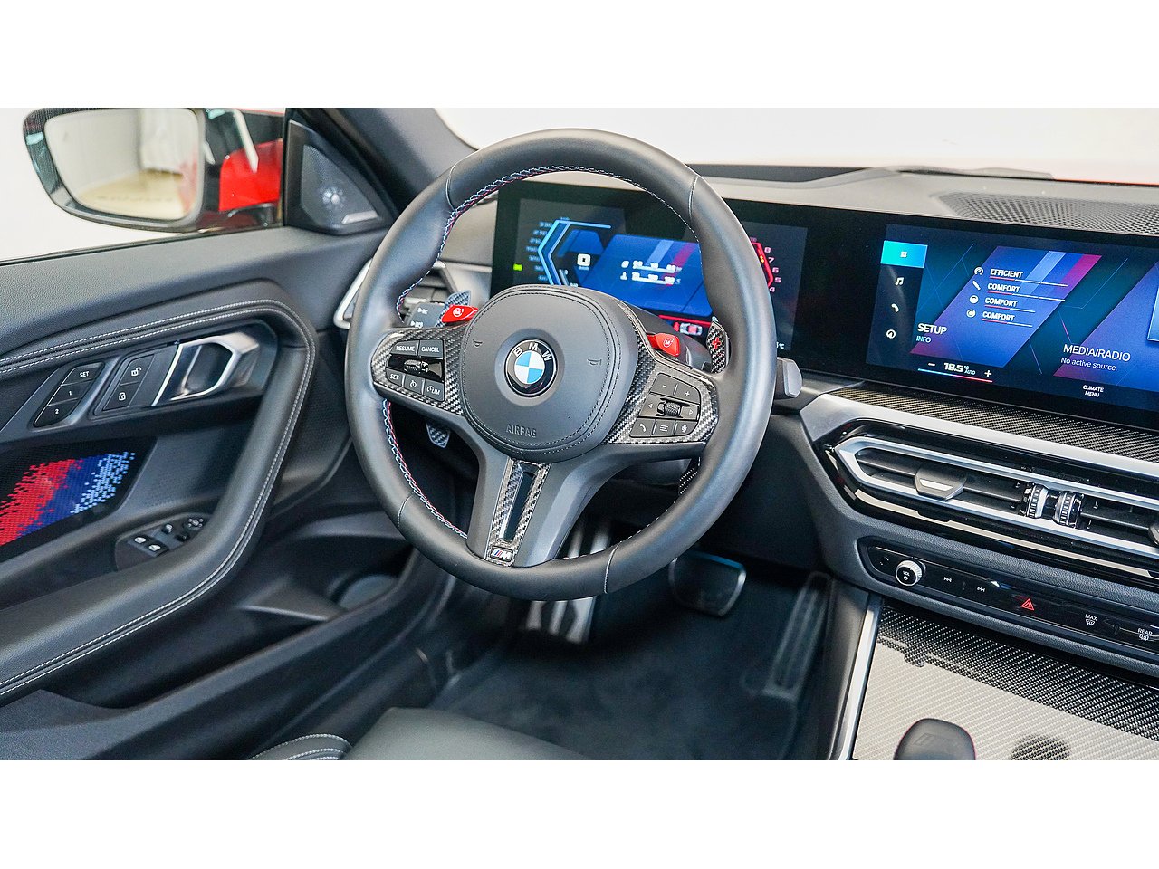 This 2024 BMW M2 combines compact proportions with full-fat M performance, finished in Toronto Red over a Black Vernasca Leather interior. Power comes from the 3.0-litre twin-turbo inline-six producing 460 hp, delivering 0–100 km/h in approximately 4.1 seconds with classic rear-wheel-drive balance and sharp M chassis tuning.
