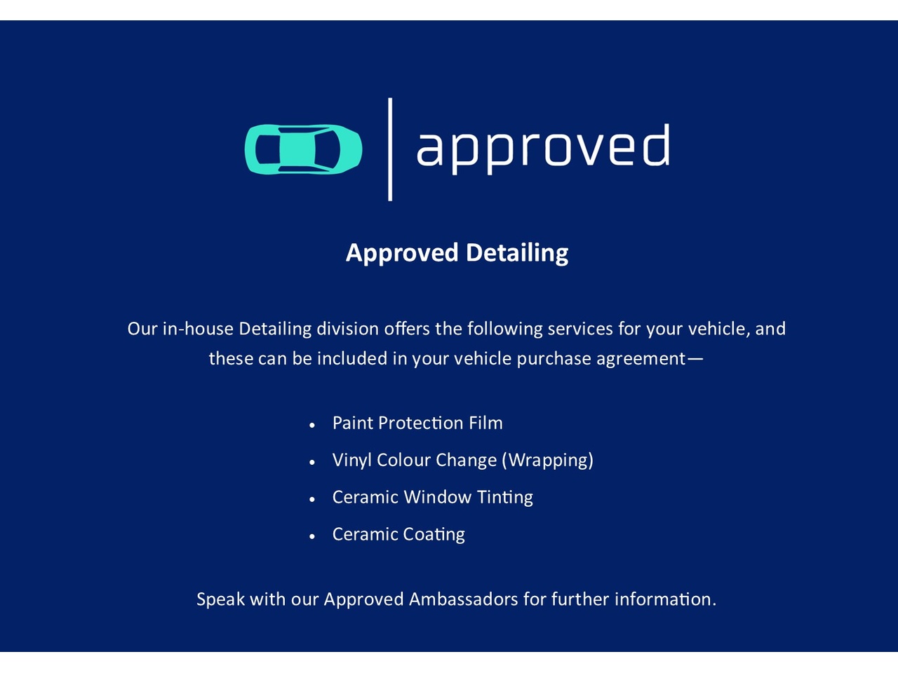 At Approved, all our vehicles are pre-inspected by an independent workshop, and are prepared to an exceptional standard, and we offer full facilities including financial options, trade-in facility and value-added services, including insurances, paint protection, window tinting and customization options.