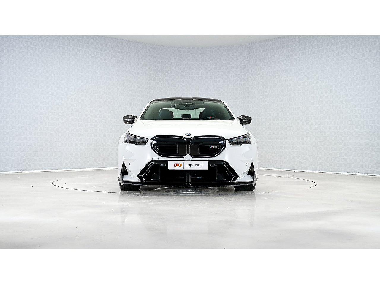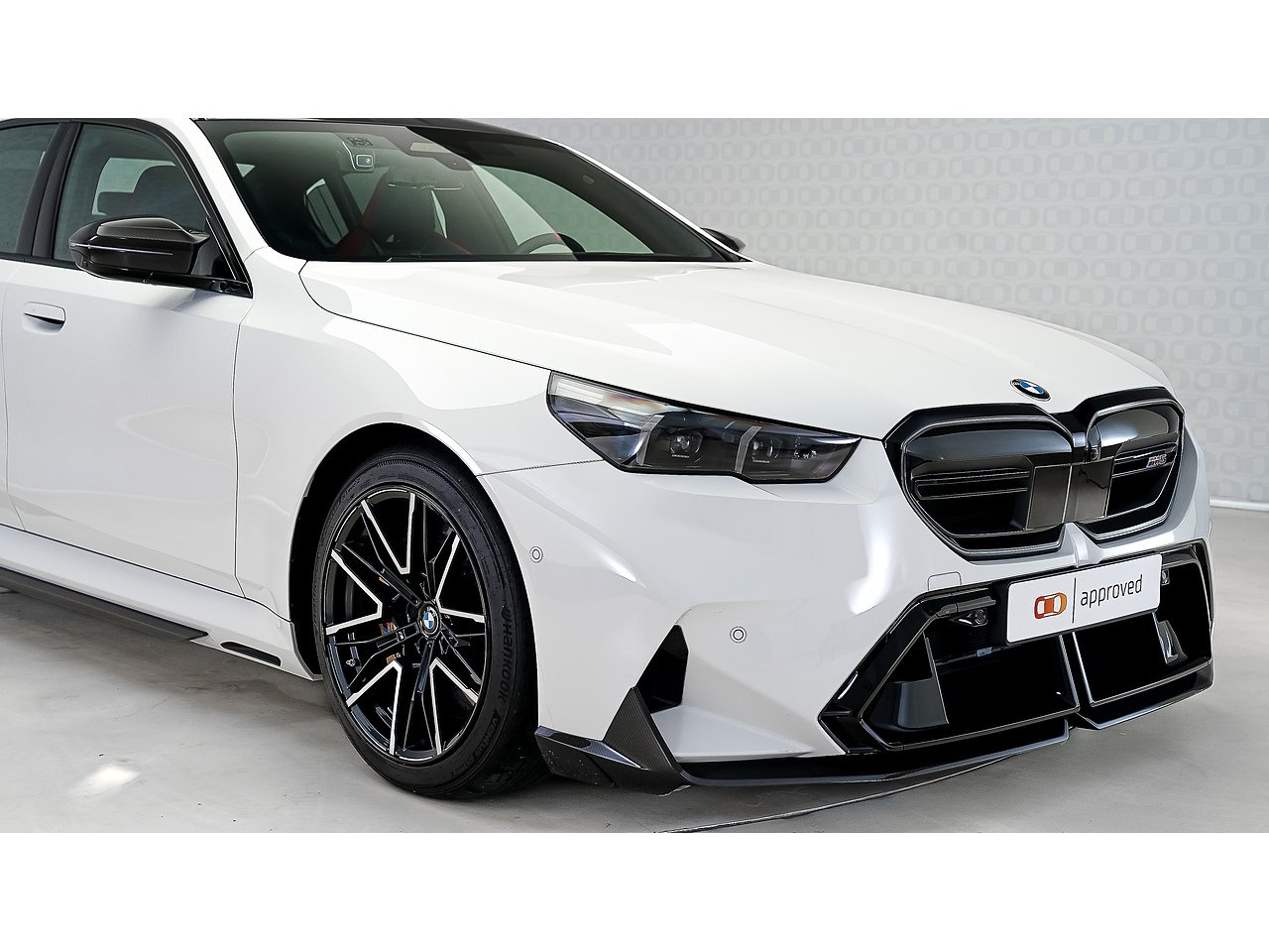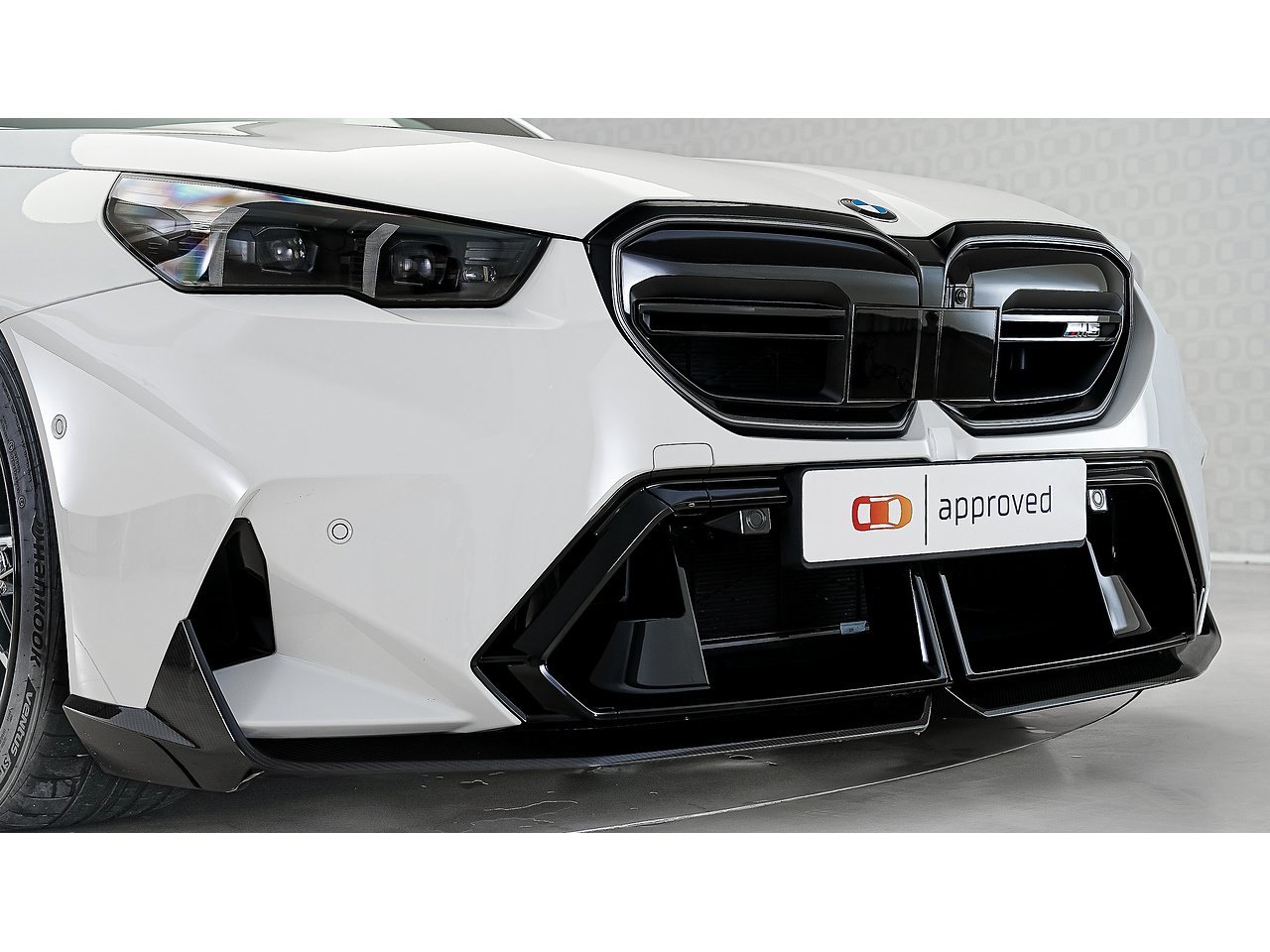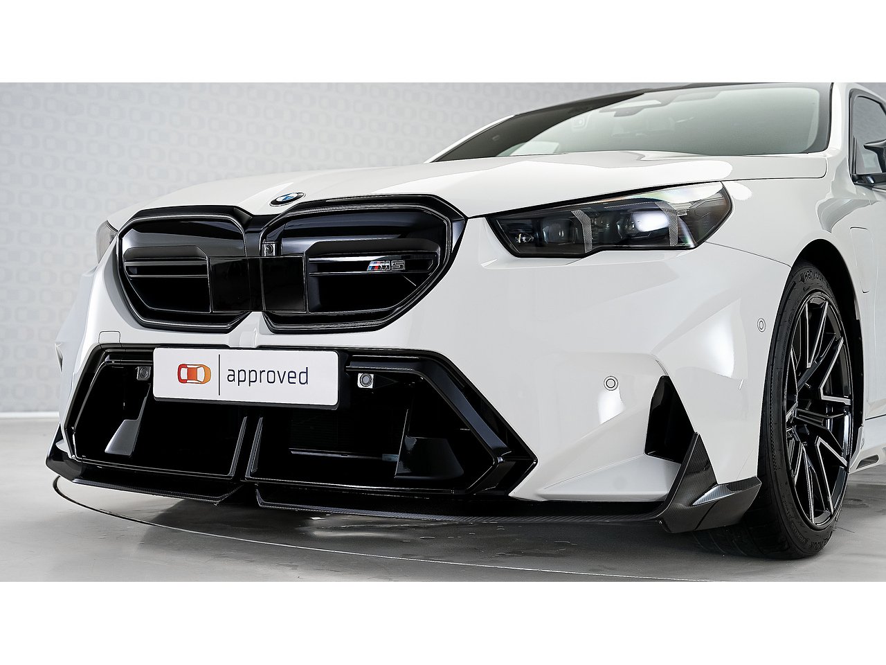 A 2025 BMW M5 M Performance in Alpine White, GCC specification with Service Inclusive Plus active, equipped with the M Performance Carbon Fibre package and M Carbon Ceramic brakes, delivering explosive twin turbo power, precision stopping performance and unmistakable motorsport presence.