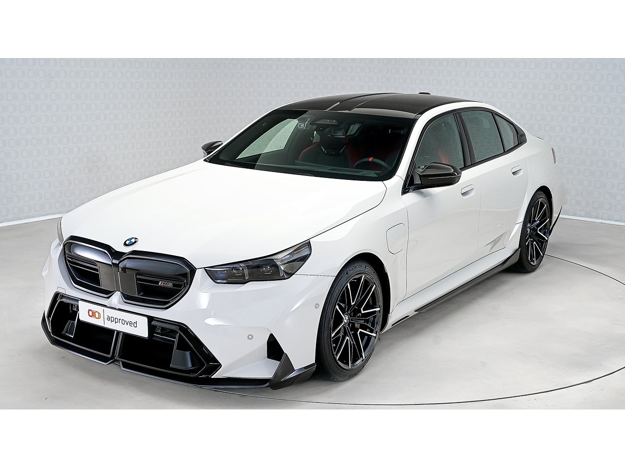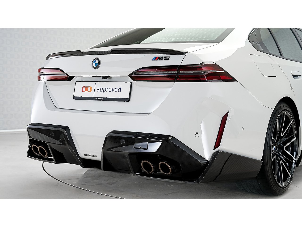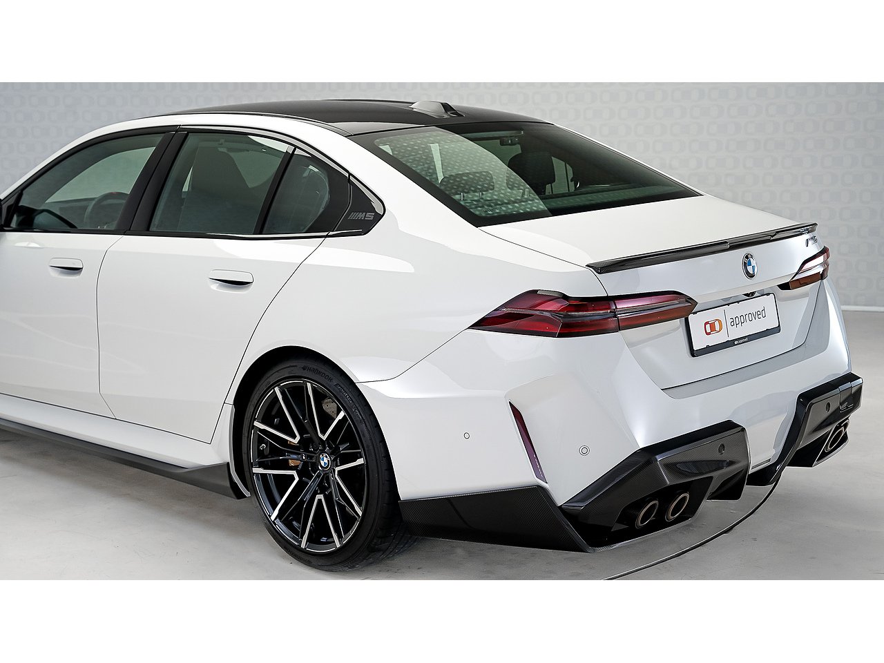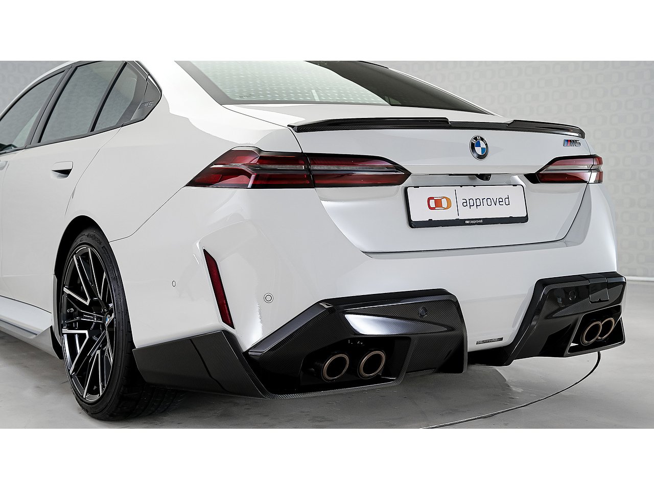 A 2025 BMW M5 M Performance in Alpine White, GCC specification with Service Inclusive Plus active, equipped with the M Performance Carbon Fibre package and M Carbon Ceramic brakes, delivering explosive twin turbo power, precision stopping performance and unmistakable motorsport presence.