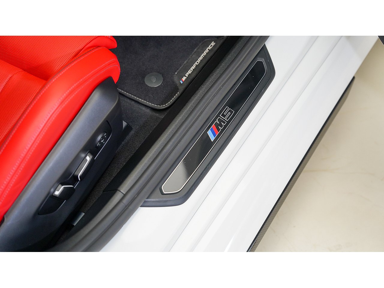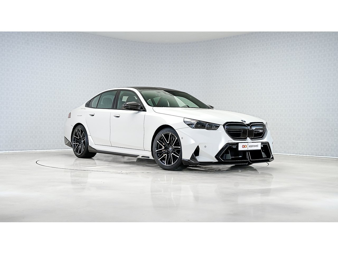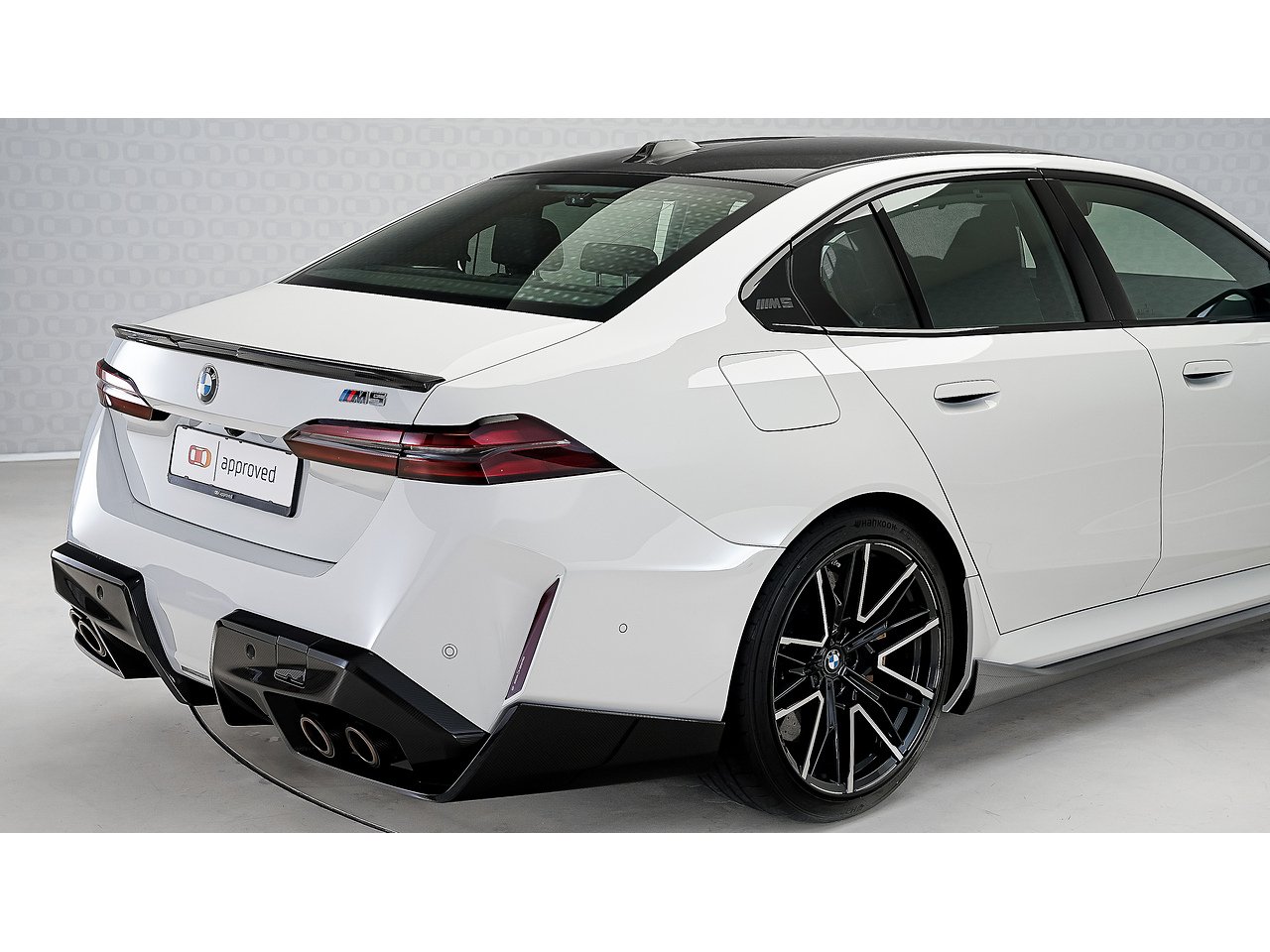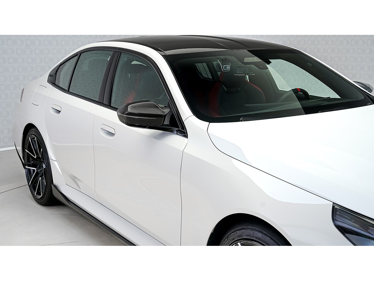 A 2025 BMW M5 M Performance in Alpine White, GCC specification with Service Inclusive Plus active, equipped with the M Performance Carbon Fibre package and M Carbon Ceramic brakes, delivering explosive twin turbo power, precision stopping performance and unmistakable motorsport presence.