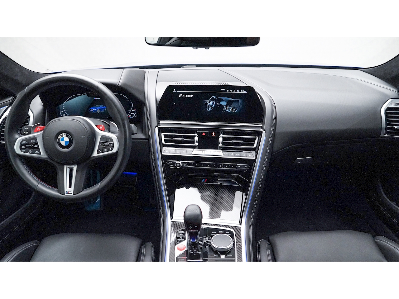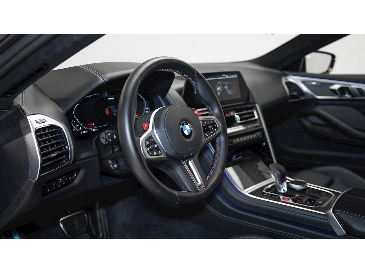 2020 BMW M8 Competition Coupe, finished in Marina Bay Blue Metallic with Full Black Merino Leather.