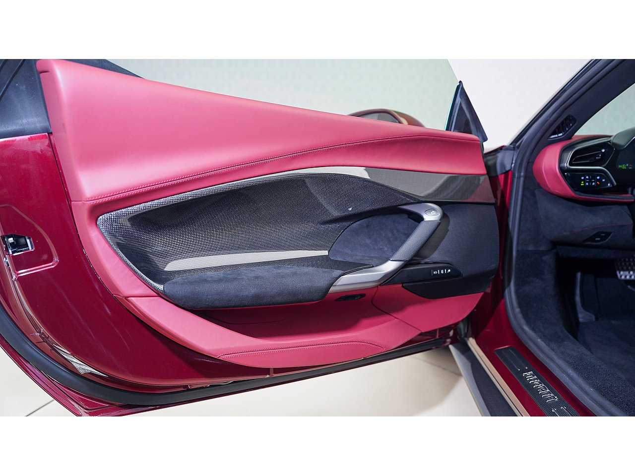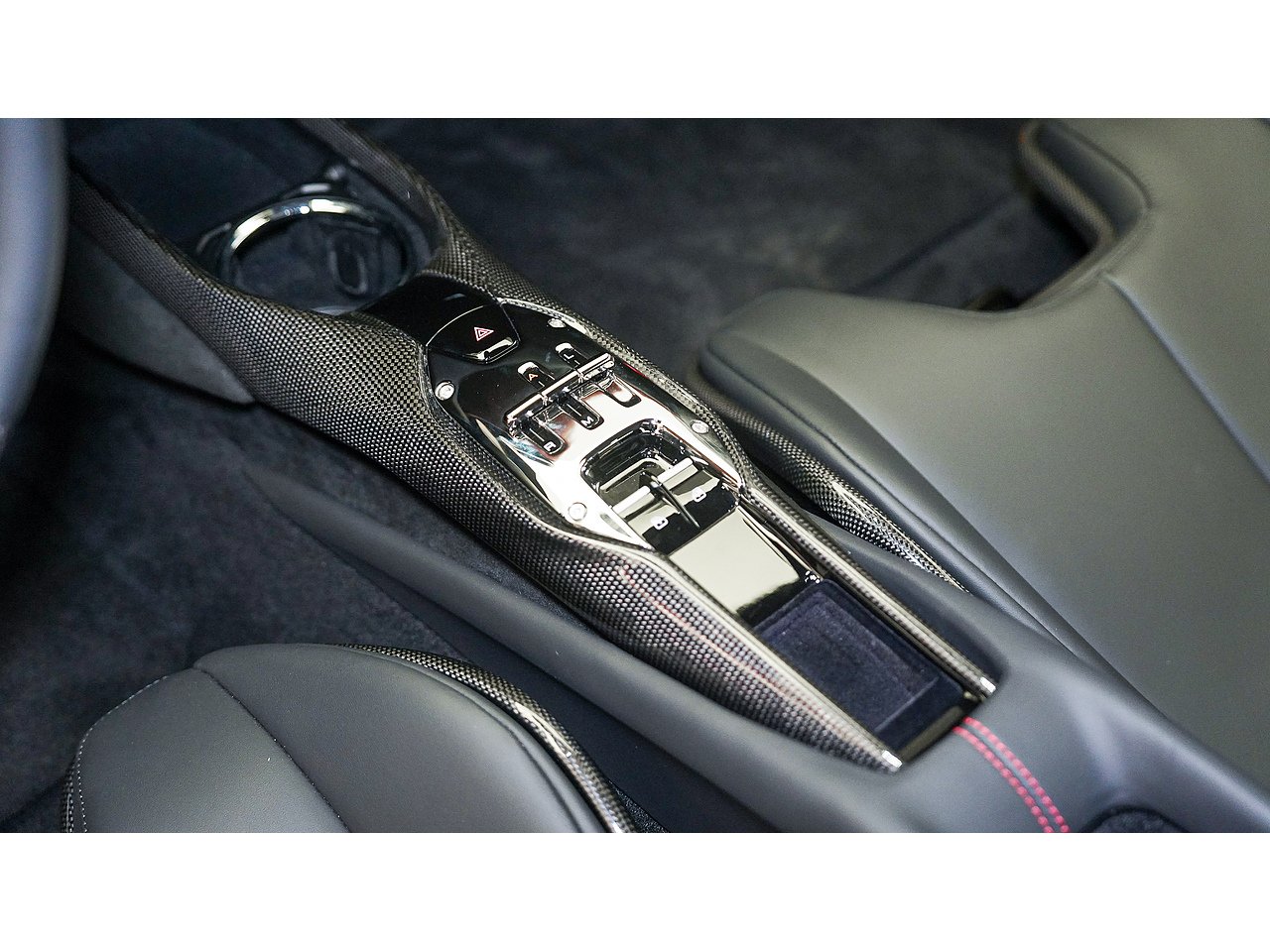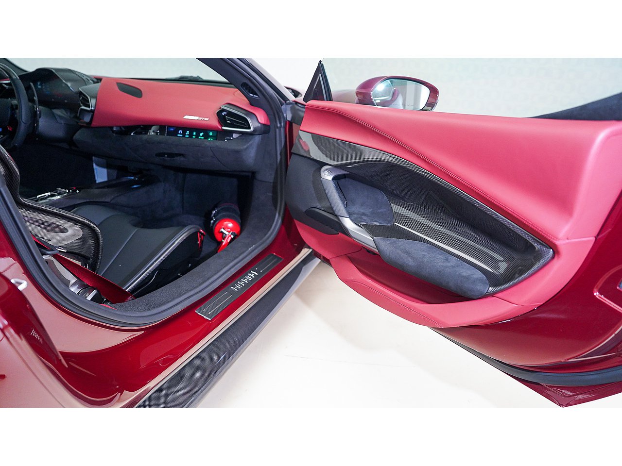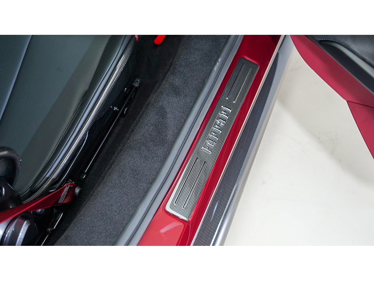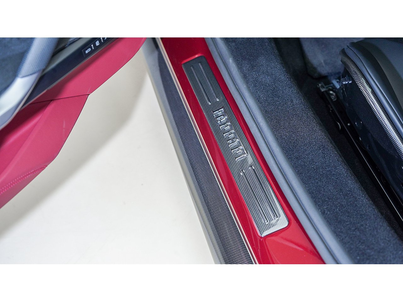 Beautifully configured with extensive carbon fibre options including diffuser, door panels, and instrument cluster trim, complemented by carbon fibre racing seats, matte diamond-polished forged wheels, and the Cavallino stitched in Bordeaux on the headrests. The cabin features Nero and Bordeaux dual-tone leather with coloured inner details and stitching, adding a rich sense of contrast and exclusivity.