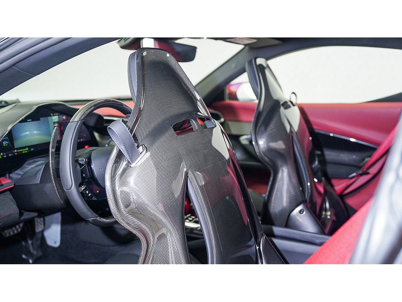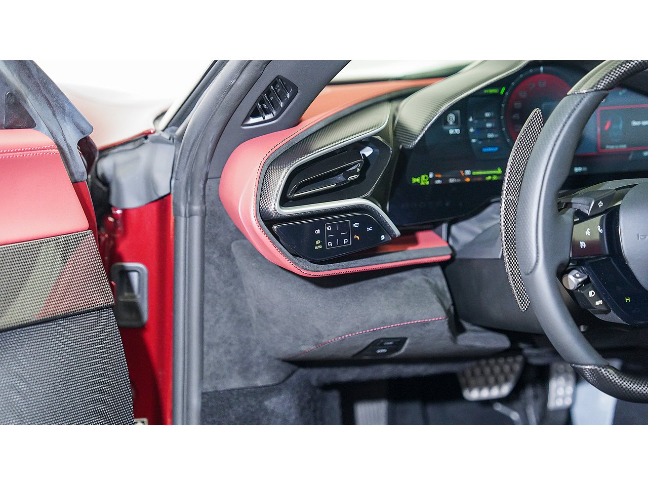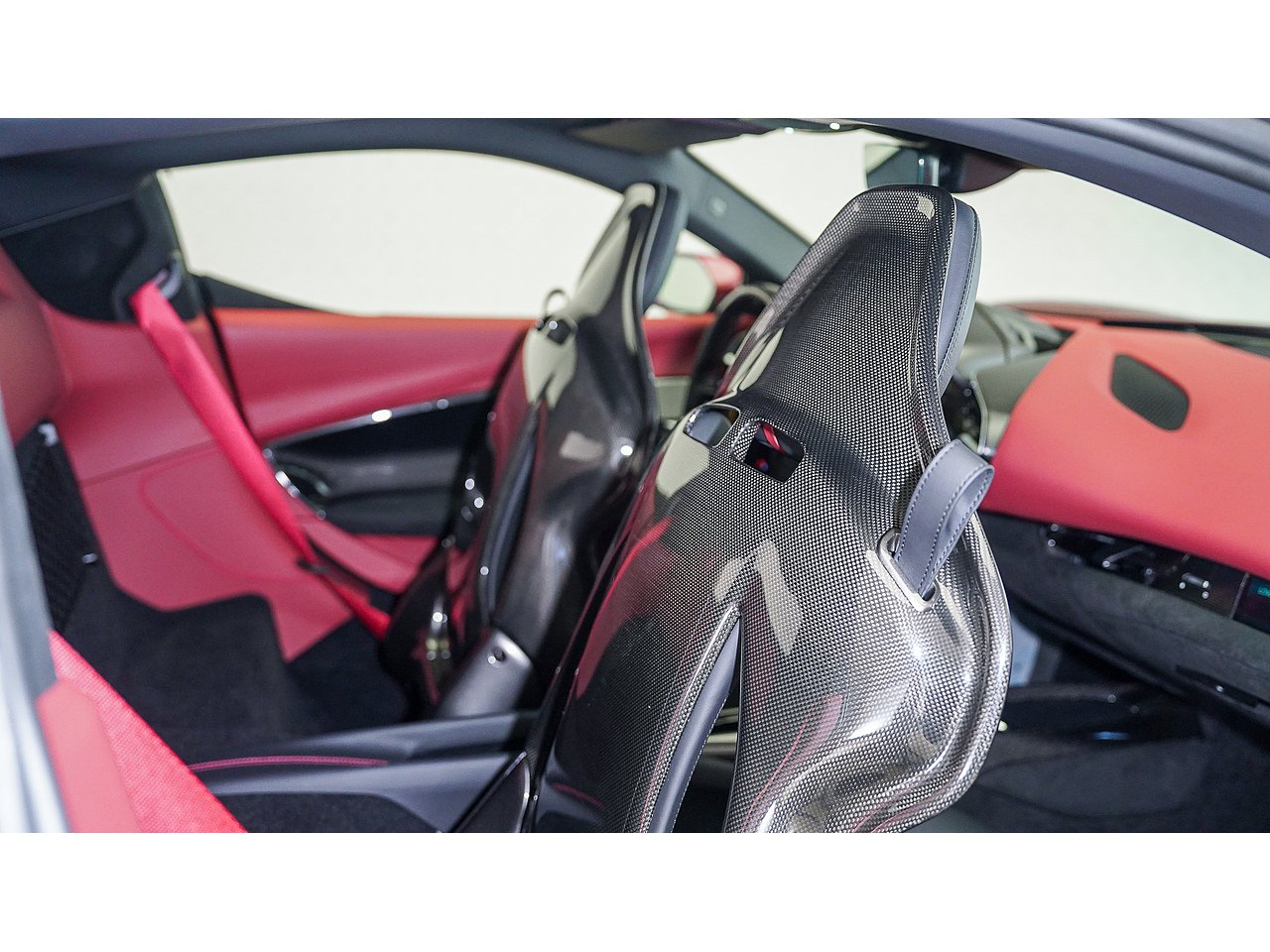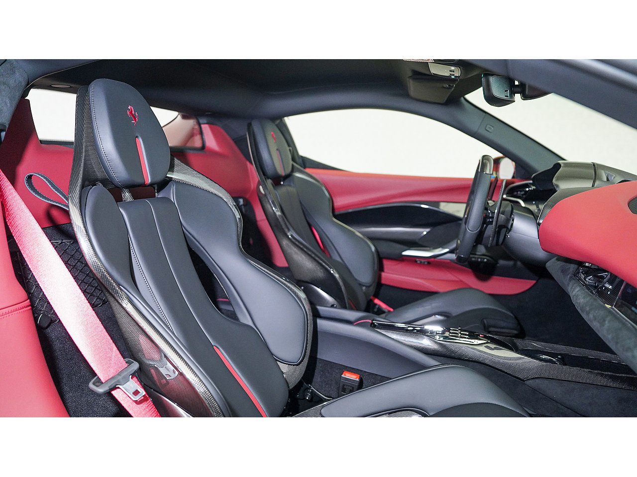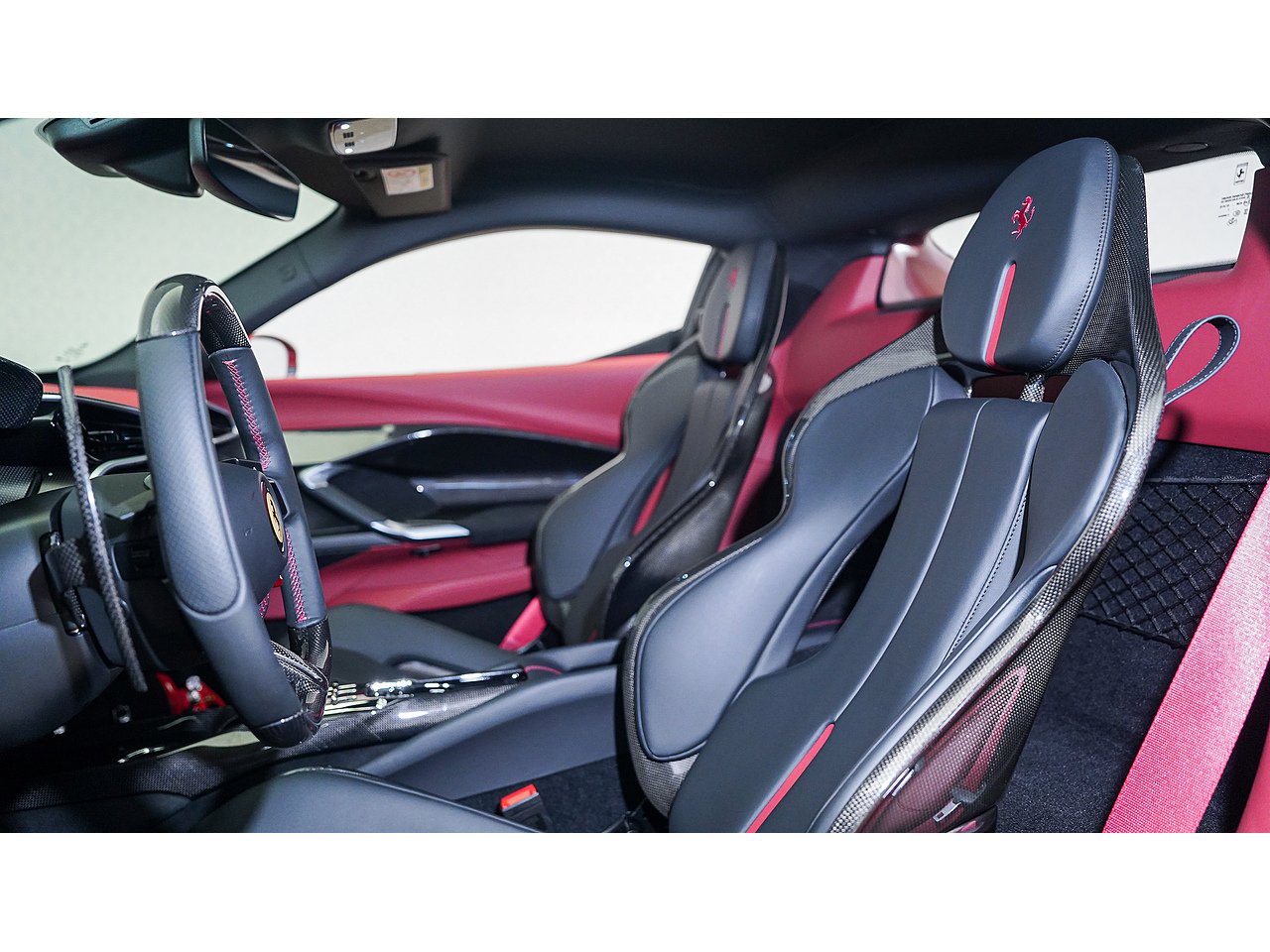 Beautifully configured with extensive carbon fibre options including diffuser, door panels, and instrument cluster trim, complemented by carbon fibre racing seats, matte diamond-polished forged wheels, and the Cavallino stitched in Bordeaux on the headrests. The cabin features Nero and Bordeaux dual-tone leather with coloured inner details and stitching, adding a rich sense of contrast and exclusivity.