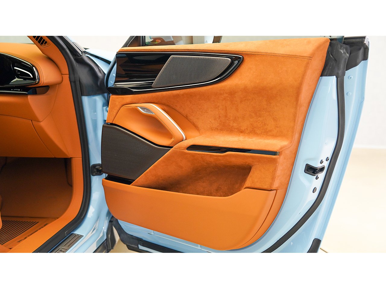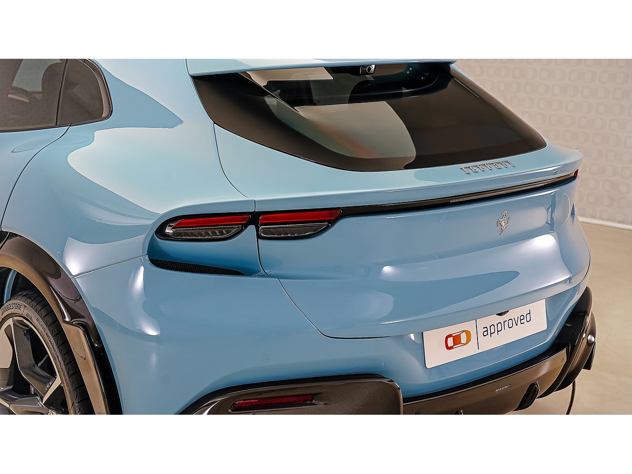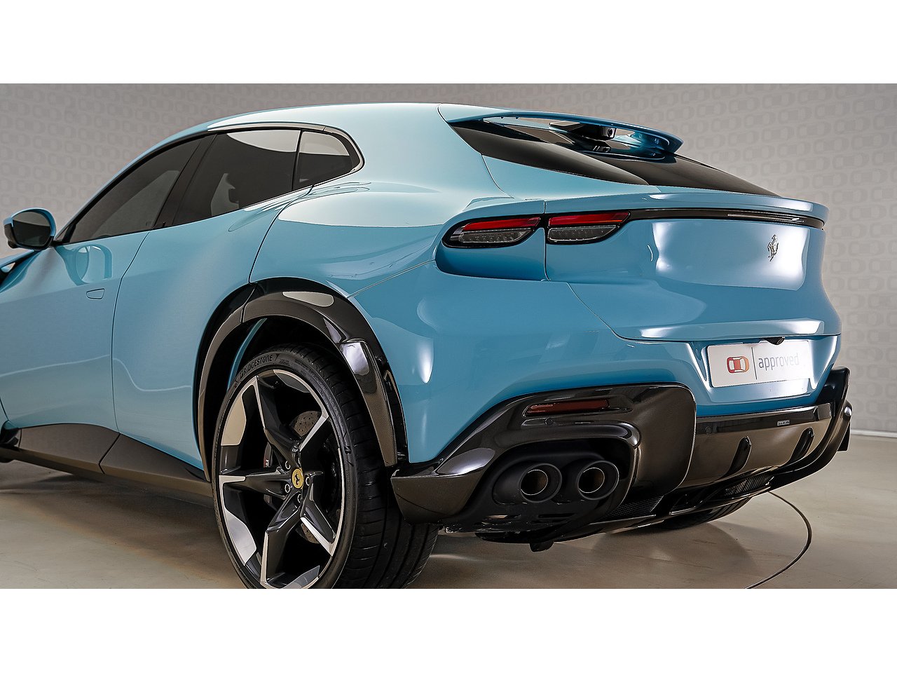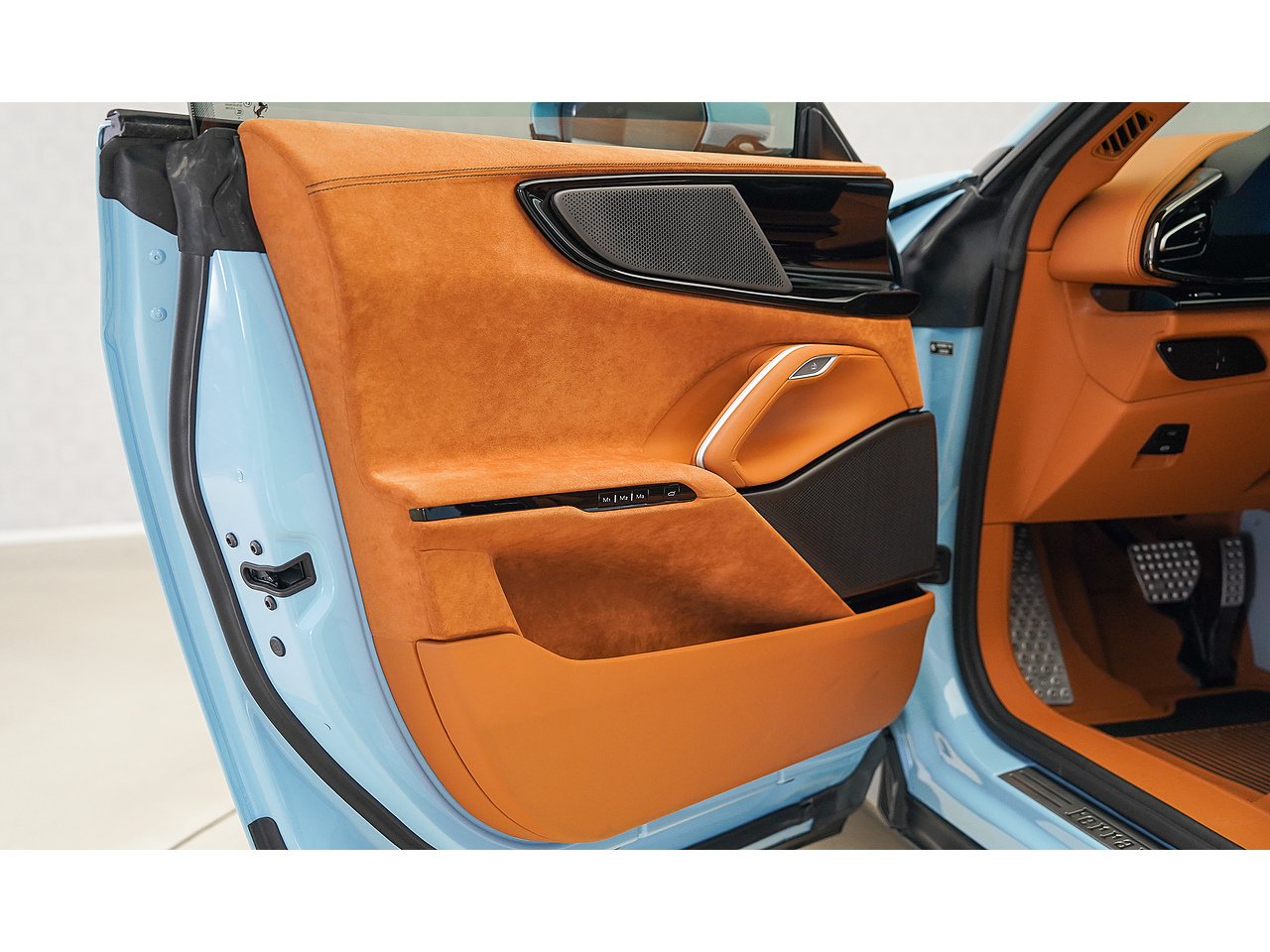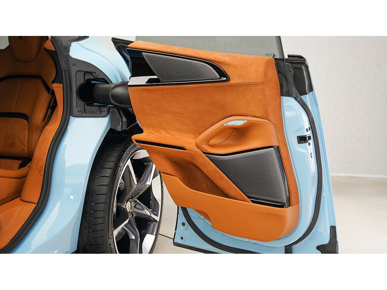 Finished in rare Azzurro La Plata with a Cuoio interior, this GCC-spec example features special two-layer paint, rear glossy forged diamond alloy wheels, carbon fibre wheelhouse flares, and Scuderia Ferrari shields. The cabin is equally special, highlighted by carbon fibre steering wheel with LEDs, panoramic roof and a passenger display.