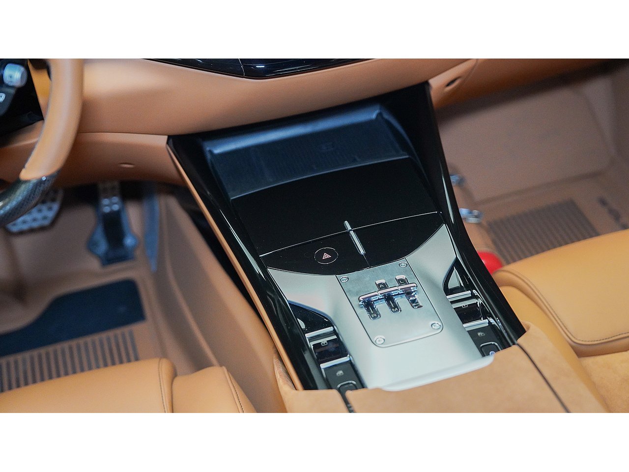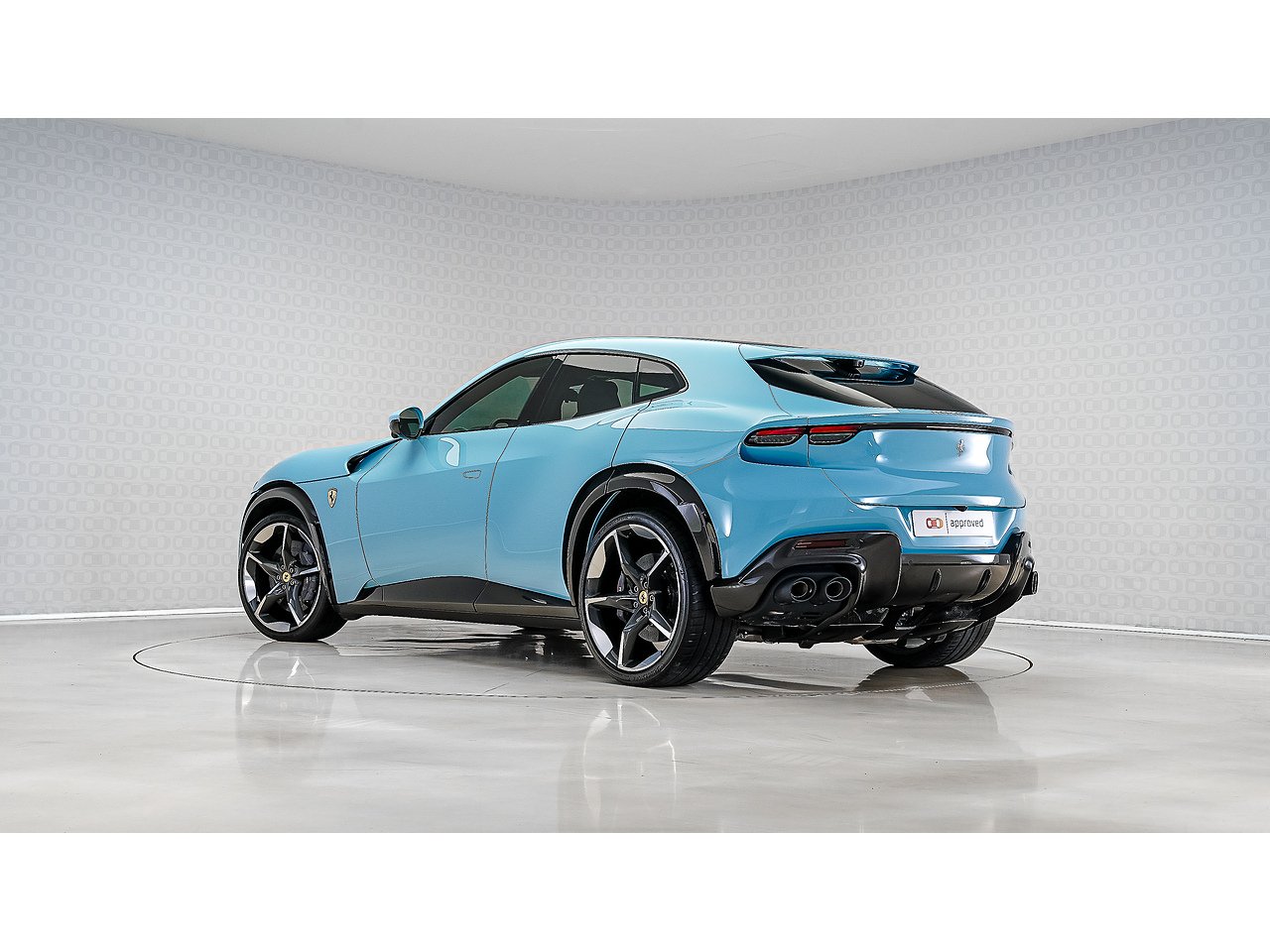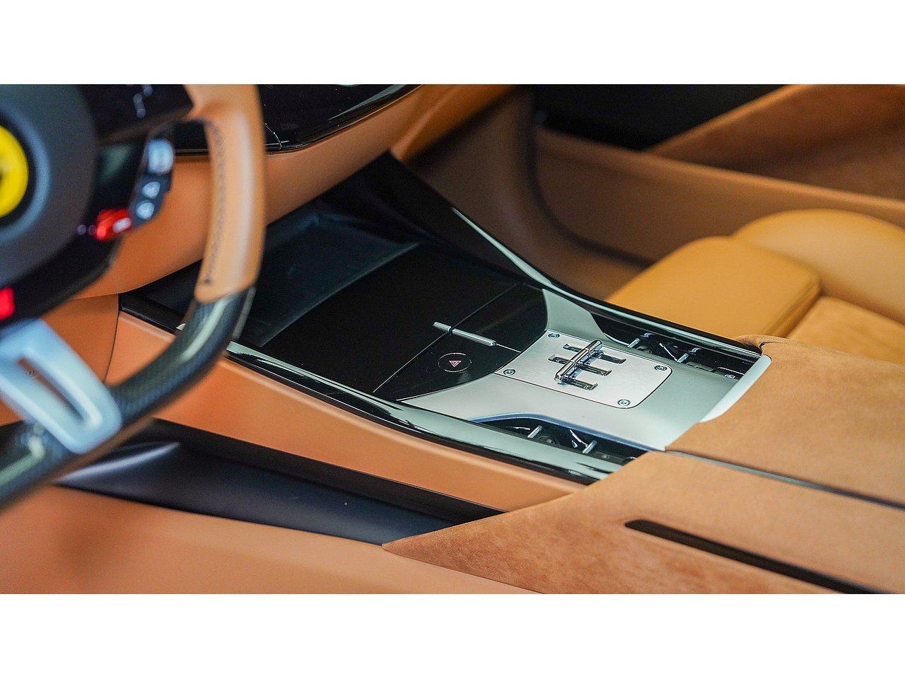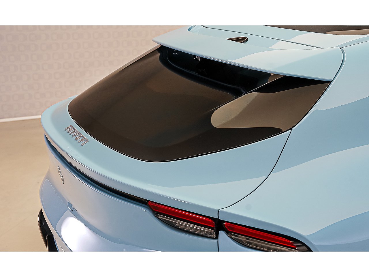 Finished in rare Azzurro La Plata with a Cuoio interior, this GCC-spec example features special two-layer paint, rear glossy forged diamond alloy wheels, carbon fibre wheelhouse flares, and Scuderia Ferrari shields. The cabin is equally special, highlighted by carbon fibre steering wheel with LEDs, panoramic roof and a passenger display.