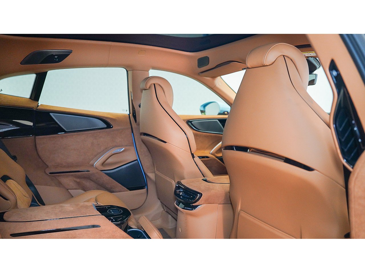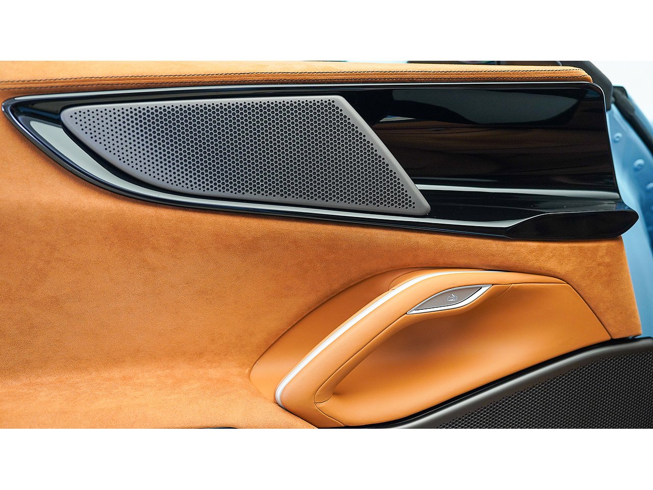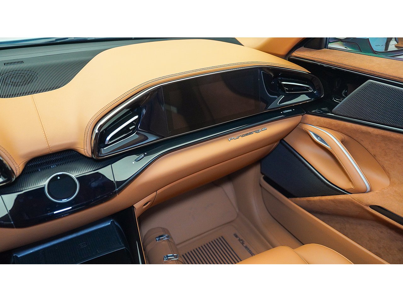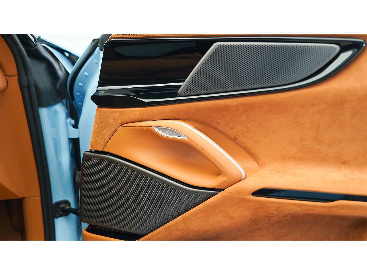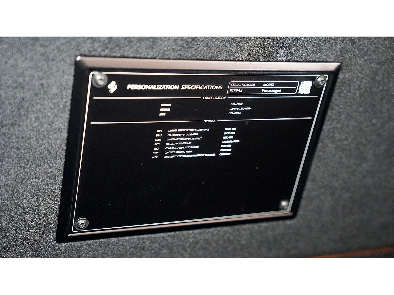 Finished in rare Azzurro La Plata with a Cuoio interior, this GCC-spec example features special two-layer paint, rear glossy forged diamond alloy wheels, carbon fibre wheelhouse flares, and Scuderia Ferrari shields. The cabin is equally special, highlighted by carbon fibre steering wheel with LEDs, panoramic roof and a passenger display.