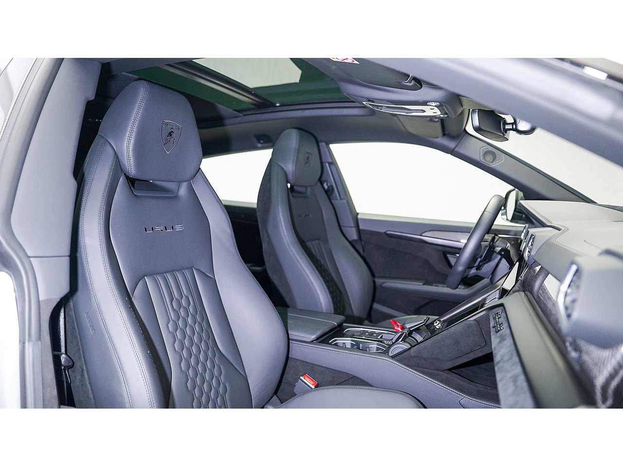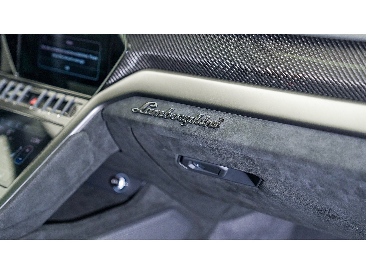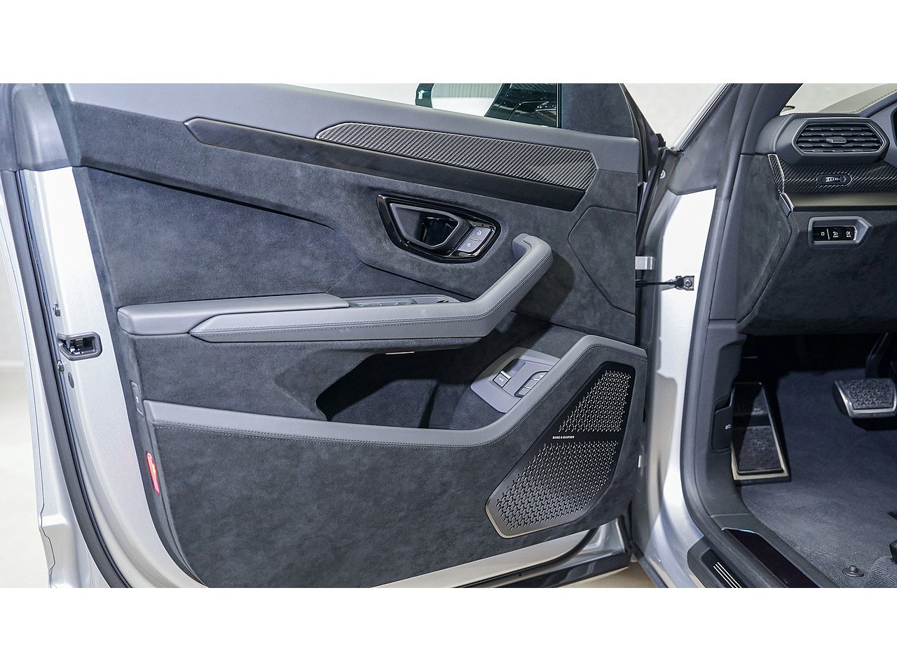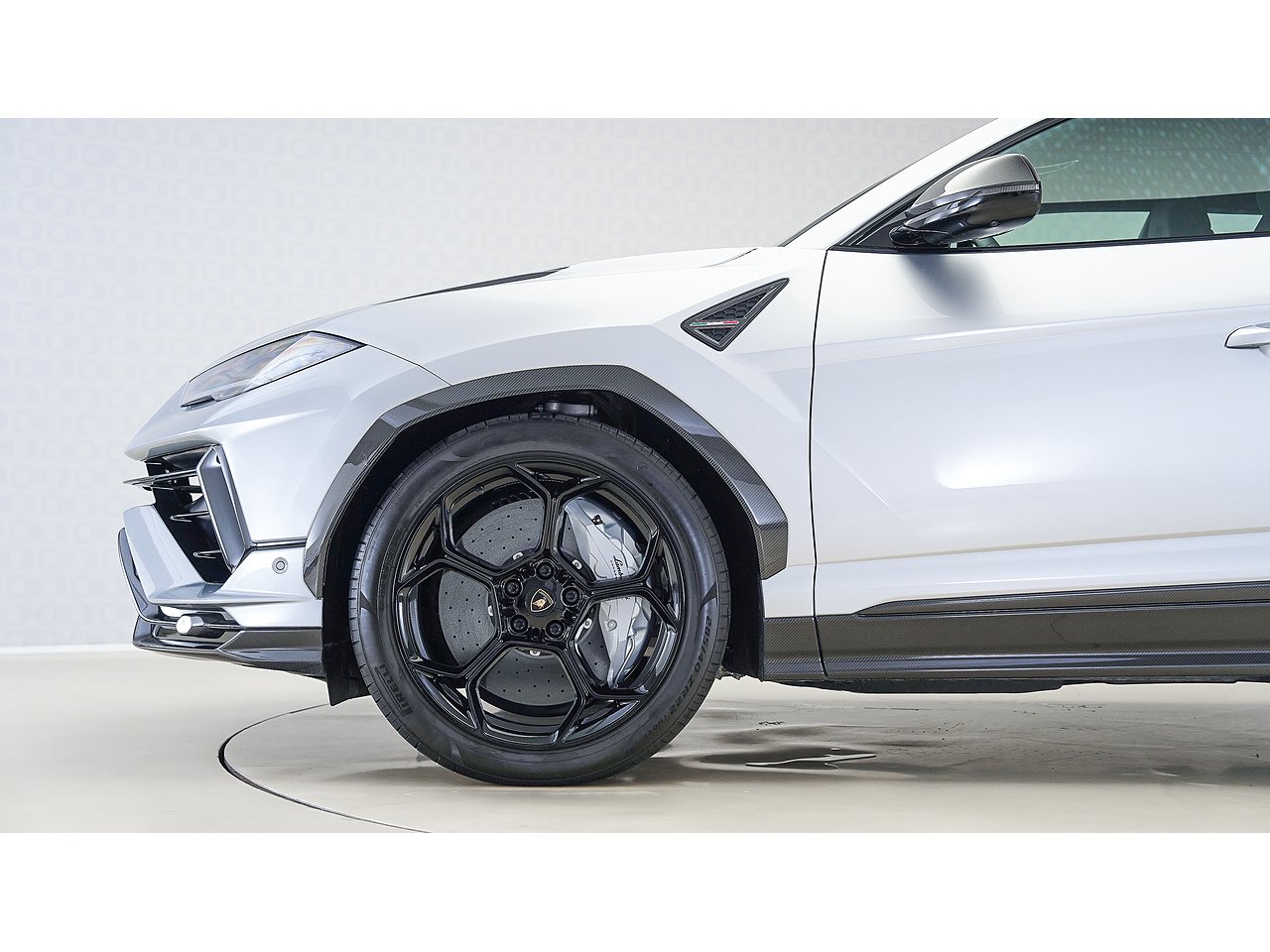 Finished in elegant Grigio Nimbus with a Black leather interior, this example combines stealth and sophistication with unmistakable Lamborghini aggression. The lightweight carbon-fibre bonnet and aerodynamic enhancements accentuate its athletic stance, complemented by 22-inch Narvi forged alloy wheels finished in gloss black.