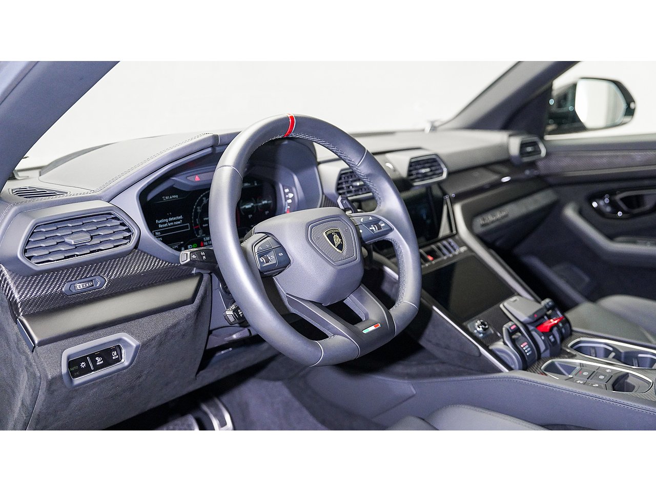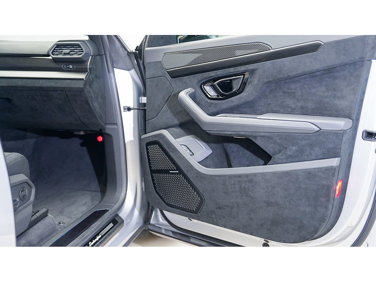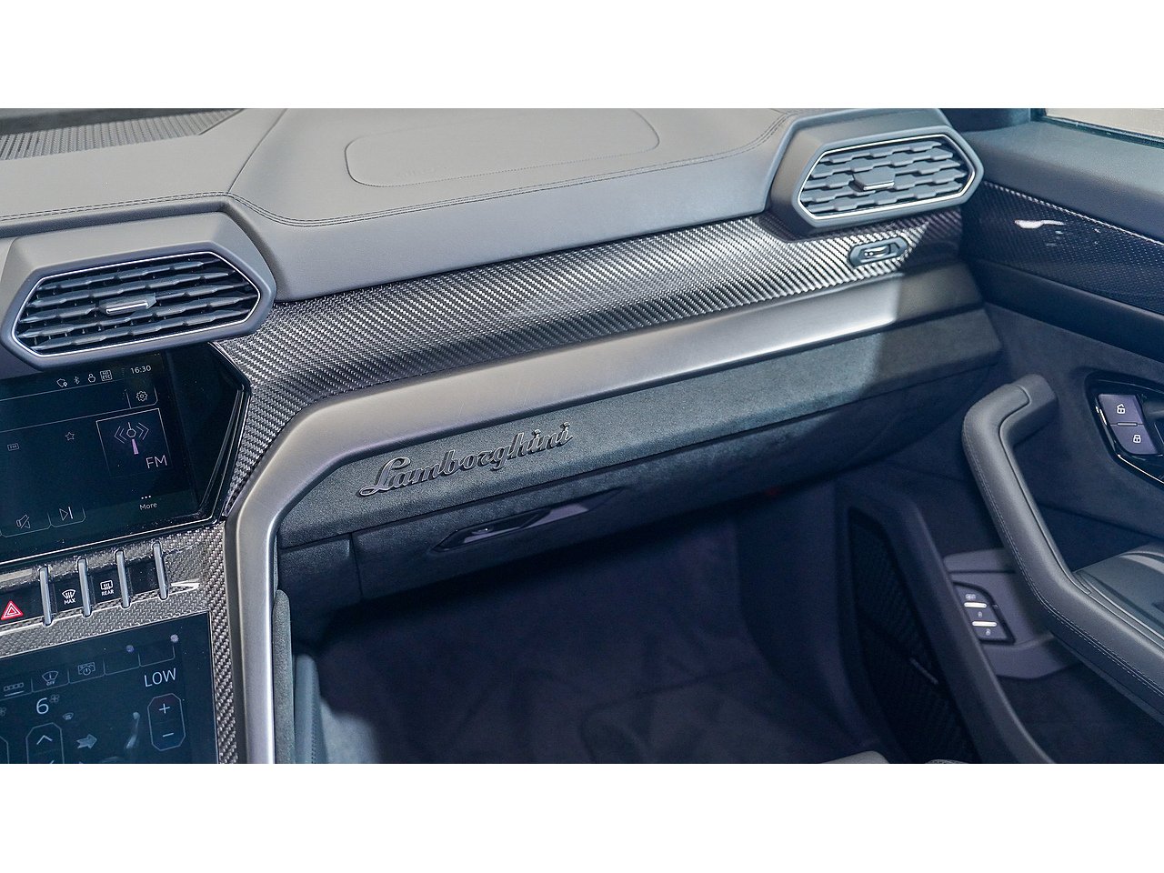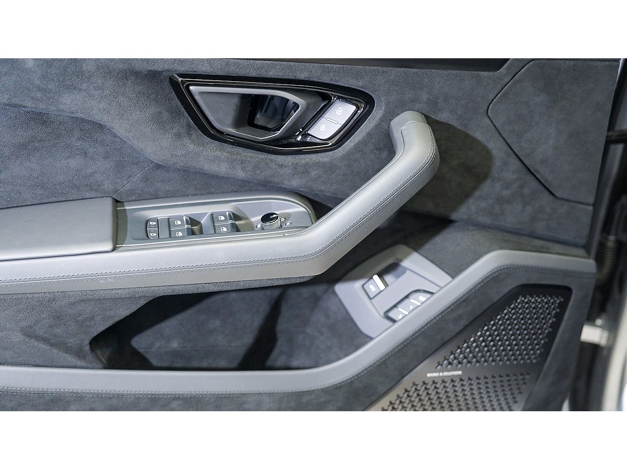Finished in elegant Grigio Nimbus with a Black leather interior, this example combines stealth and sophistication with unmistakable Lamborghini aggression. The lightweight carbon-fibre bonnet and aerodynamic enhancements accentuate its athletic stance, complemented by 22-inch Narvi forged alloy wheels finished in gloss black.