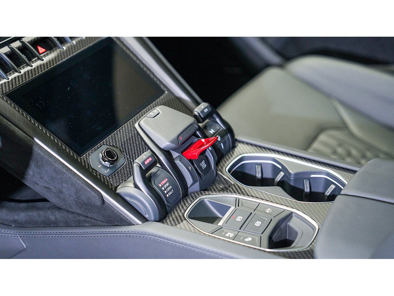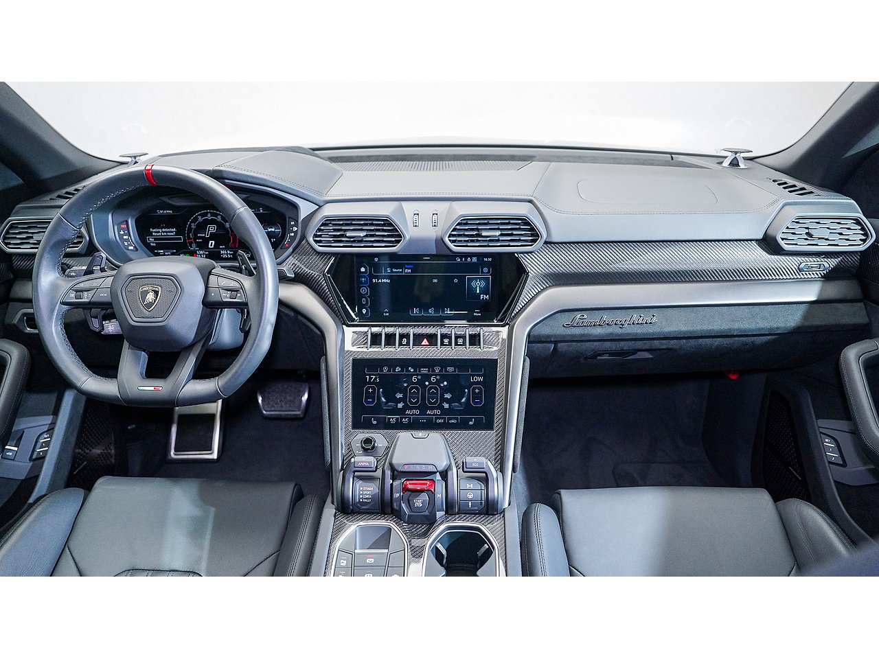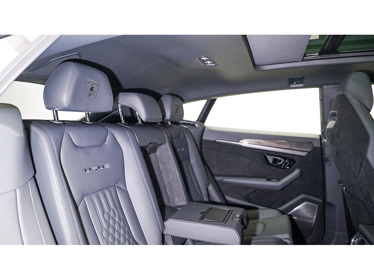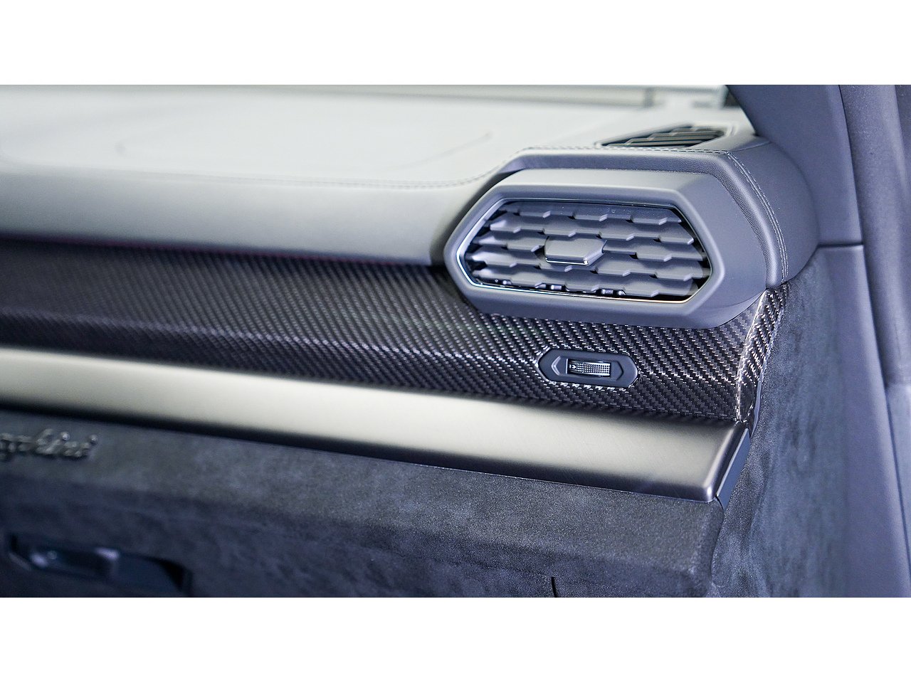 Finished in elegant Grigio Nimbus with a Black leather interior, this example combines stealth and sophistication with unmistakable Lamborghini aggression. The lightweight carbon-fibre bonnet and aerodynamic enhancements accentuate its athletic stance, complemented by 22-inch Narvi forged alloy wheels finished in gloss black.