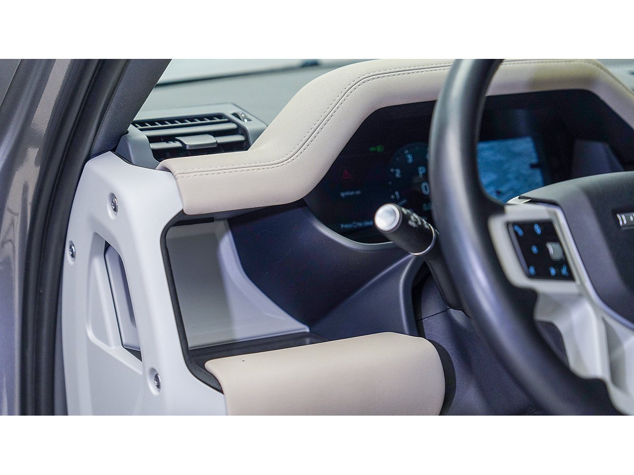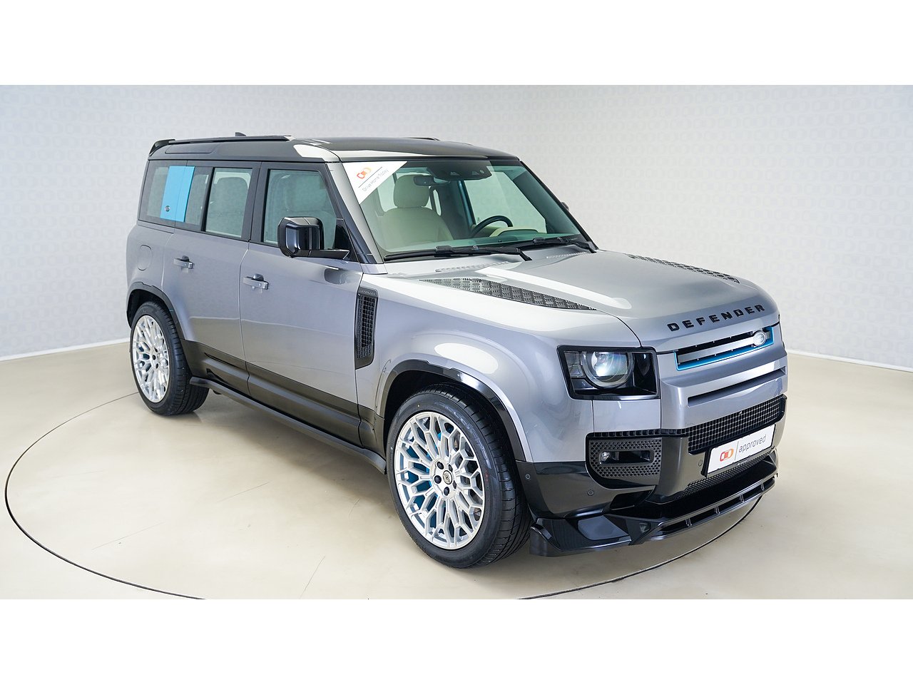 Commanding presence meets modern capability with this 2023 Land Rover Defender 110 P400 X-Dynamic SE, finished in striking Eiger Grey with a refined Almond Grained Leather interior.