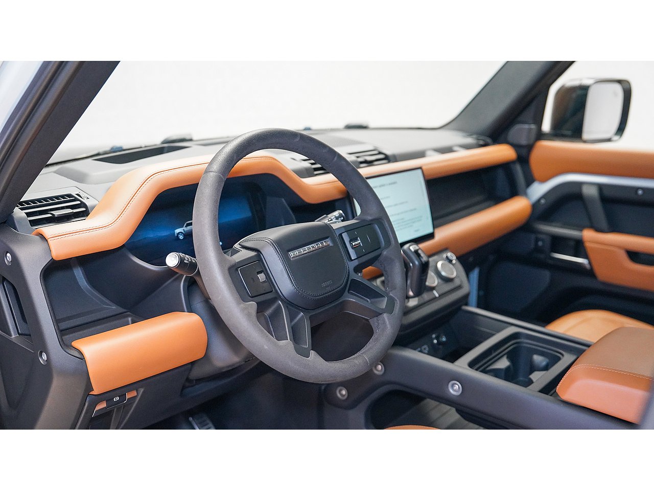 This 2023 Land Rover Defender 110 P525 X delivers the ultimate Defender experience with V8 power and flagship X specification. Powered by a 5.0-litre supercharged V8 producing approximately 525 hp, it offers explosive performance paired with exceptional on- and off-road capability.