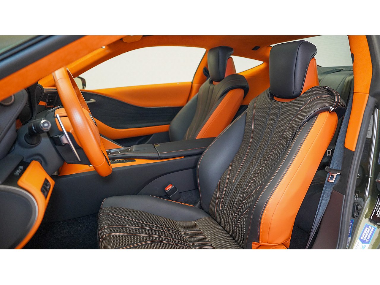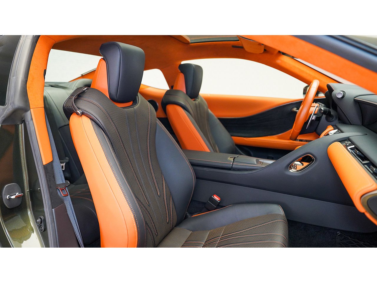 This 2023 Lexus LC500 Coupe, GCC specification with 33,241 km, is a true grand tourer in every sense. Finished in distinctive Terrane Khaki Mica over a striking Black and Orange interior, the colour combination is genuinely exquisite and sets this car apart instantly. Powered by a glorious naturally aspirated 5.0 litre V8, it delivers a spine-tingling soundtrack wrapped in effortless elegance. A true Super GT touring car that blends craftsmanship, comfort and theatre in one beautifully sculpted package.
