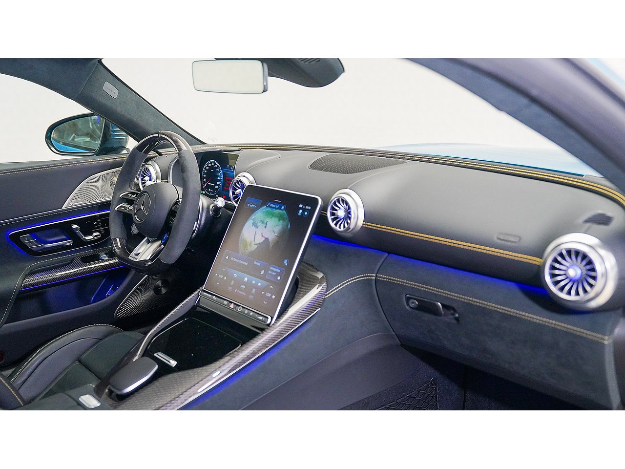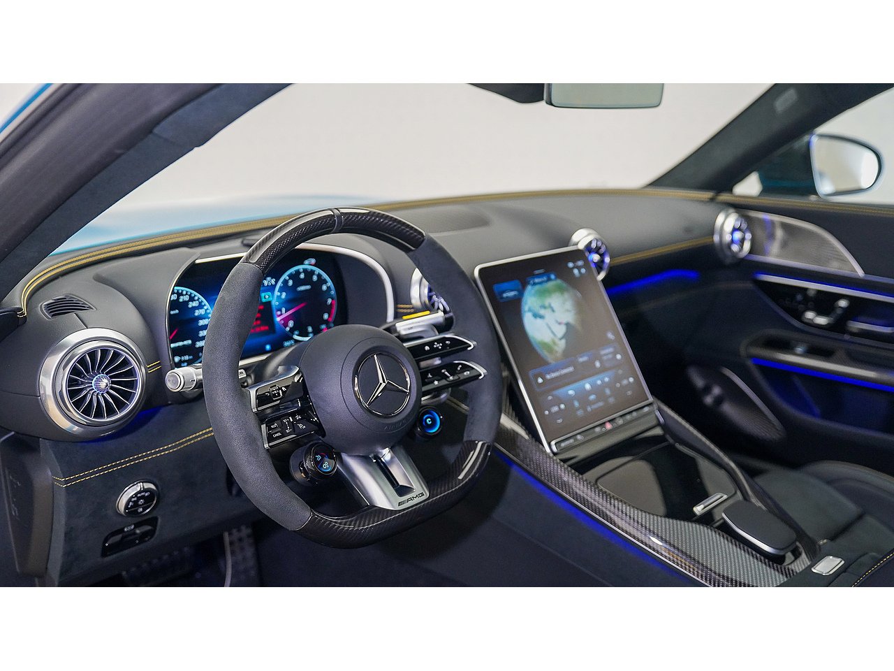 The 2024 Mercedes-AMG GT 63 Coupe in Hyper Blue Magno is a striking statement of power, precision, and presence. With its long-bonnet silhouette, aggressive wide stance, and full carbon exterior detailing, this coupe delivers unmistakable supercar attitude with everyday usability.