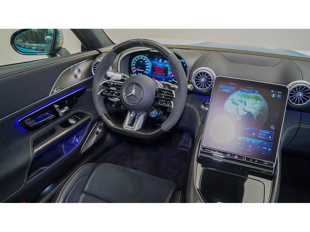 Inside, the cabin is finished in Black Nappa leather and complemented by extensive carbon interior trims, creating a cockpit that blends luxury with motorsport DNA.