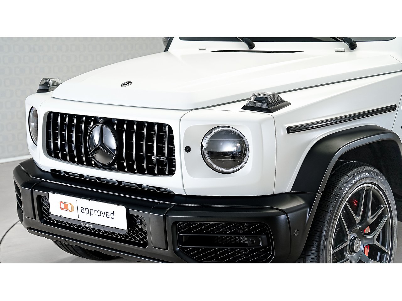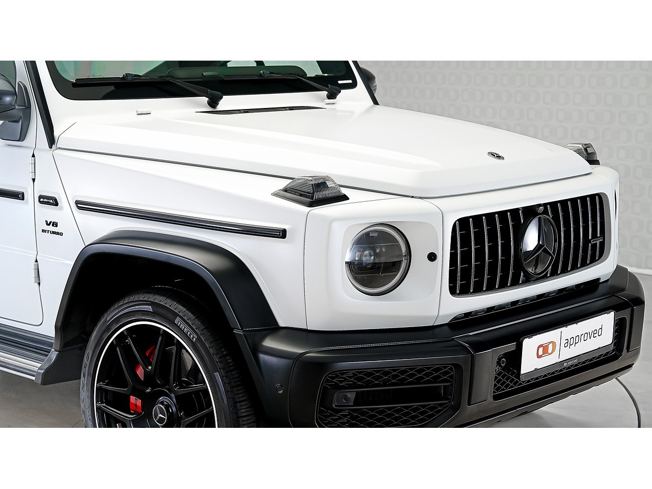 Commanding presence meets modern luxury in this 2023 Mercedes-Benz G63 AMG, finished in rare Opalite White Magno – a stunning matte finish that accentuates the G-Class’s unmistakable silhouette.