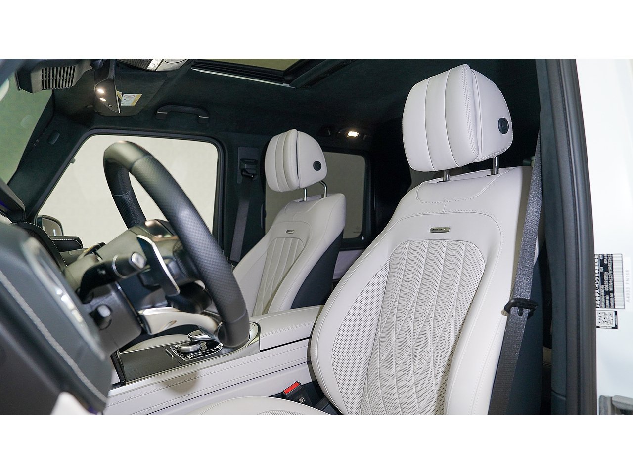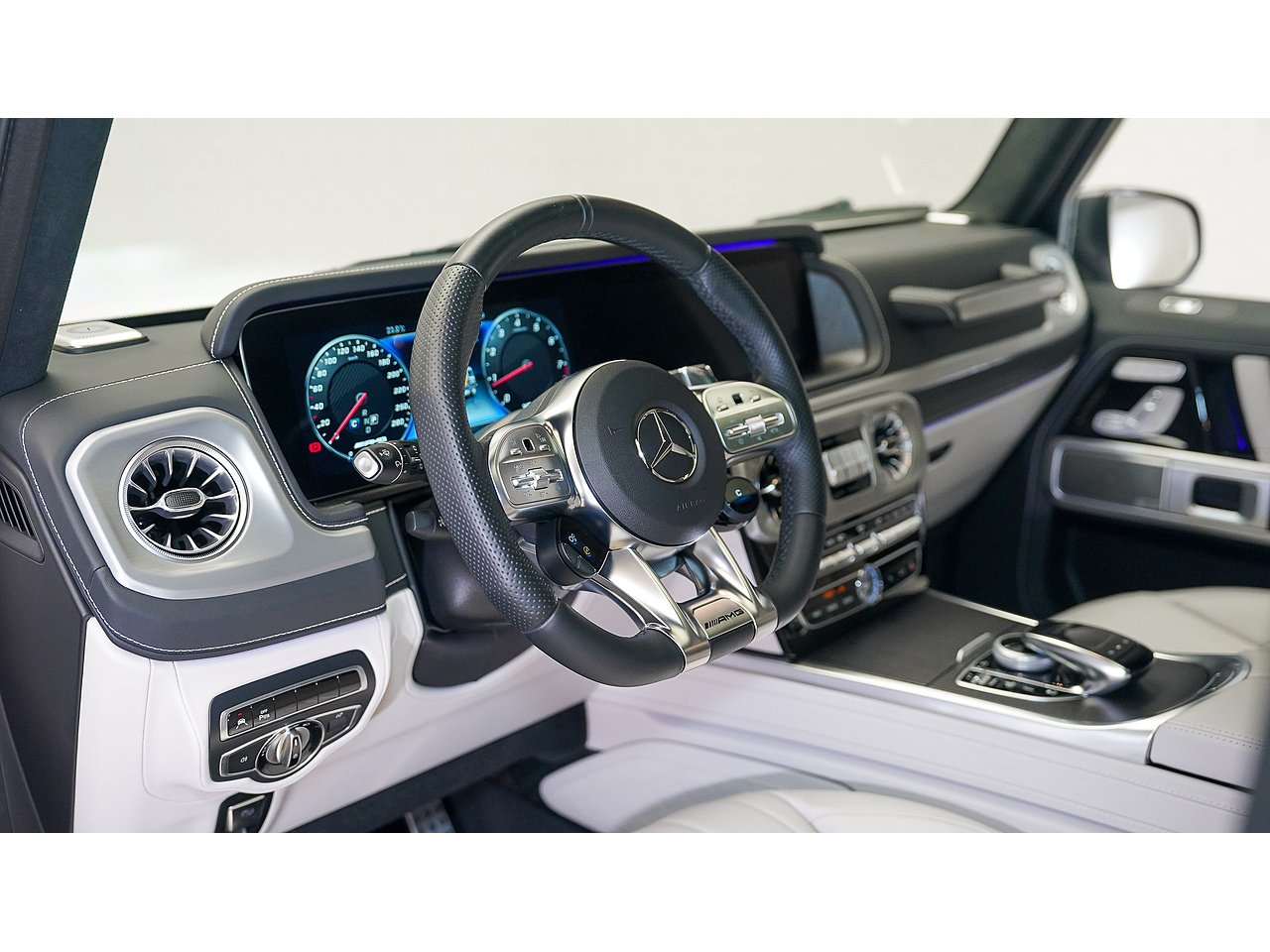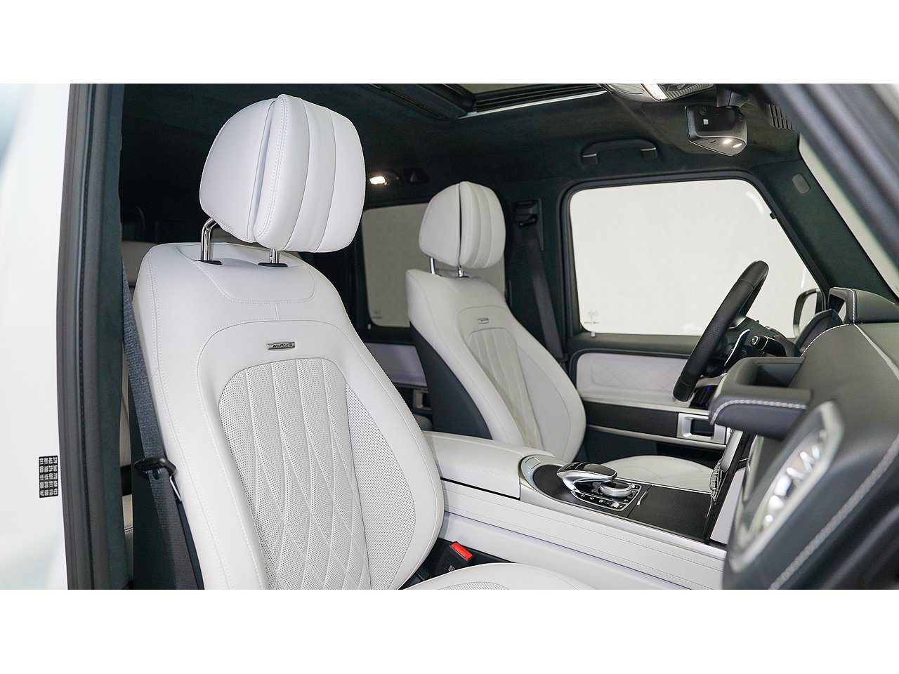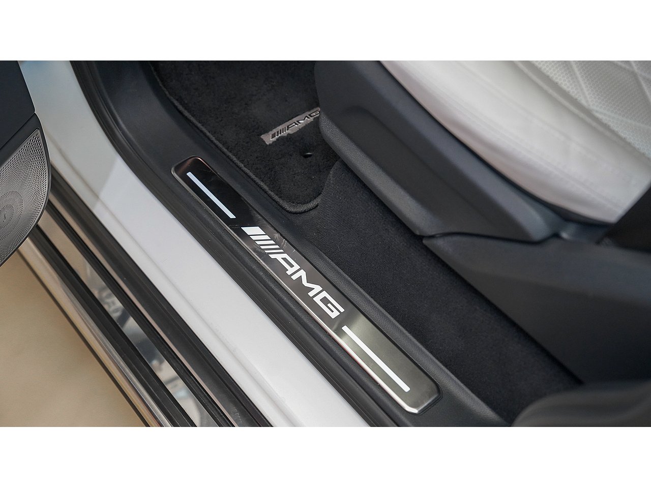 Inside, the cabin exudes sophistication with Nappa leather upholstery in platinum white and black, creating a perfect balance of contrast and elegance. The handcrafted AMG interior, combined with its signature design elements, delivers both exclusivity and performance-driven comfort.