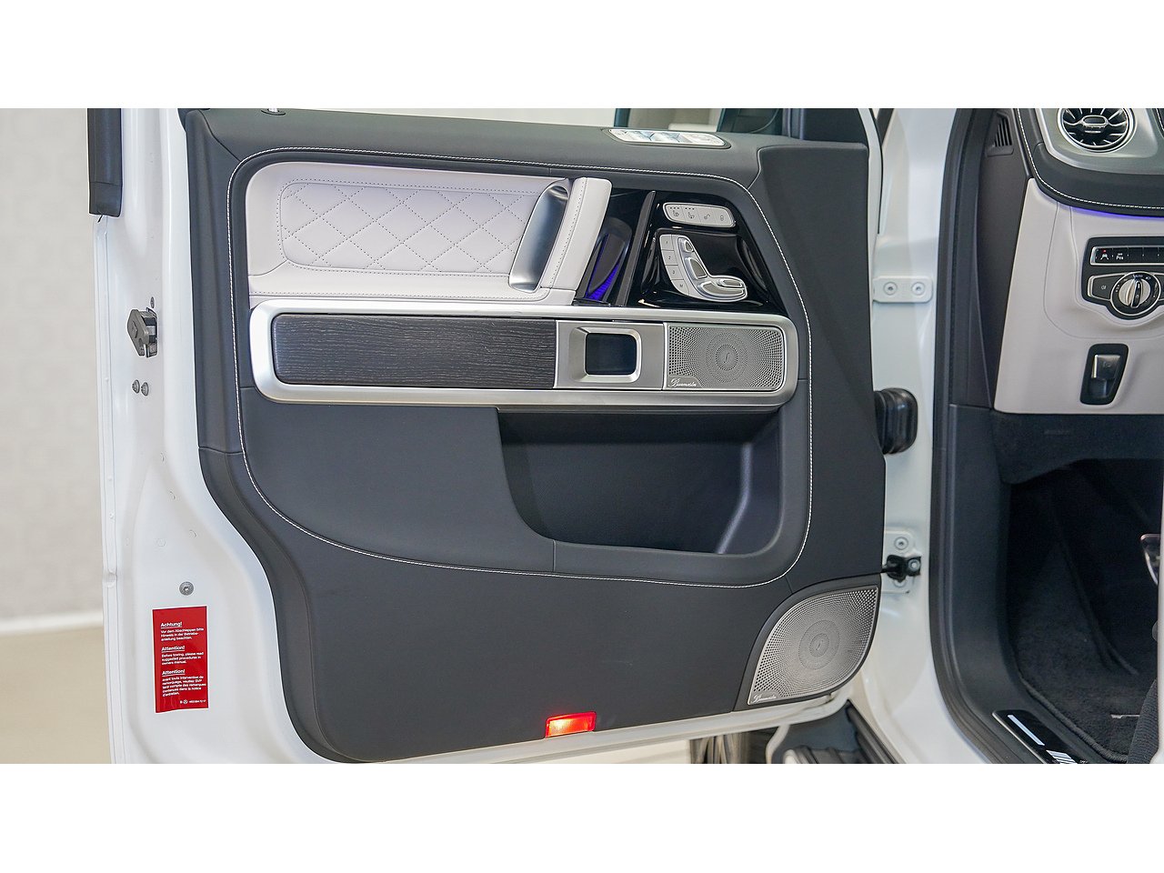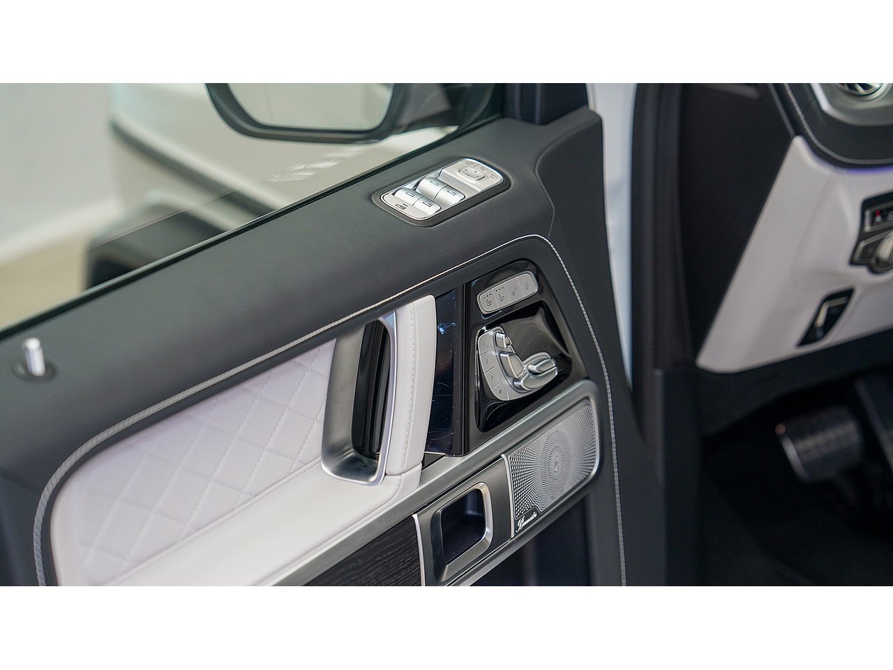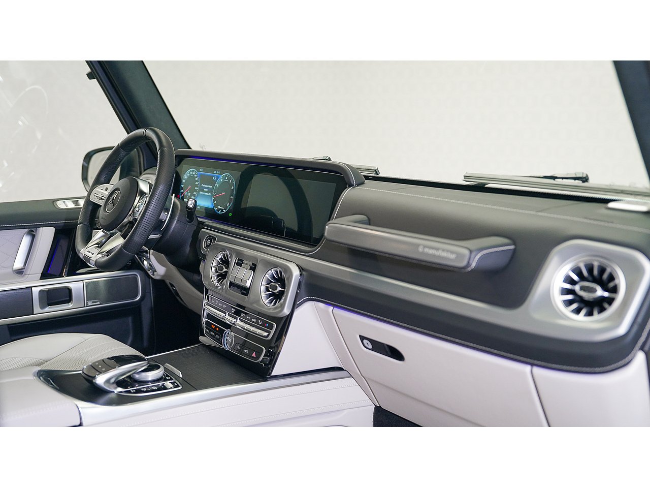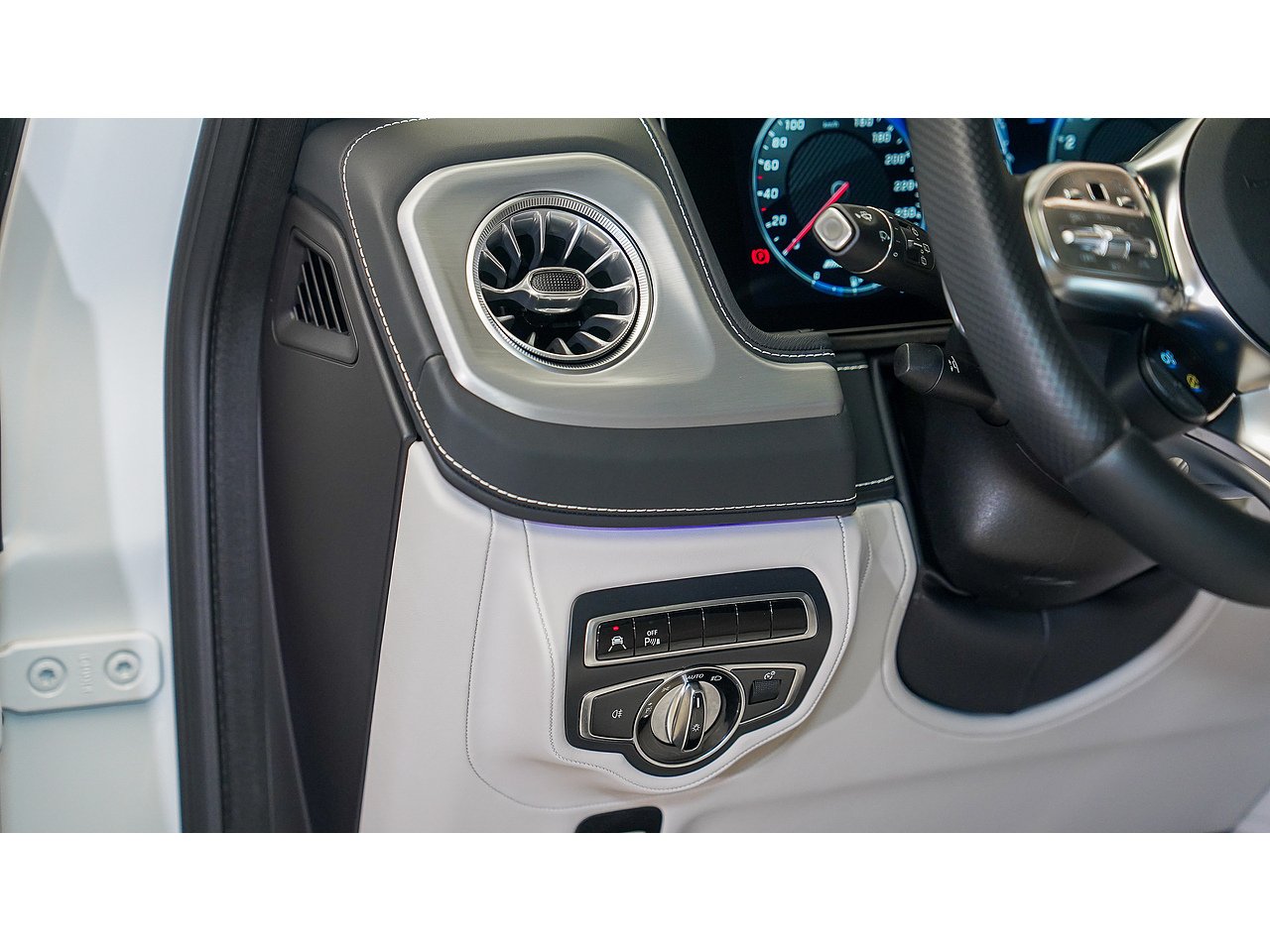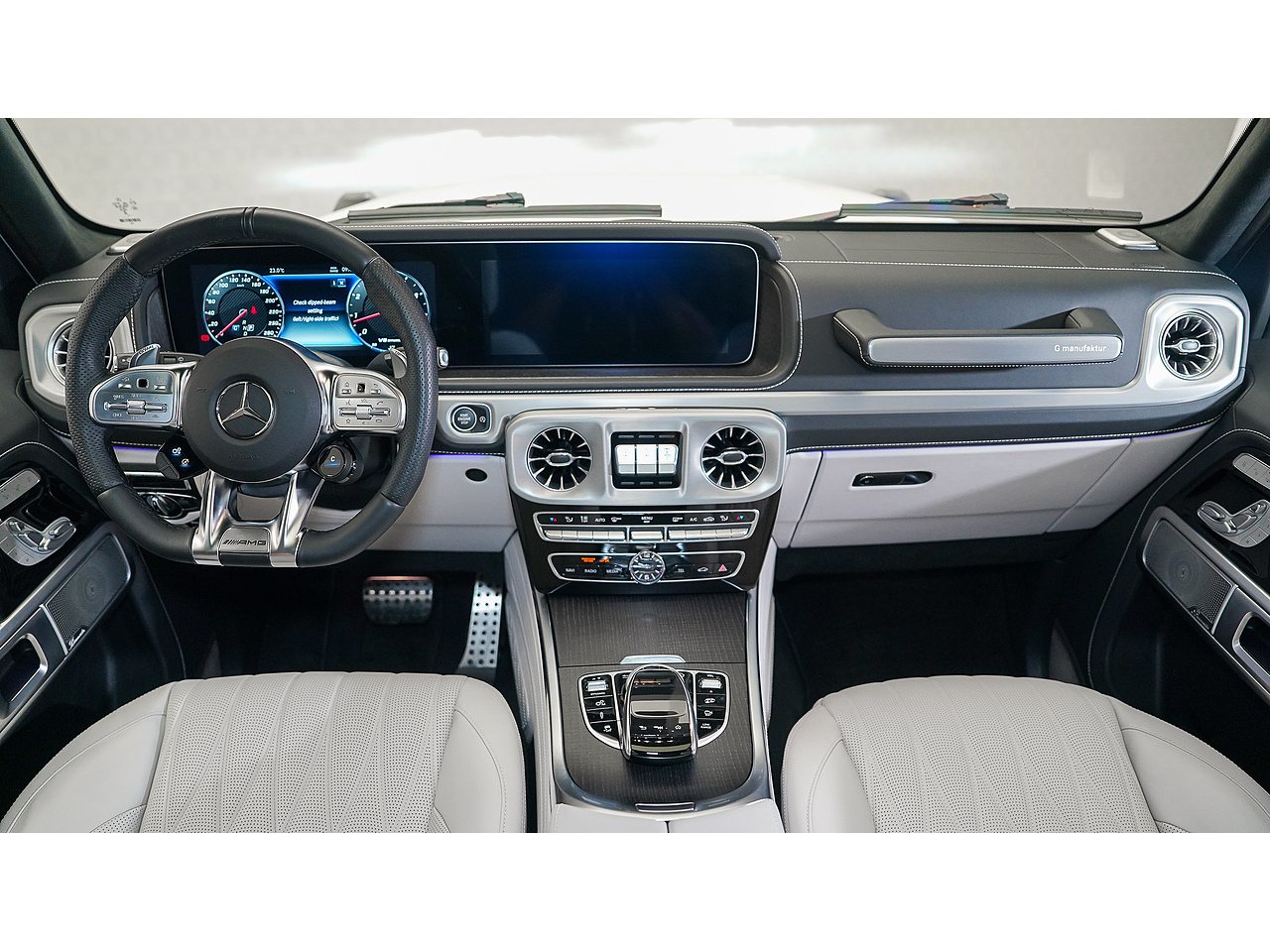 Inside, the cabin exudes sophistication with Nappa leather upholstery in platinum white and black, creating a perfect balance of contrast and elegance. The handcrafted AMG interior, combined with its signature design elements, delivers both exclusivity and performance-driven comfort.