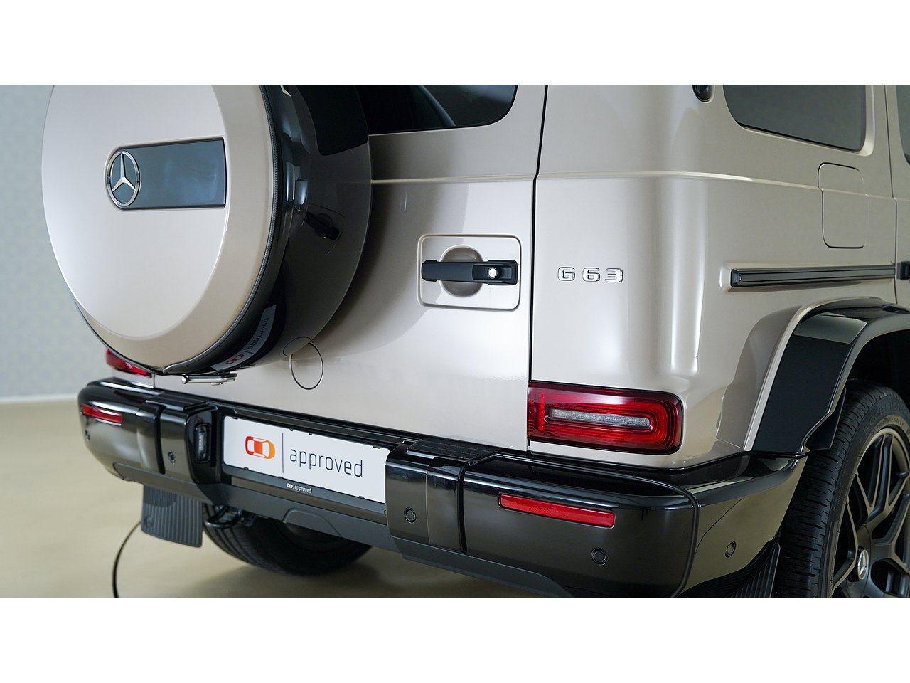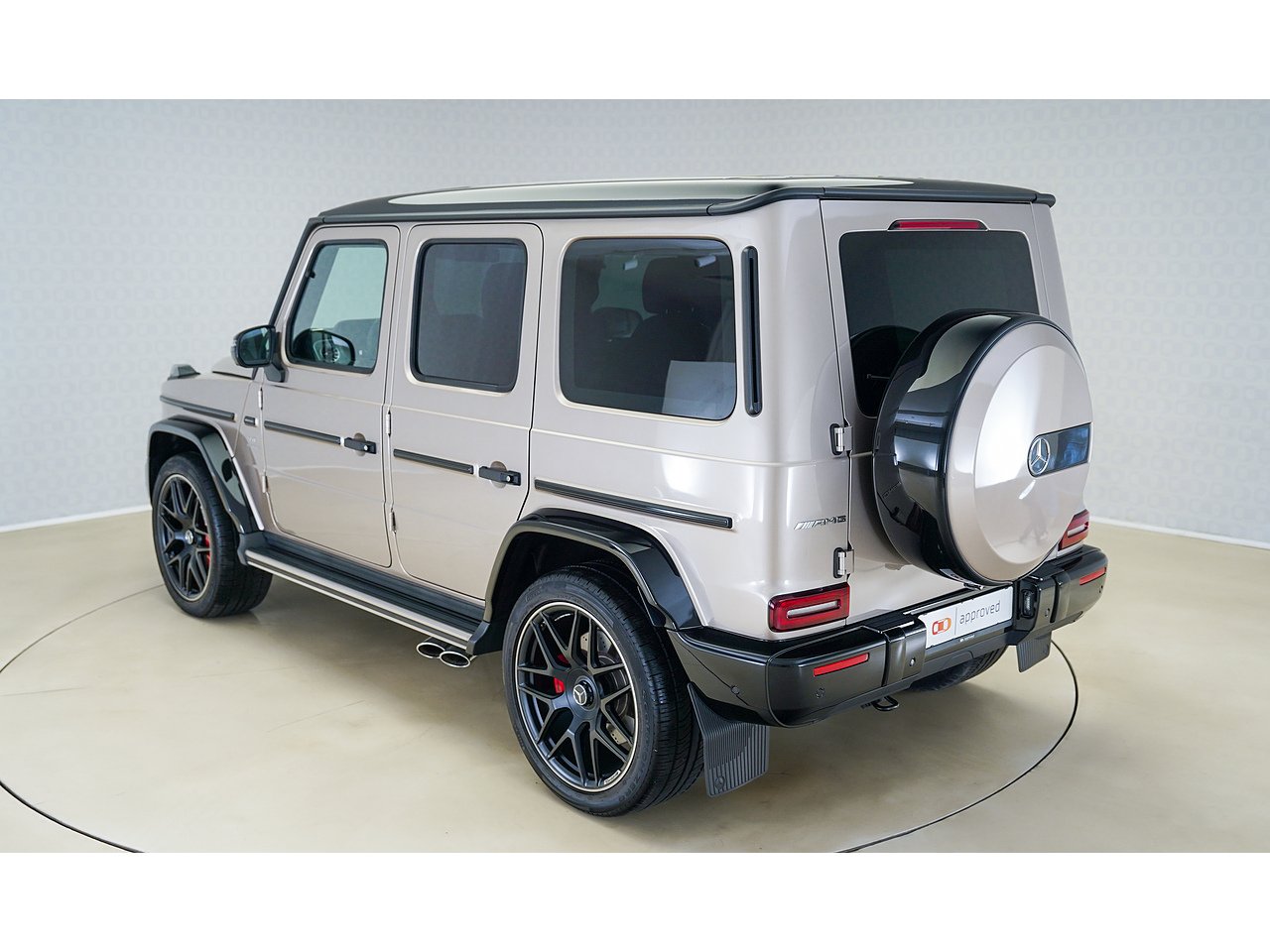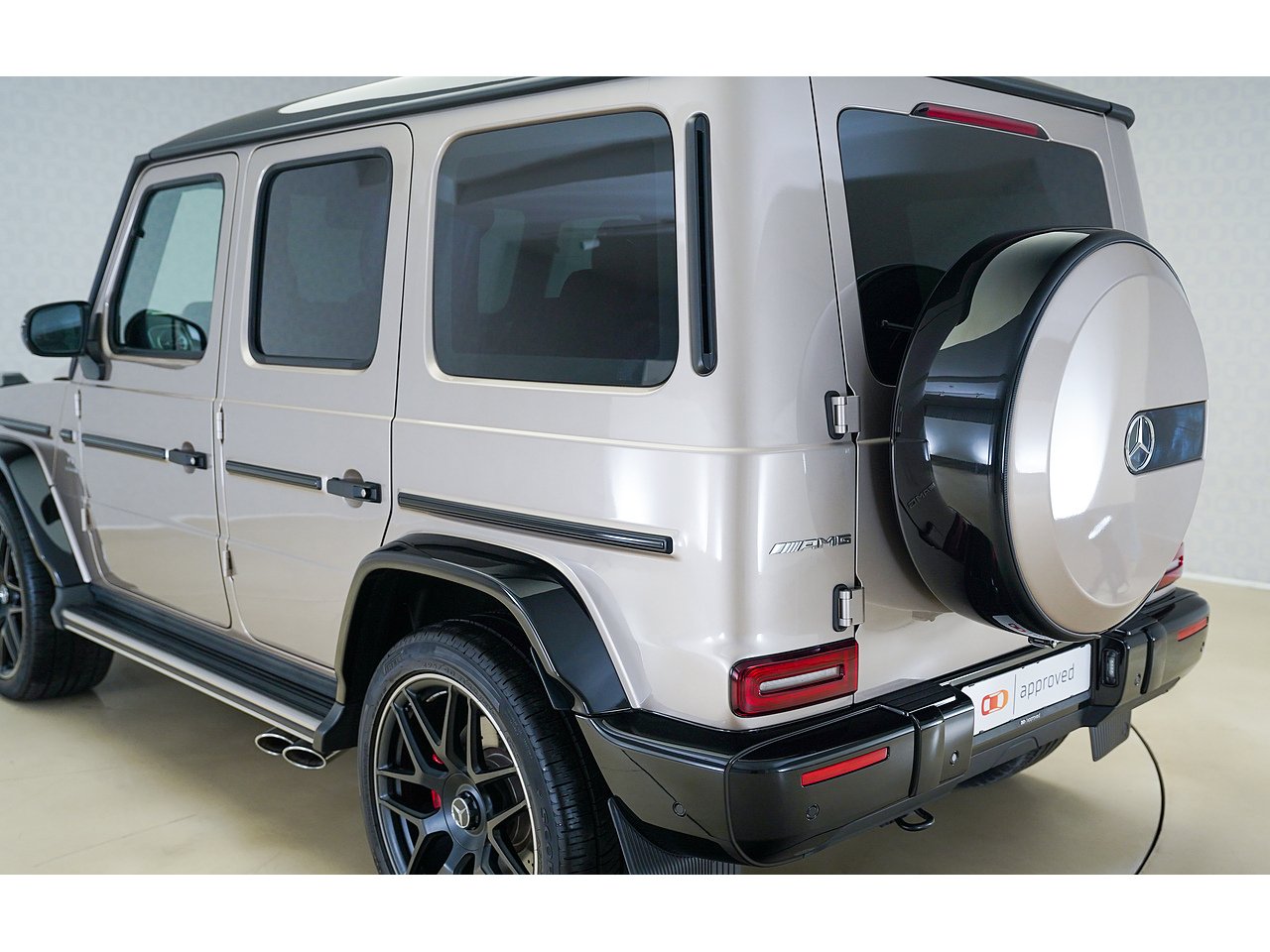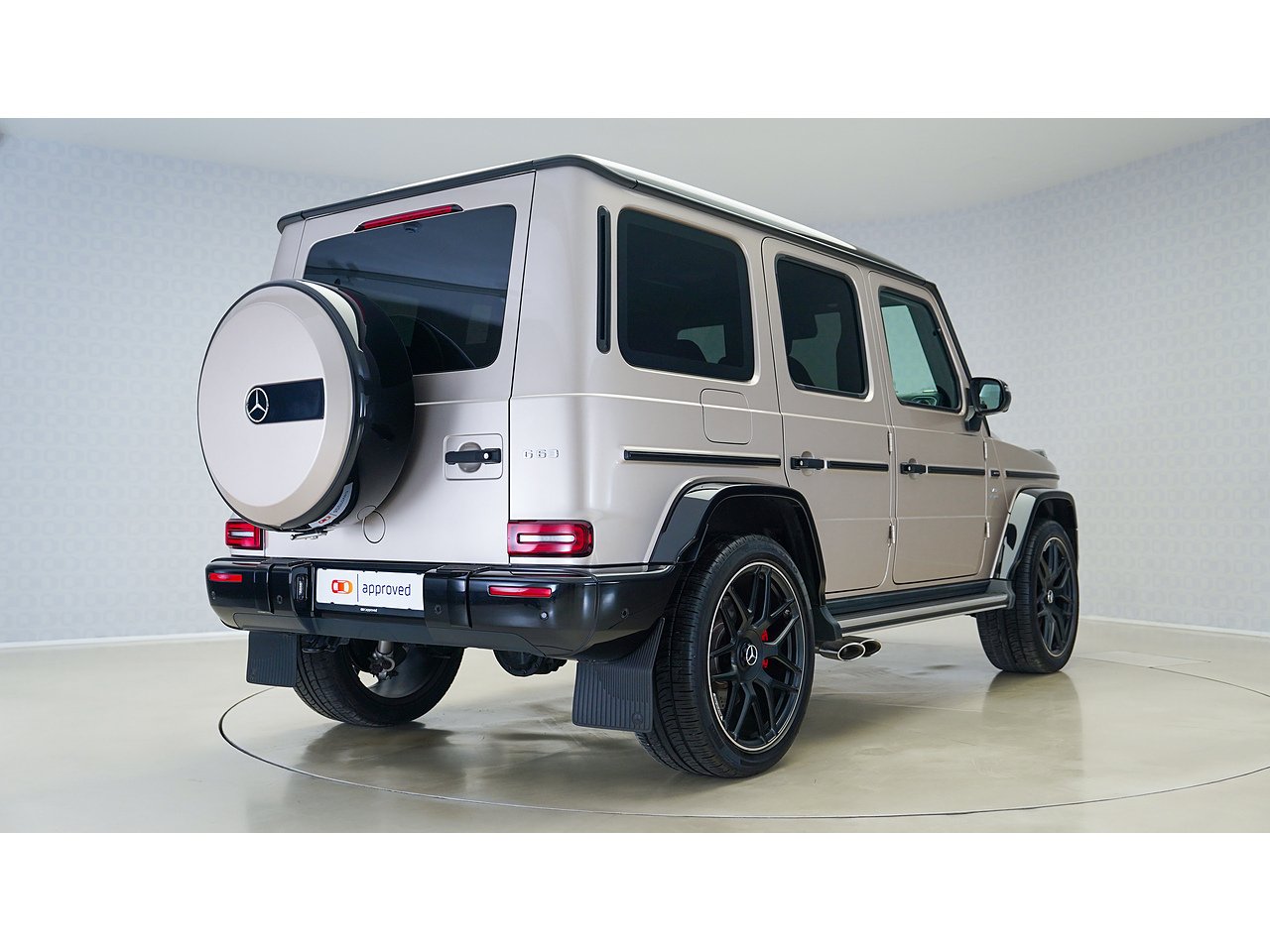 Unmistakable presence meets handcrafted luxury in this 2022 Mercedes-AMG G63, finished in the rare and elegant G Manufaktur Travertin Beige Metallic over a refined Black Nappa Leather interior.