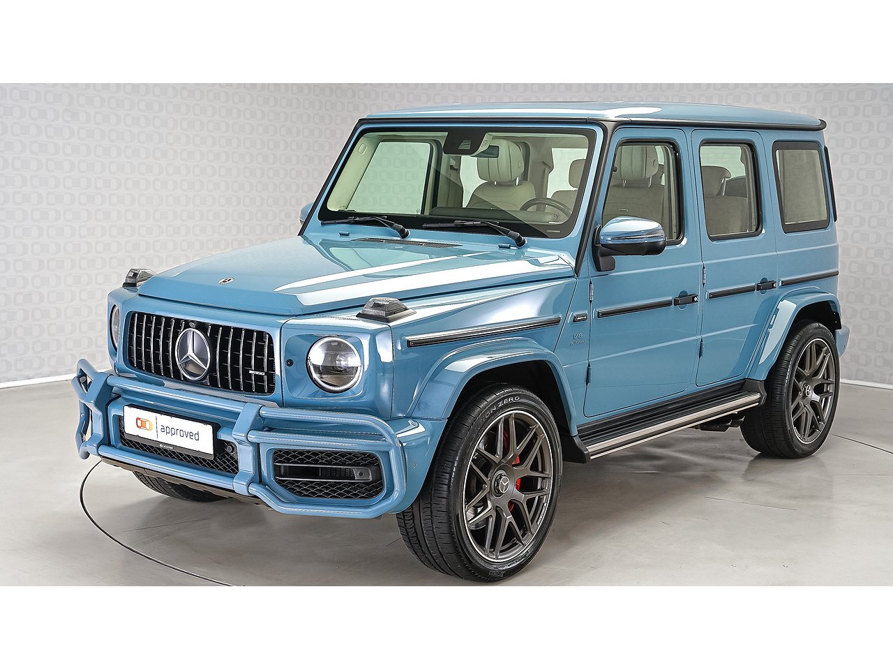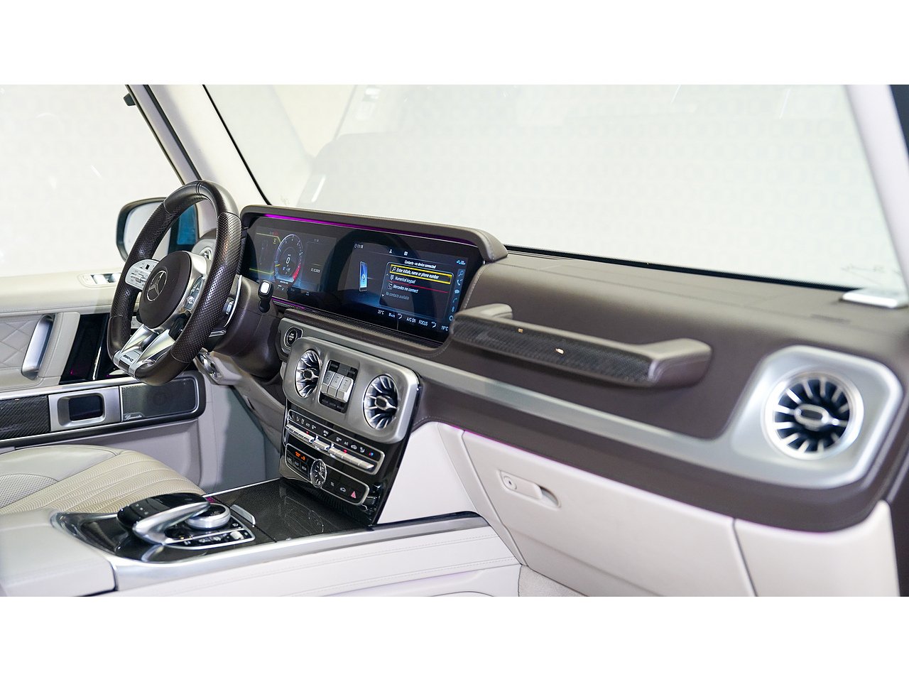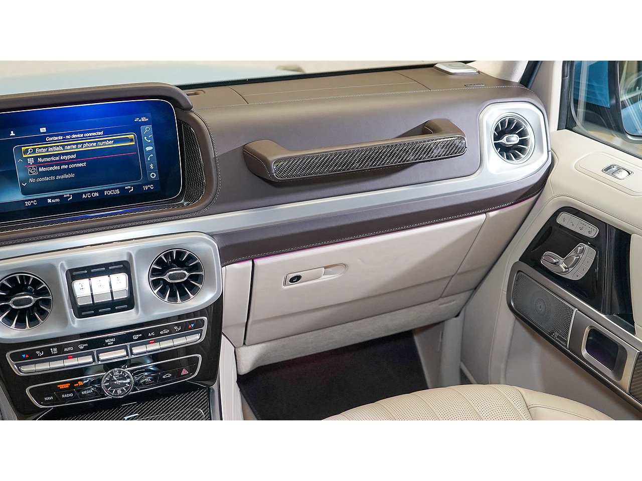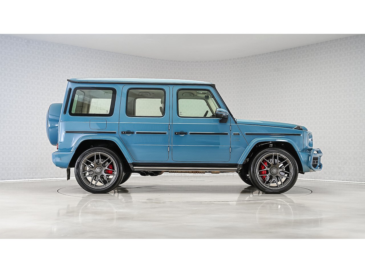 2021 Mercedes-Benz G 63 AMG MANUFAKTUR finished in rare Vintage Blue over Macchiato Beige, GCC specification. Equipped with AMG Night Package and AMG Carbon Fibre interior trim, this example blends commanding V8 performance with a highly distinctive and elegant specification. A standout colour combination seldom seen on the market, offering individuality without compromising presence.