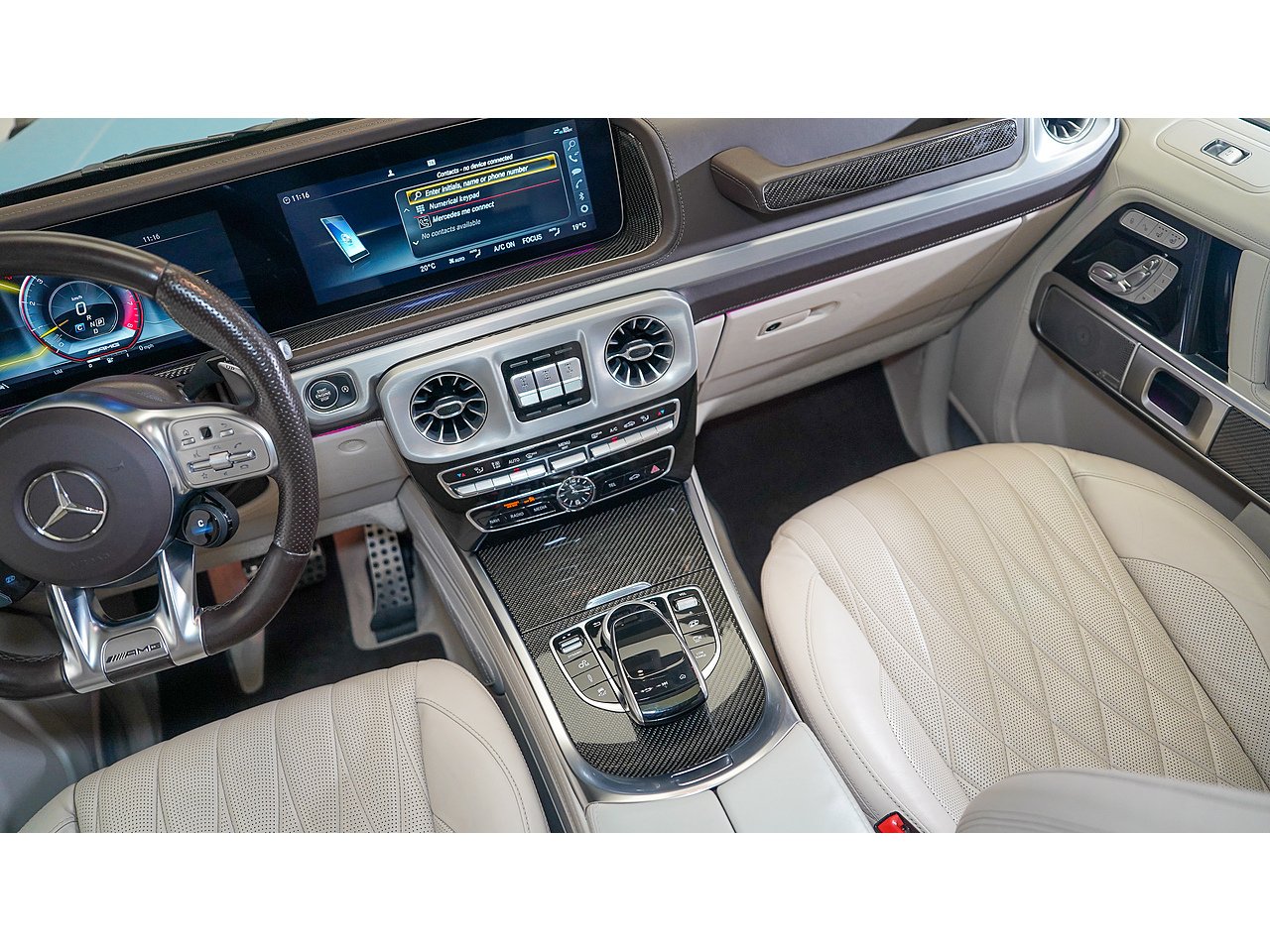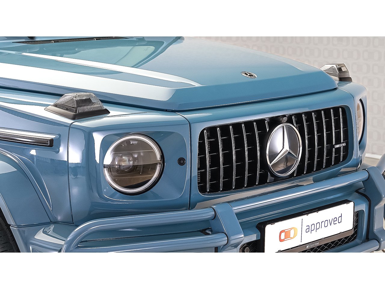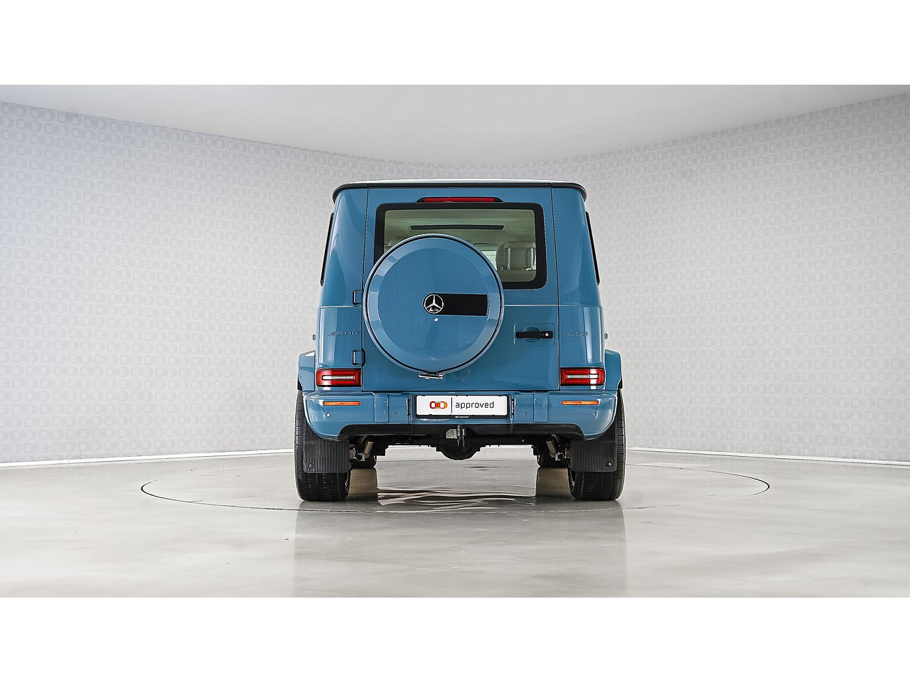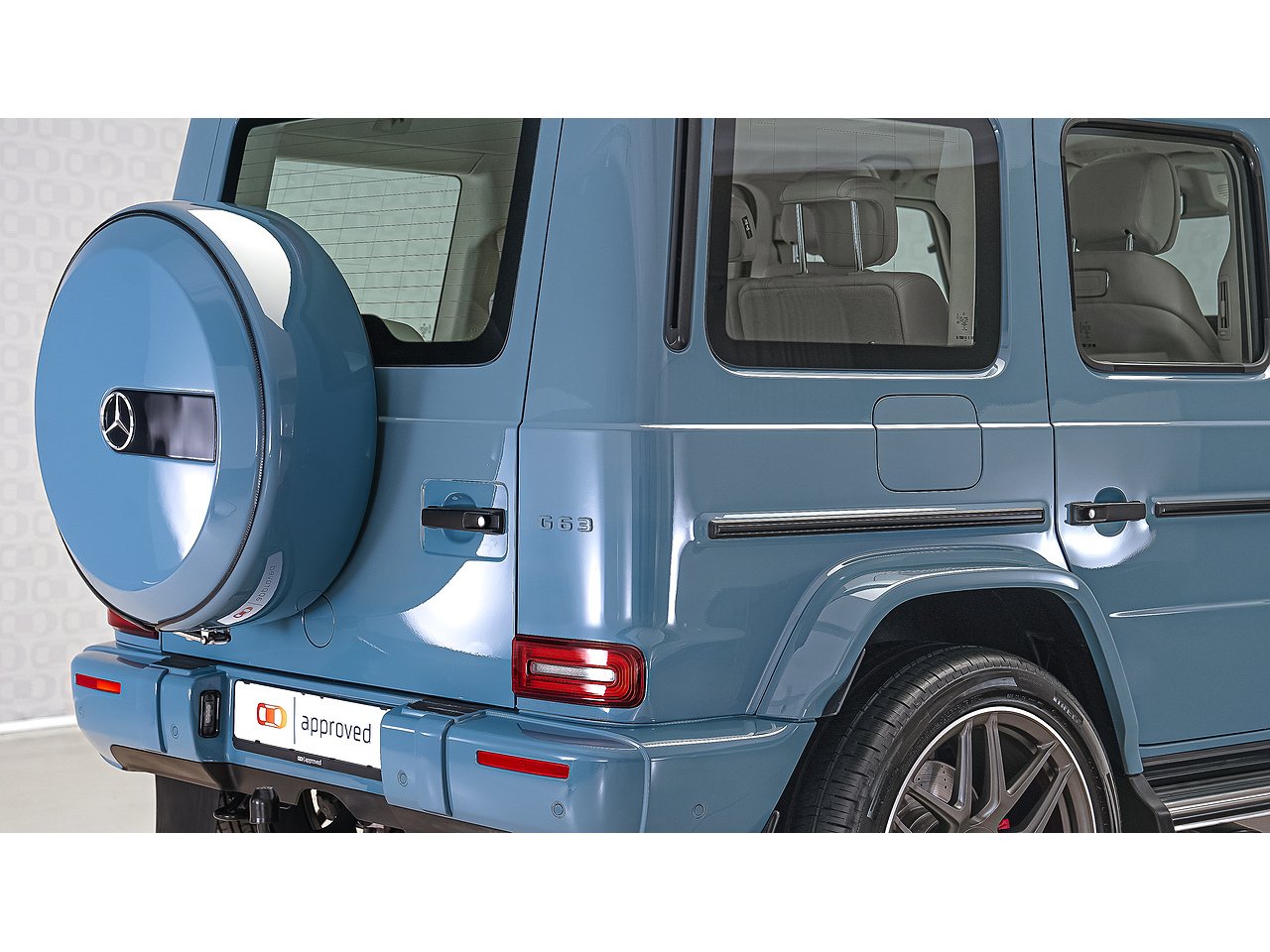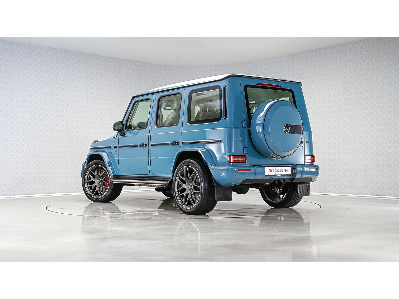 2021 Mercedes-Benz G 63 AMG MANUFAKTUR finished in rare Vintage Blue over Macchiato Beige, GCC specification. Equipped with AMG Night Package and AMG Carbon Fibre interior trim, this example blends commanding V8 performance with a highly distinctive and elegant specification. A standout colour combination seldom seen on the market, offering individuality without compromising presence.