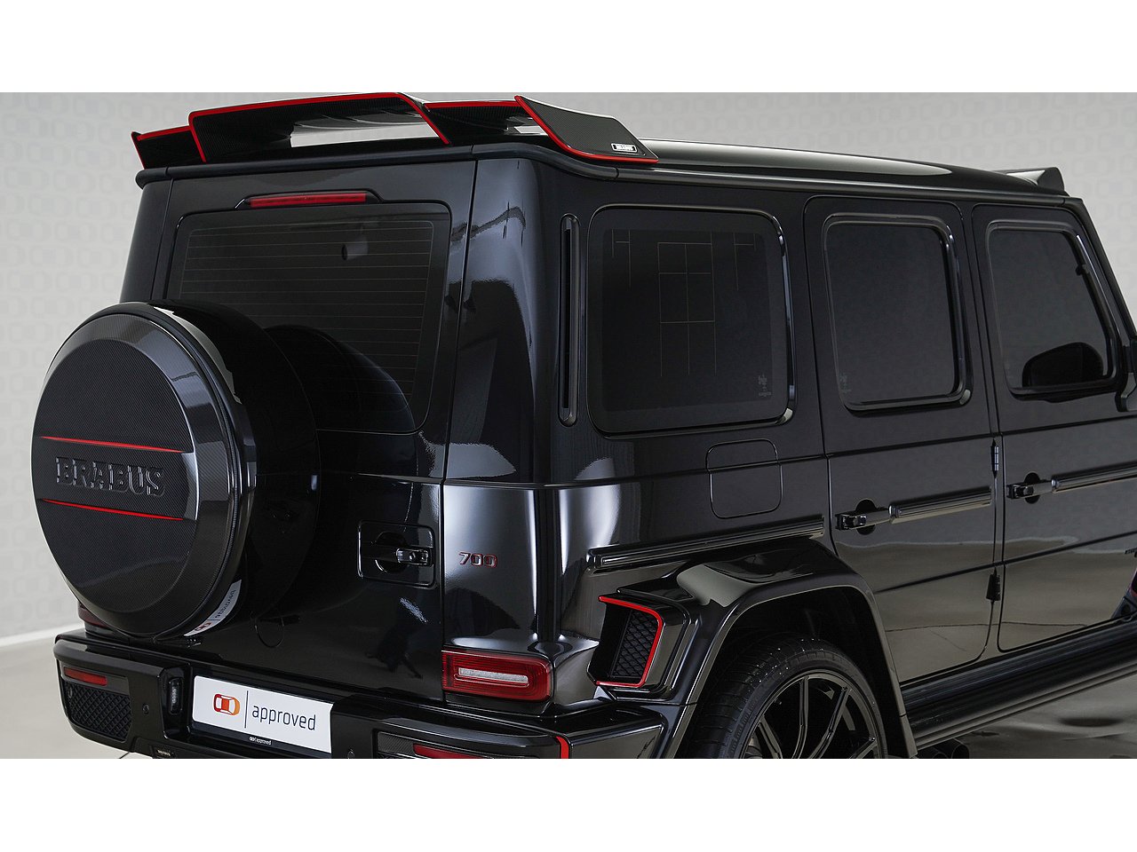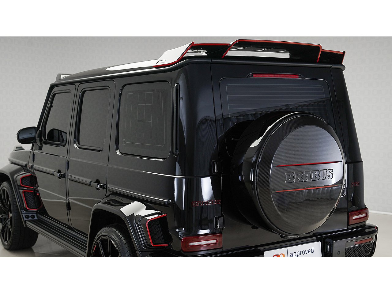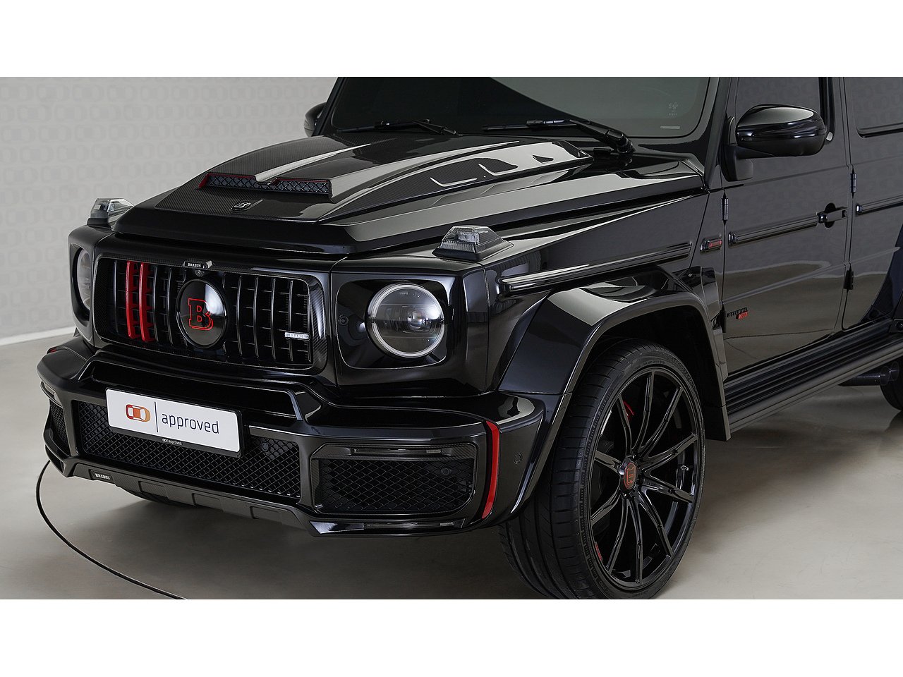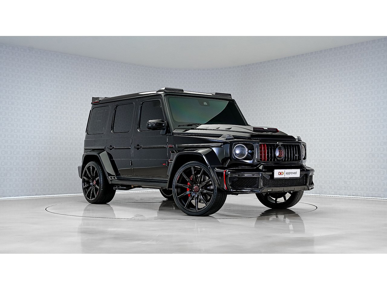 Black on black with a flash of red - the 2022 Brabus G700 Widestar in Obsidian Black is pure, unapologetic aggression. Carbon fibre bullnose bonnet, LED lightbar, red styling accents and a sports exhaust that announces its arrival before you even see it. Riding on 24-inch Brabus Z Platinum forged wheels, the stance alone stops traffic. Inside, Exclusive Red Nappa leather and full Piano Black trims create a cockpit that matches the exterior's intensity, all controlled through the AMG Drive Unit. GCC spec, fully accessorized, and built to dominate. Not for the faint-hearted. Viewing by appointment.