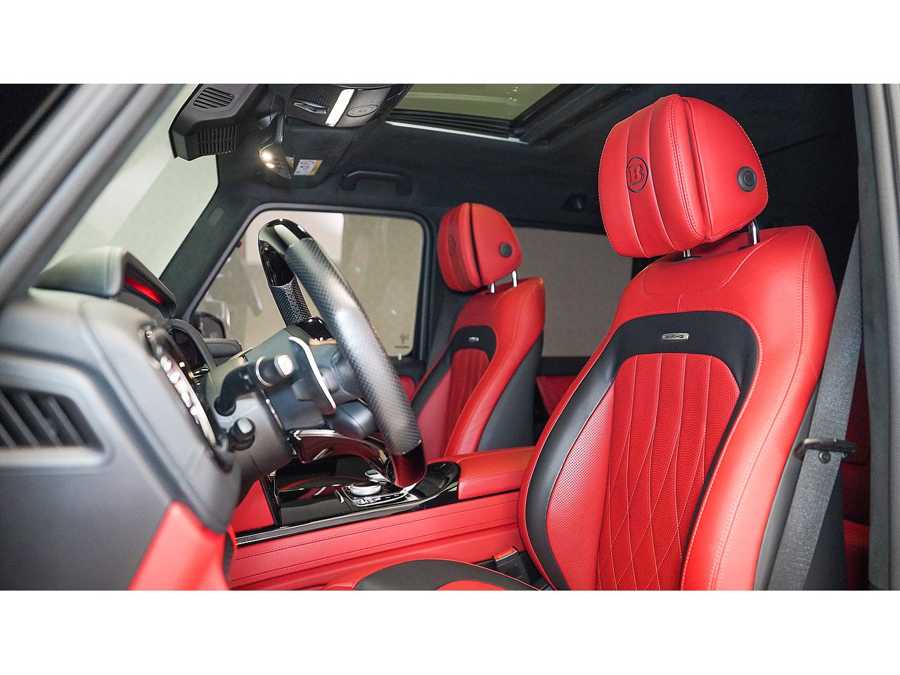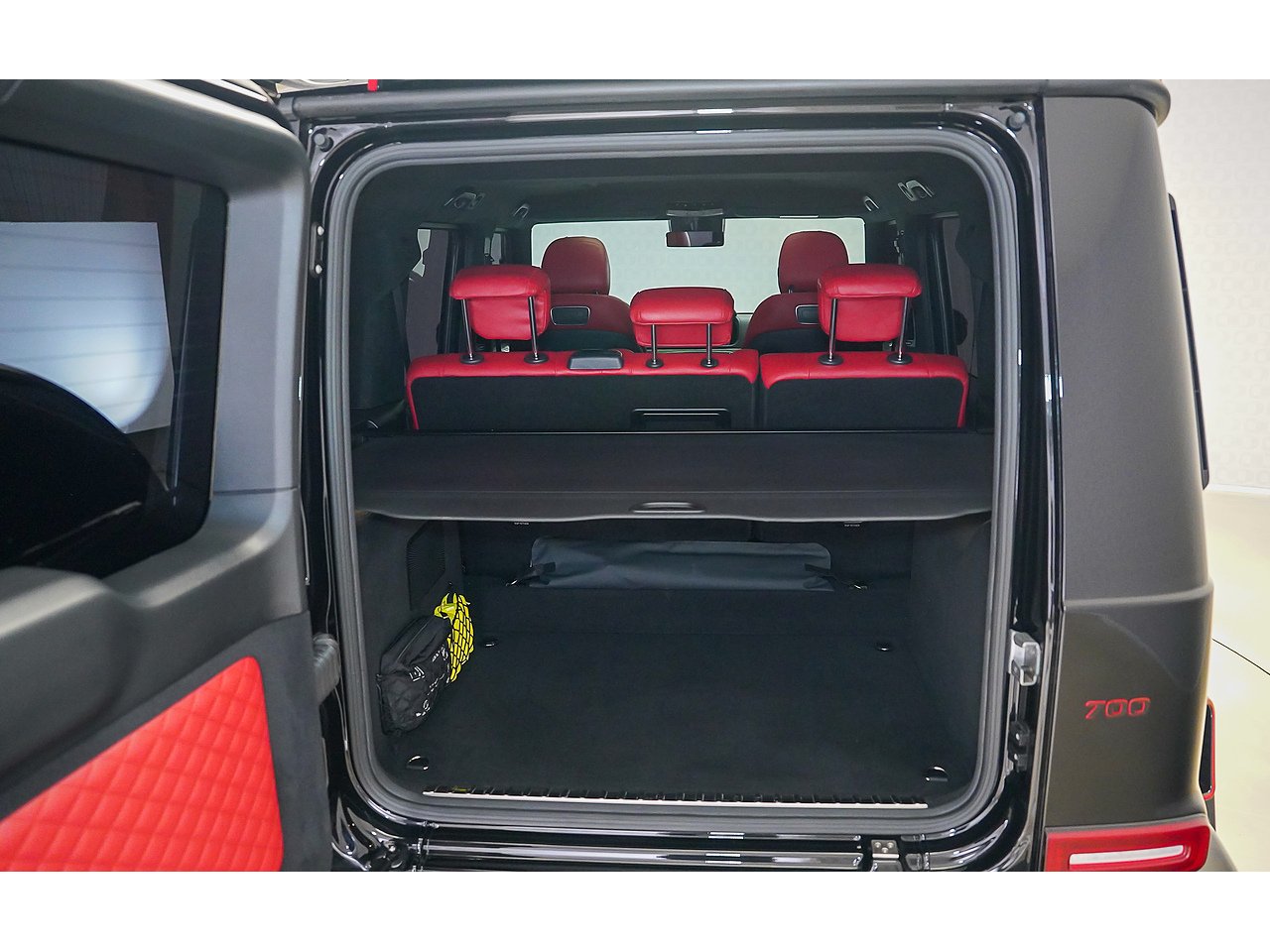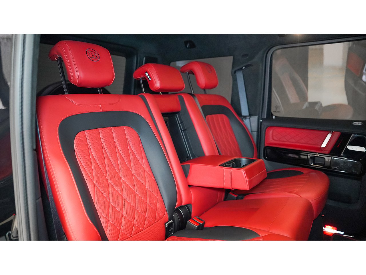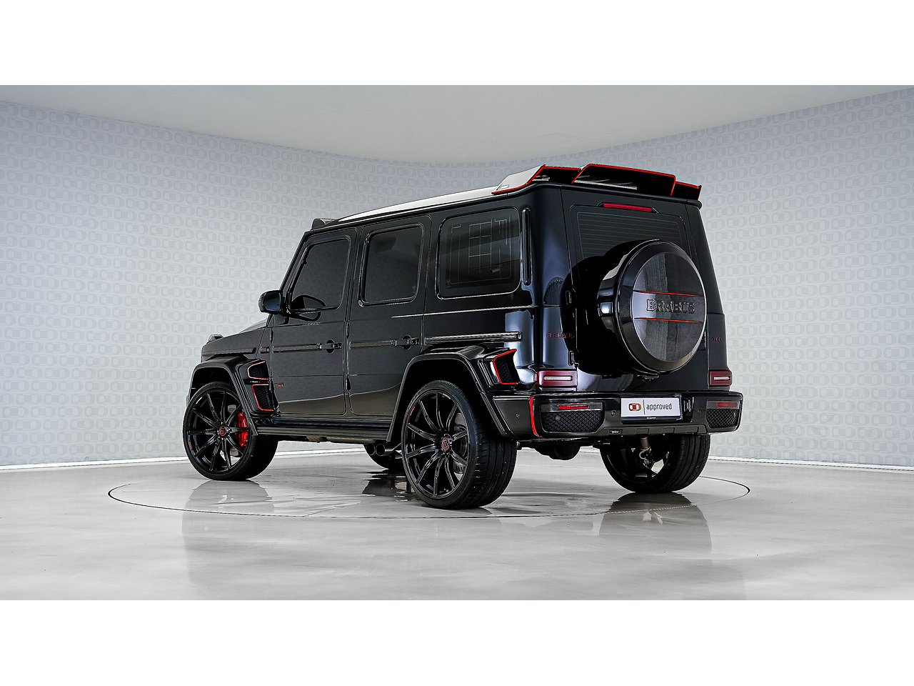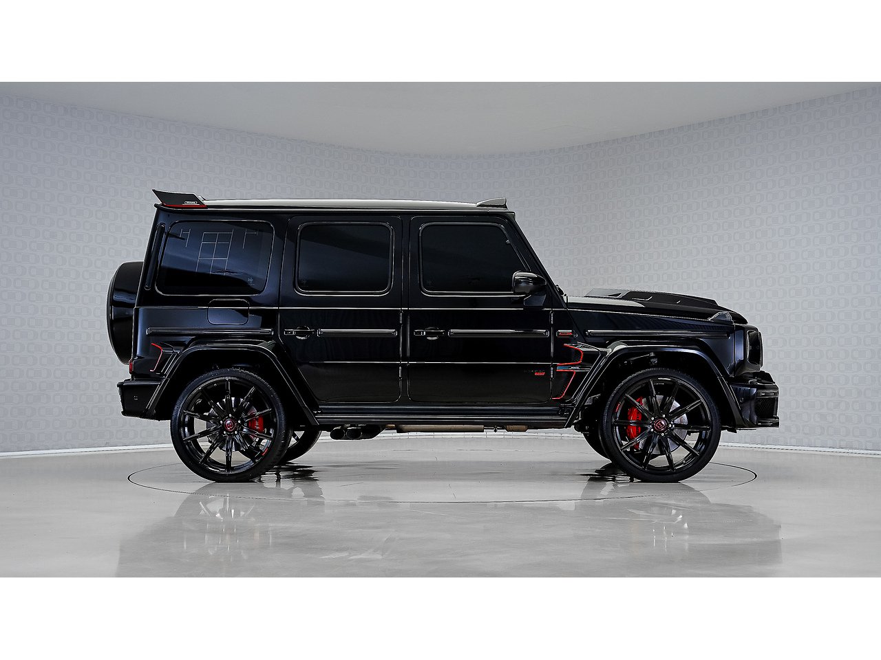 Black on black with a flash of red - the 2022 Brabus G700 Widestar in Obsidian Black is pure, unapologetic aggression. Carbon fibre bullnose bonnet, LED lightbar, red styling accents and a sports exhaust that announces its arrival before you even see it. Riding on 24-inch Brabus Z Platinum forged wheels, the stance alone stops traffic. Inside, Exclusive Red Nappa leather and full Piano Black trims create a cockpit that matches the exterior's intensity, all controlled through the AMG Drive Unit. GCC spec, fully accessorized, and built to dominate. Not for the faint-hearted. Viewing by appointment.