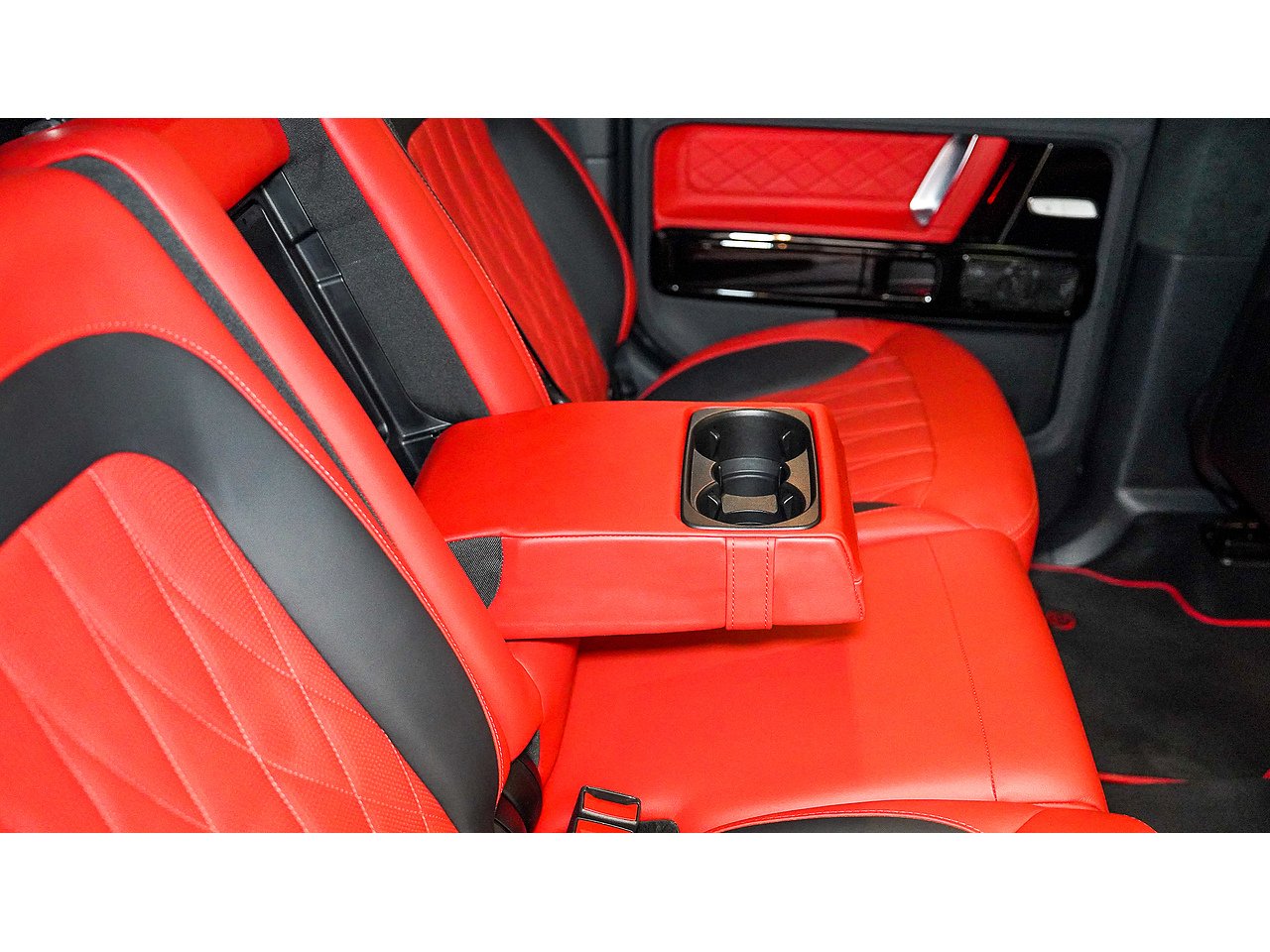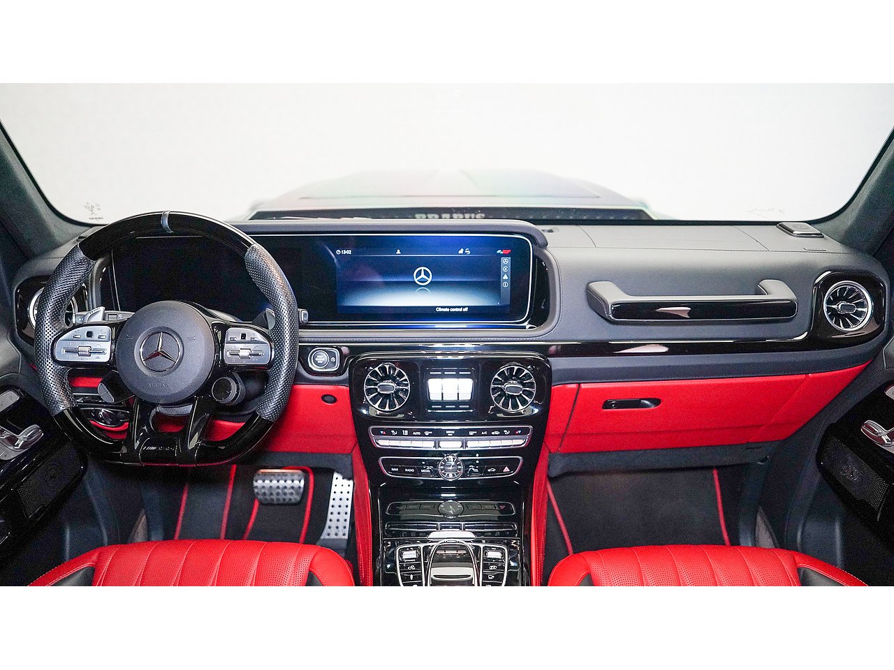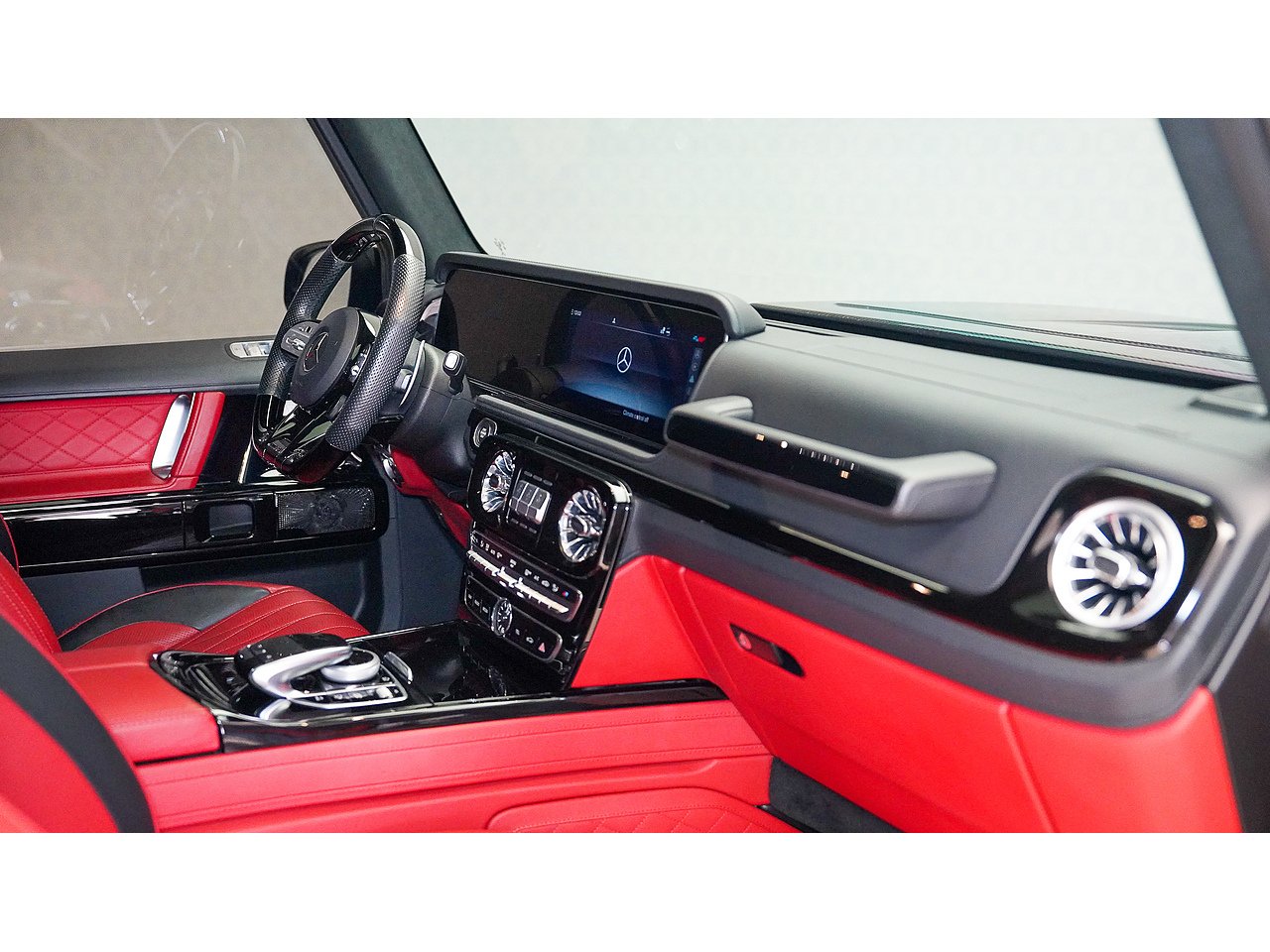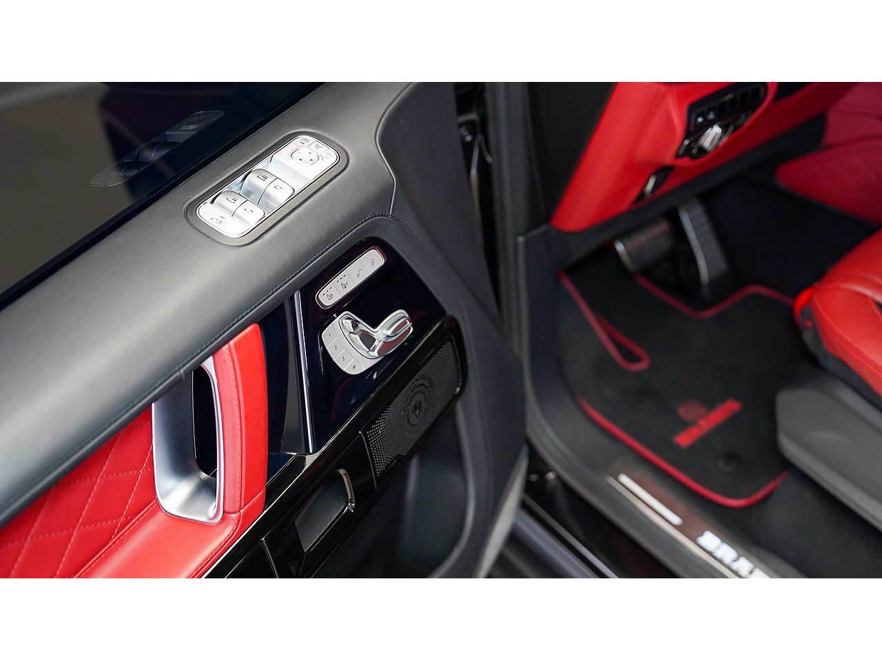 Black on black with a flash of red - the 2022 Brabus G700 Widestar in Obsidian Black is pure, unapologetic aggression. Carbon fibre bullnose bonnet, LED lightbar, red styling accents and a sports exhaust that announces its arrival before you even see it. Riding on 24-inch Brabus Z Platinum forged wheels, the stance alone stops traffic. Inside, Exclusive Red Nappa leather and full Piano Black trims create a cockpit that matches the exterior's intensity, all controlled through the AMG Drive Unit. GCC spec, fully accessorized, and built to dominate. Not for the faint-hearted. Viewing by appointment.