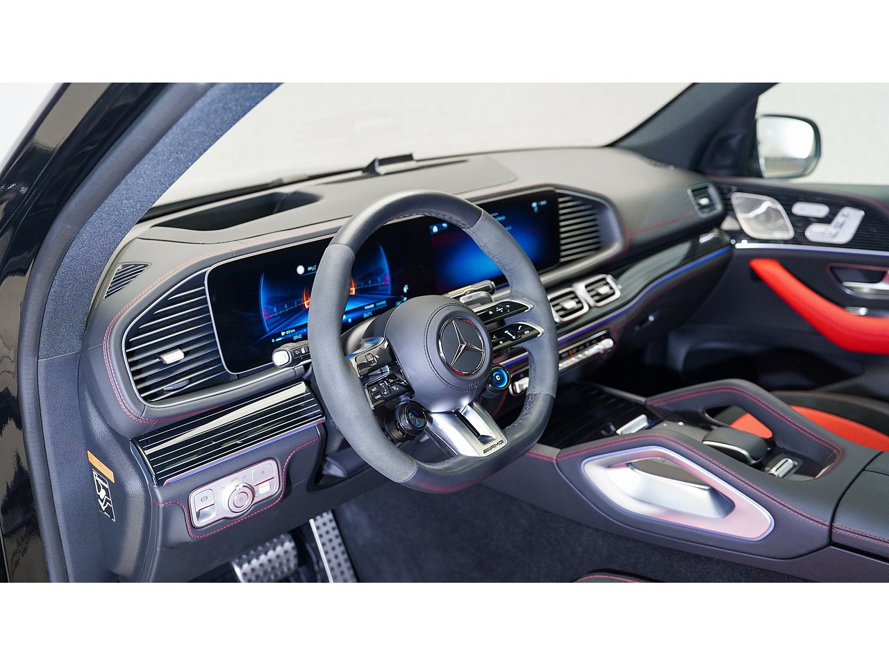 Inside, the cabin exudes modern luxury — AMG sport seats, ambient lighting, Burmester 3D surround sound, and the latest MBUX infotainment with gesture control create an immersive driving experience. Distinct AMG styling cues and quad exhausts complete its bold presence.