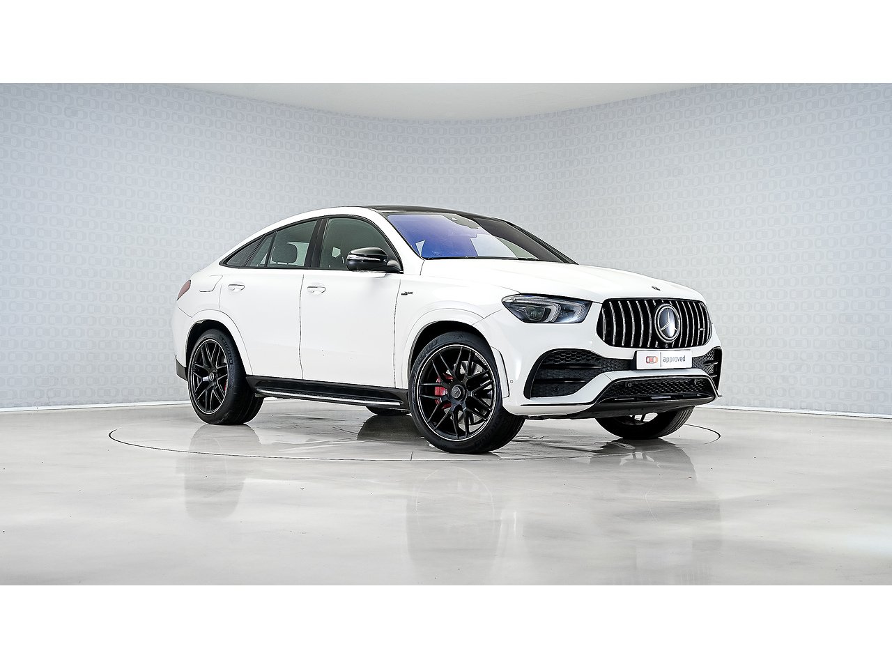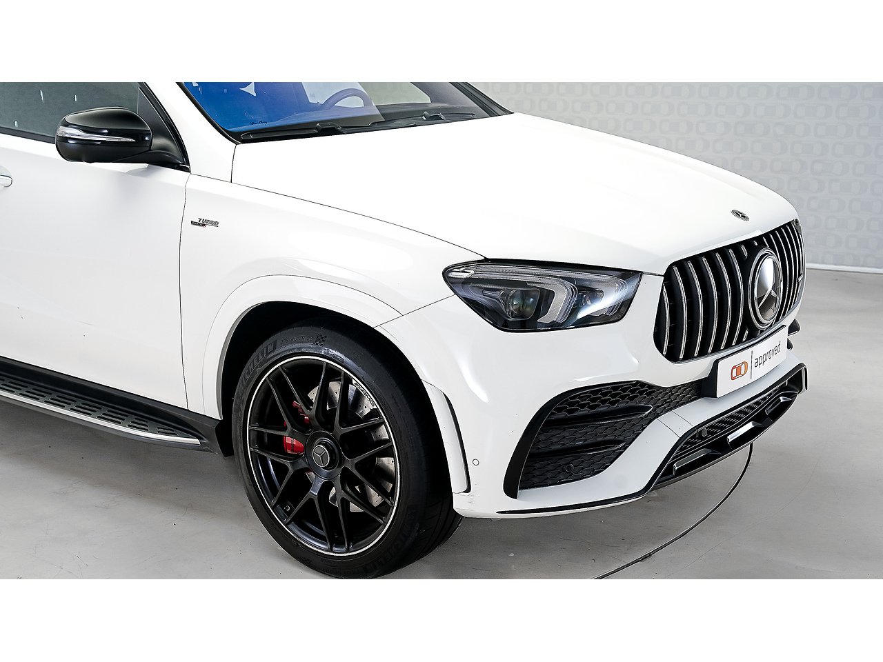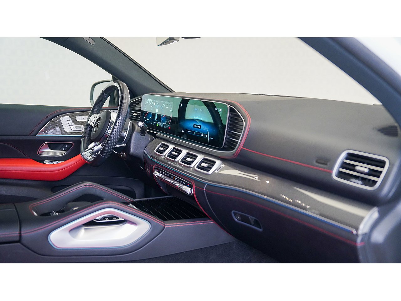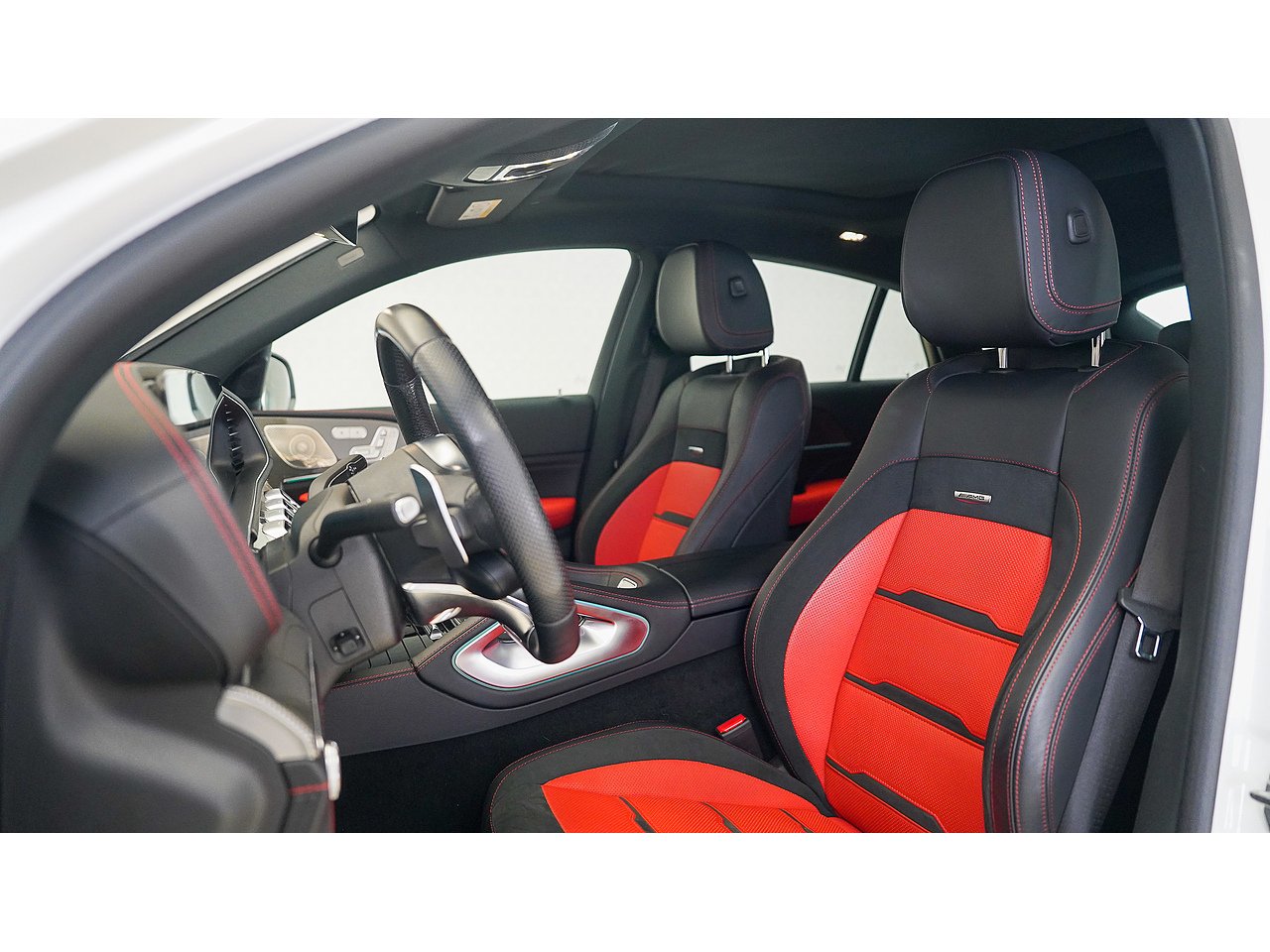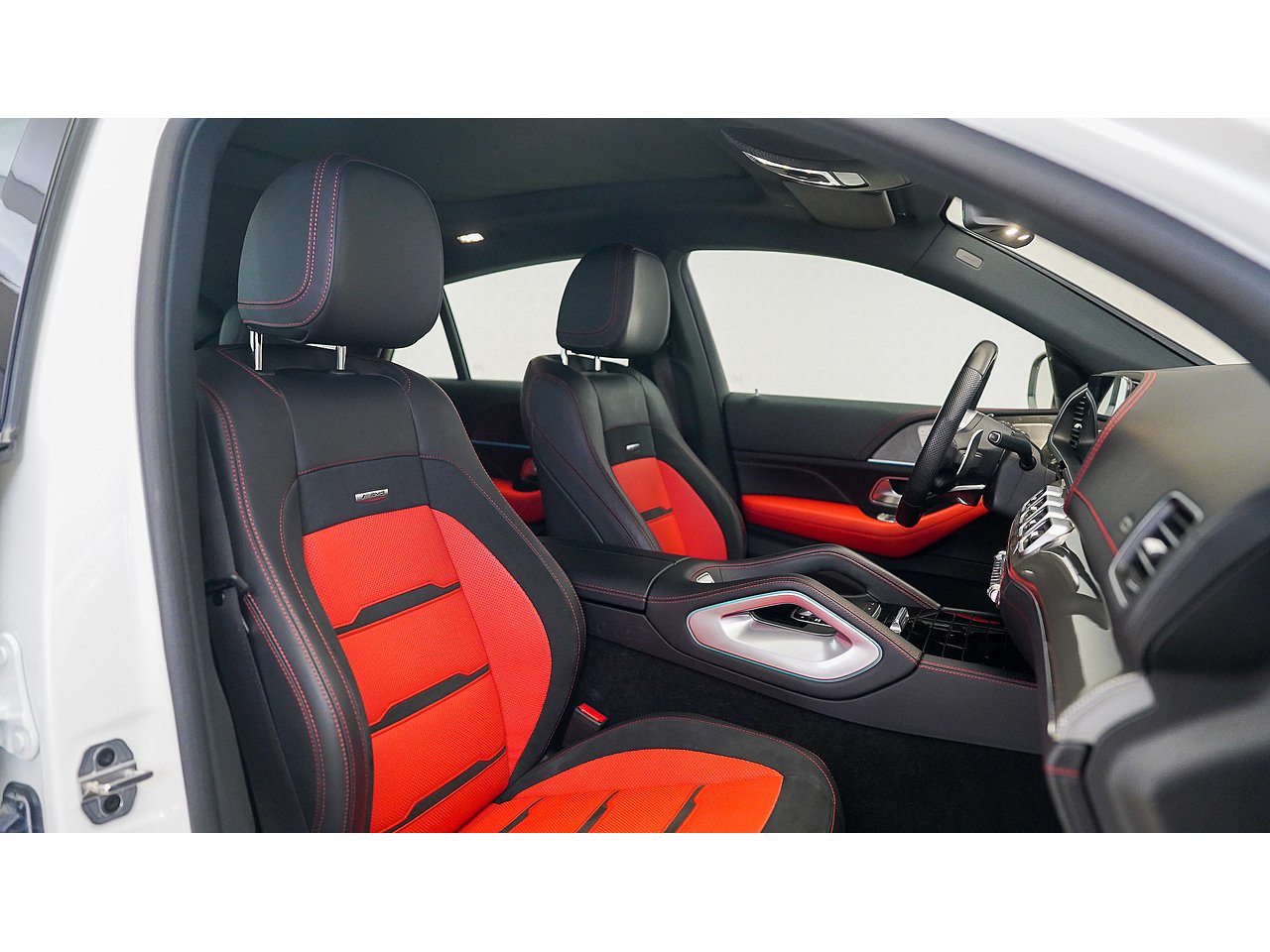 2022 Mercedes-AMG GLE 53 Coupe, GCC specification, finished in Polar White with 22-inch AMG multi-spoke black alloy wheels and Classic Red Nappa leather interior. A beautifully specified example combining strong AMG performance with bold coupe styling, delivering power, technology and unmistakable road presence.