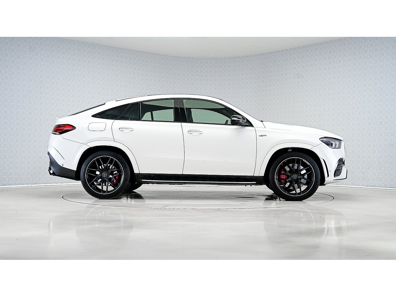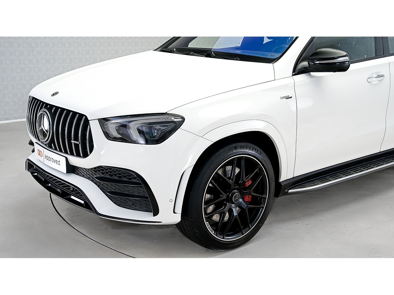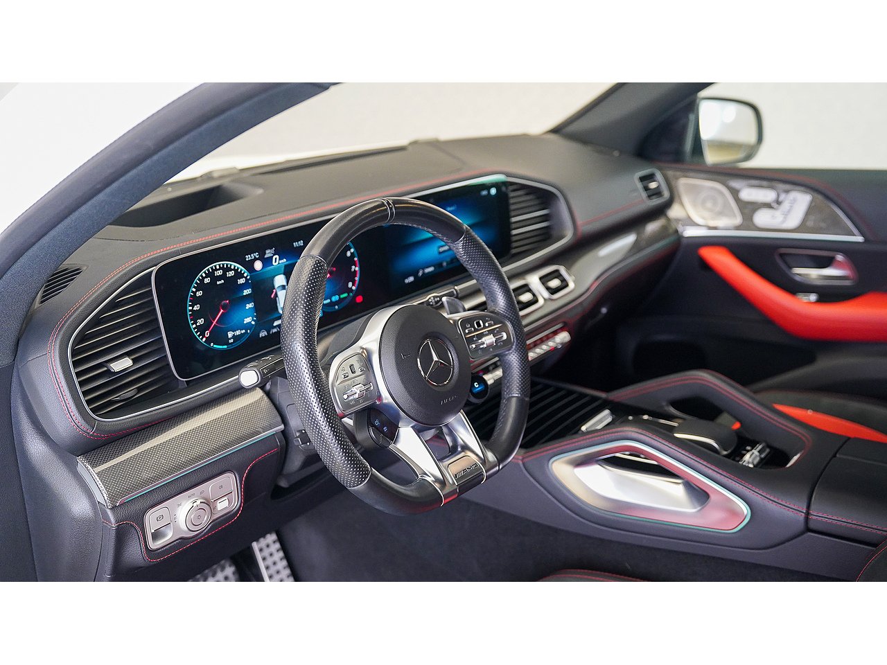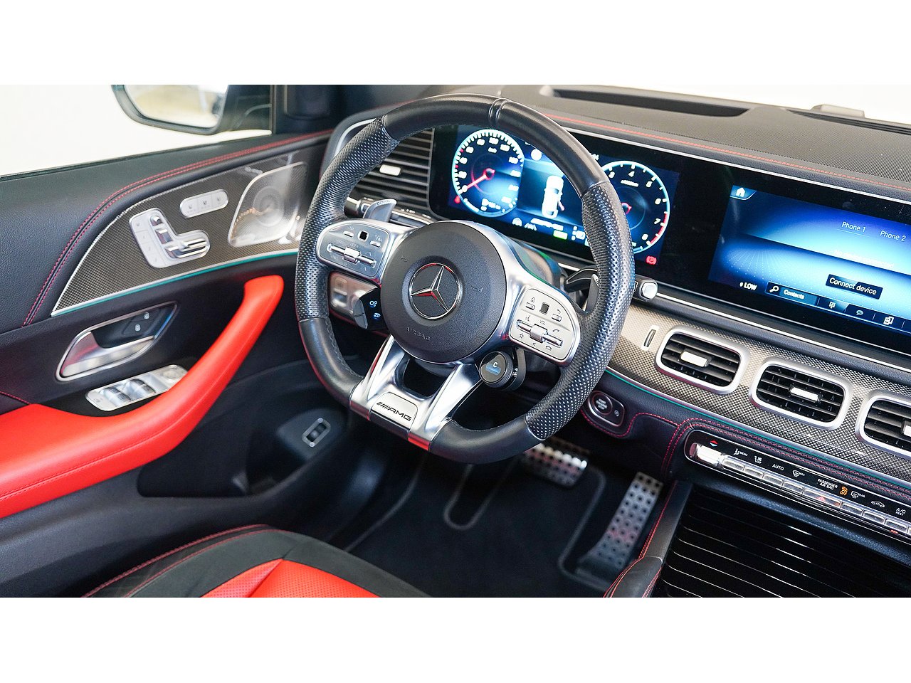 2022 Mercedes-AMG GLE 53 Coupe, GCC specification, finished in Polar White with 22-inch AMG multi-spoke black alloy wheels and Classic Red Nappa leather interior. A beautifully specified example combining strong AMG performance with bold coupe styling, delivering power, technology and unmistakable road presence.
