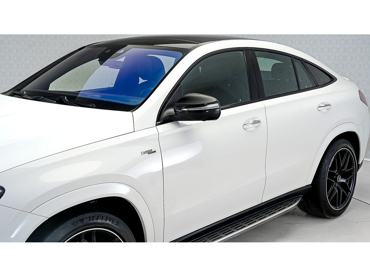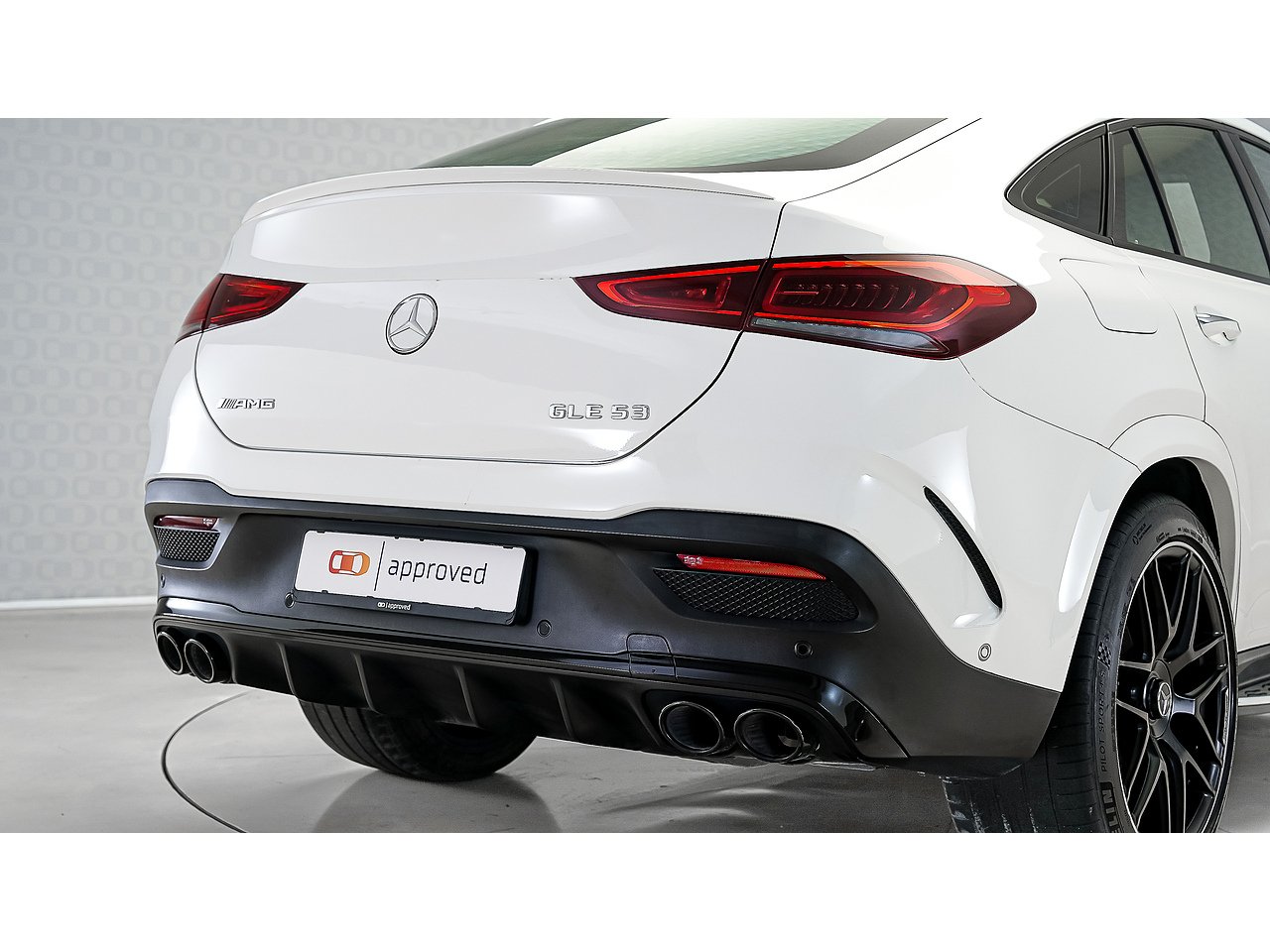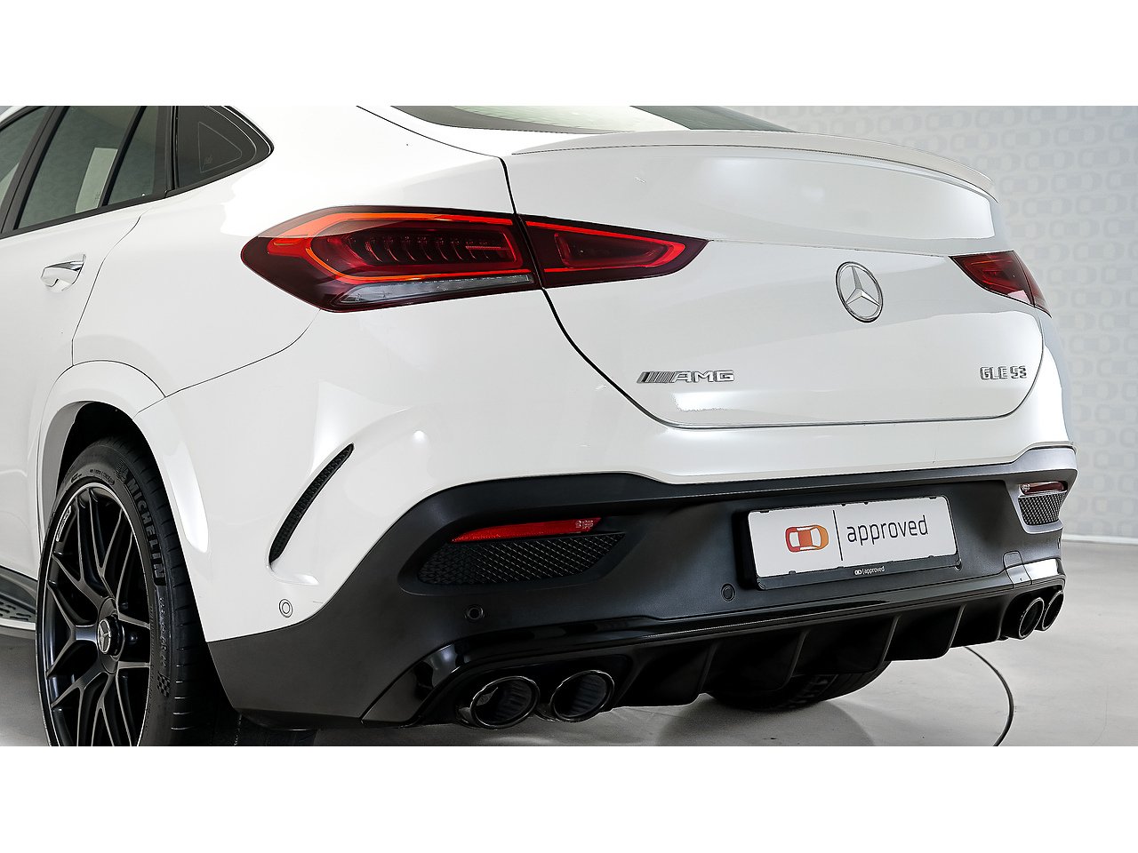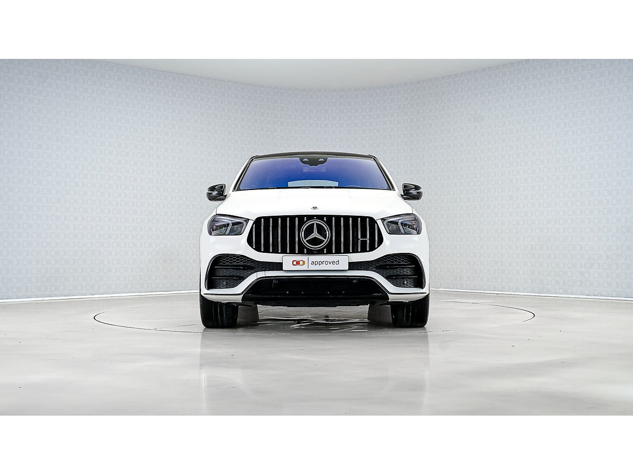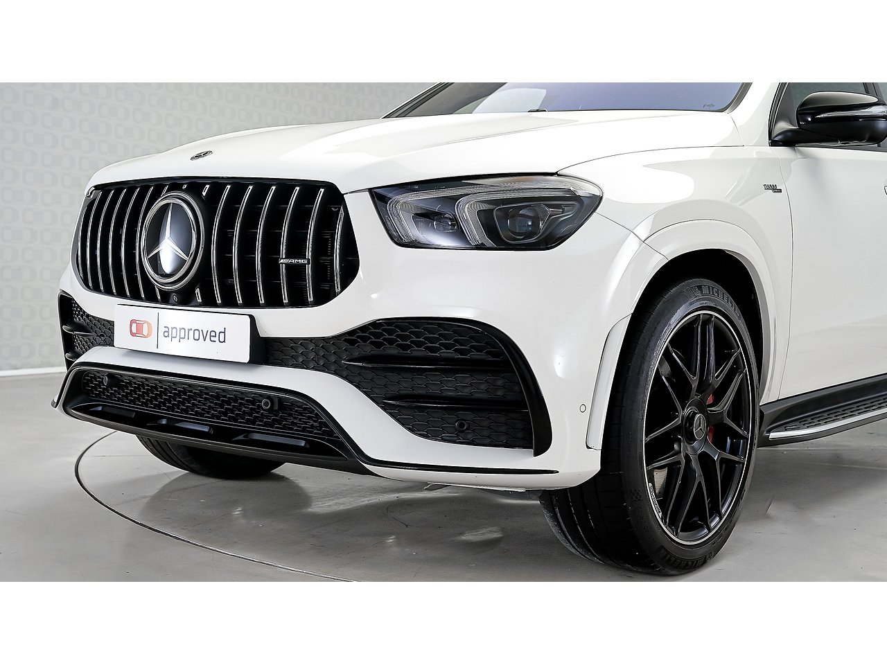 2022 Mercedes-AMG GLE 53 Coupe, GCC specification, finished in Polar White with 22-inch AMG multi-spoke black alloy wheels and Classic Red Nappa leather interior. A beautifully specified example combining strong AMG performance with bold coupe styling, delivering power, technology and unmistakable road presence.