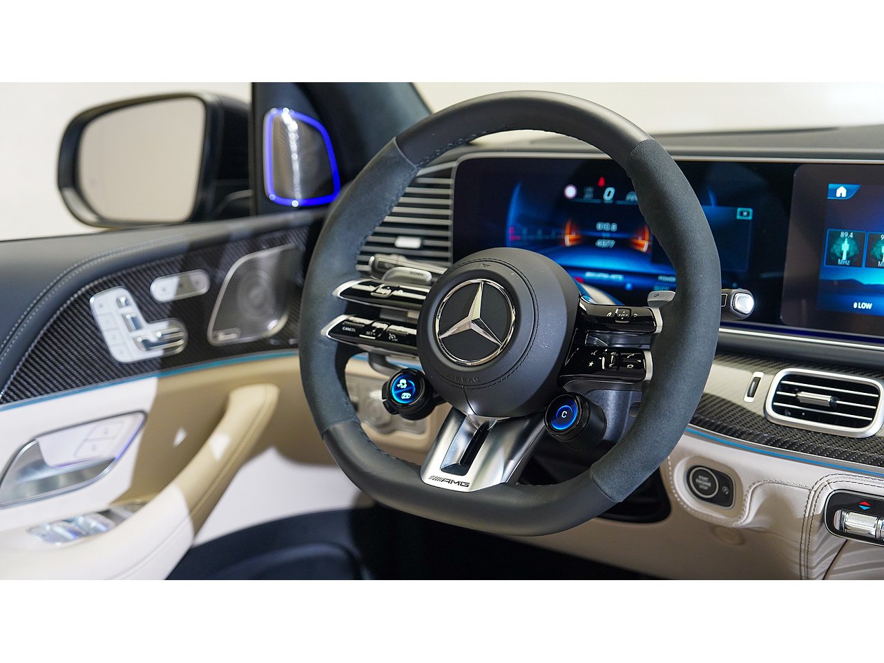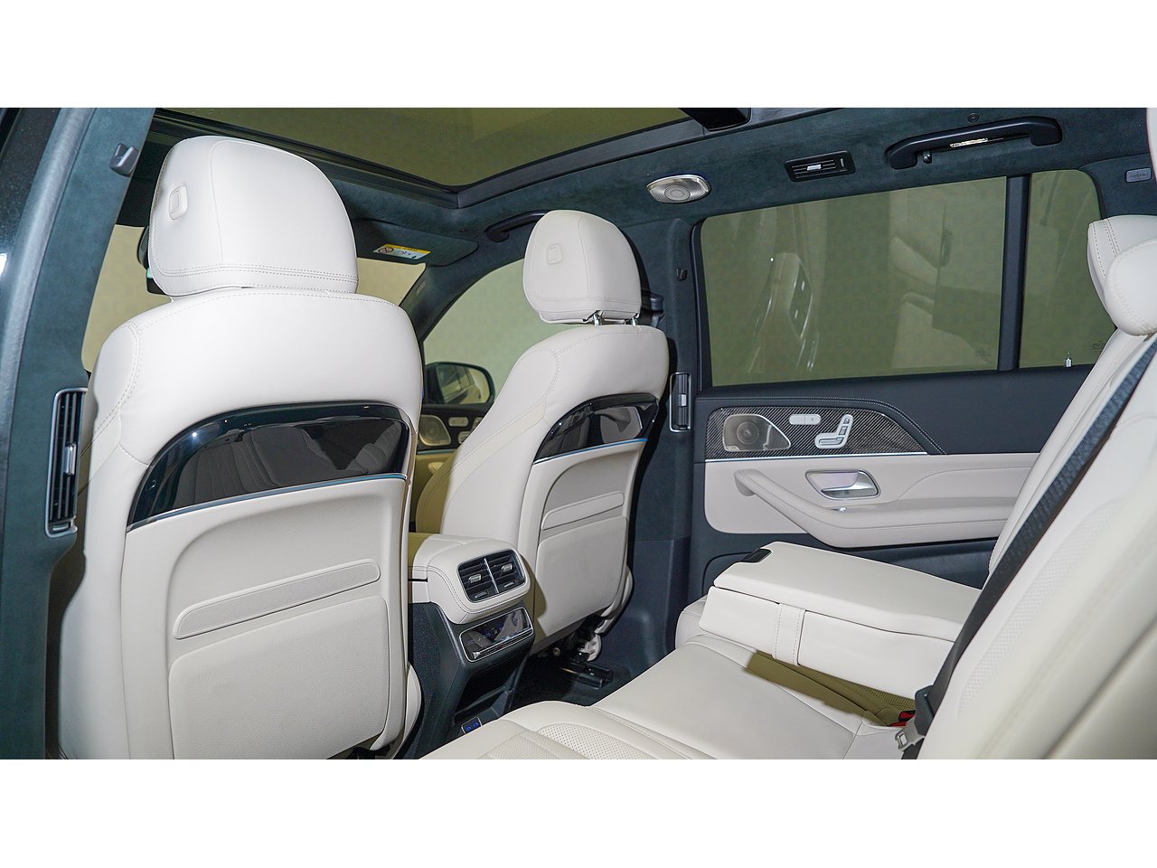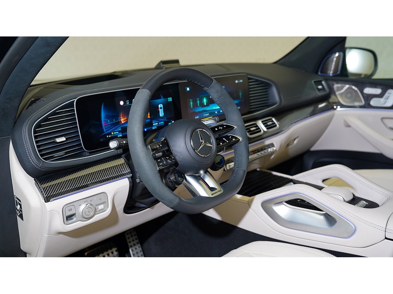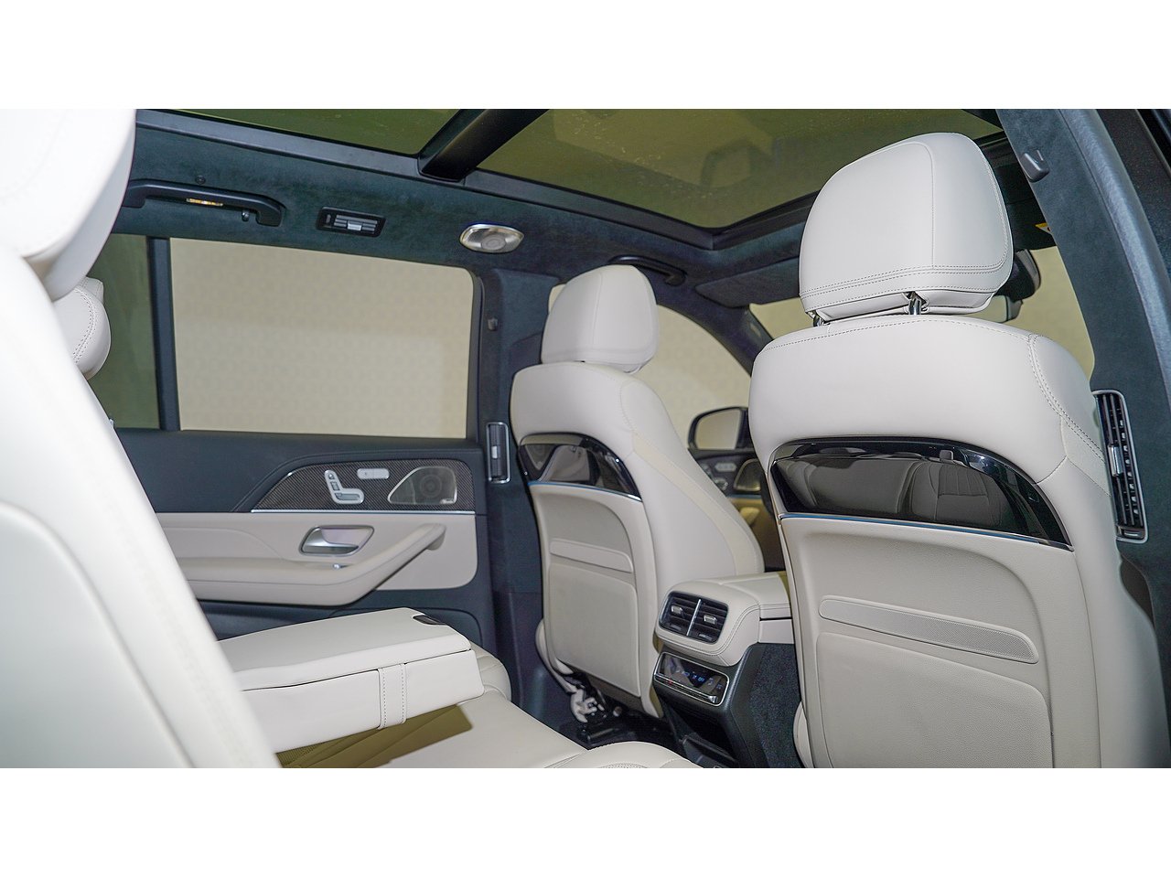 Inside, the GLS63 pampers with supreme luxury — from Nappa leather upholstery and AMG-specific styling to the latest MBUX infotainment system, Burmester surround sound, and a panoramic sunroof that enhances every drive with natural light and ambience.