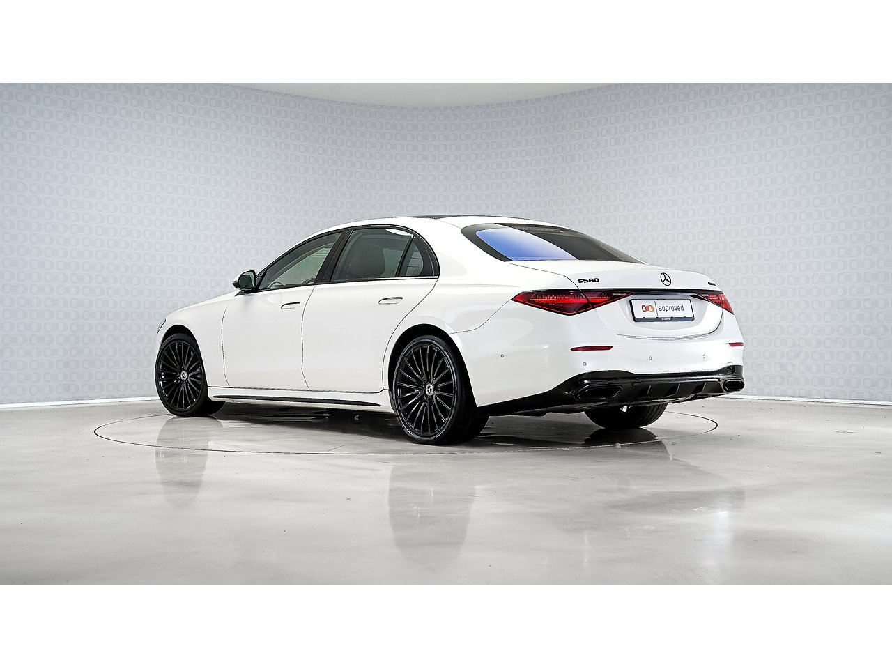 This 2022 Mercedes-Benz S 580 AMG Line delivers flagship S-Class luxury with added AMG presence and V8 performance. Powered by a 4.0-litre twin-turbo V8 producing approximately 496 hp, it offers effortless acceleration, exceptional refinement, and the smooth composure expected from Mercedes’ top luxury saloon.
