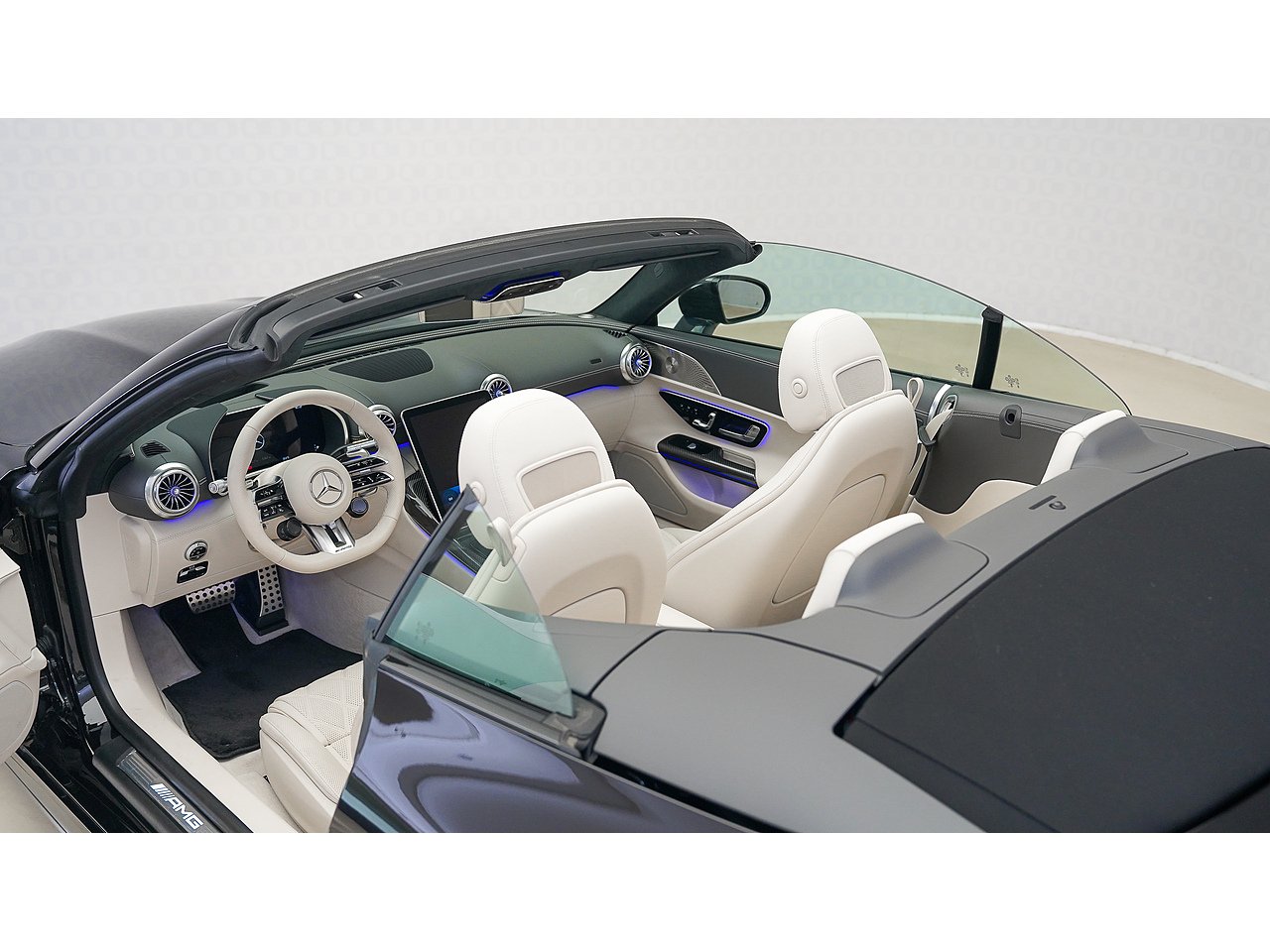 Finished in Obsidian Black Metallic with a Macchiato Beige interior, this Japan-spec high-option example features the lightweight black fabric soft-top roof, enhancing both performance and classic roadster character. A modern SL that perfectly blends luxury, presence, and unmistakable AMG performance.