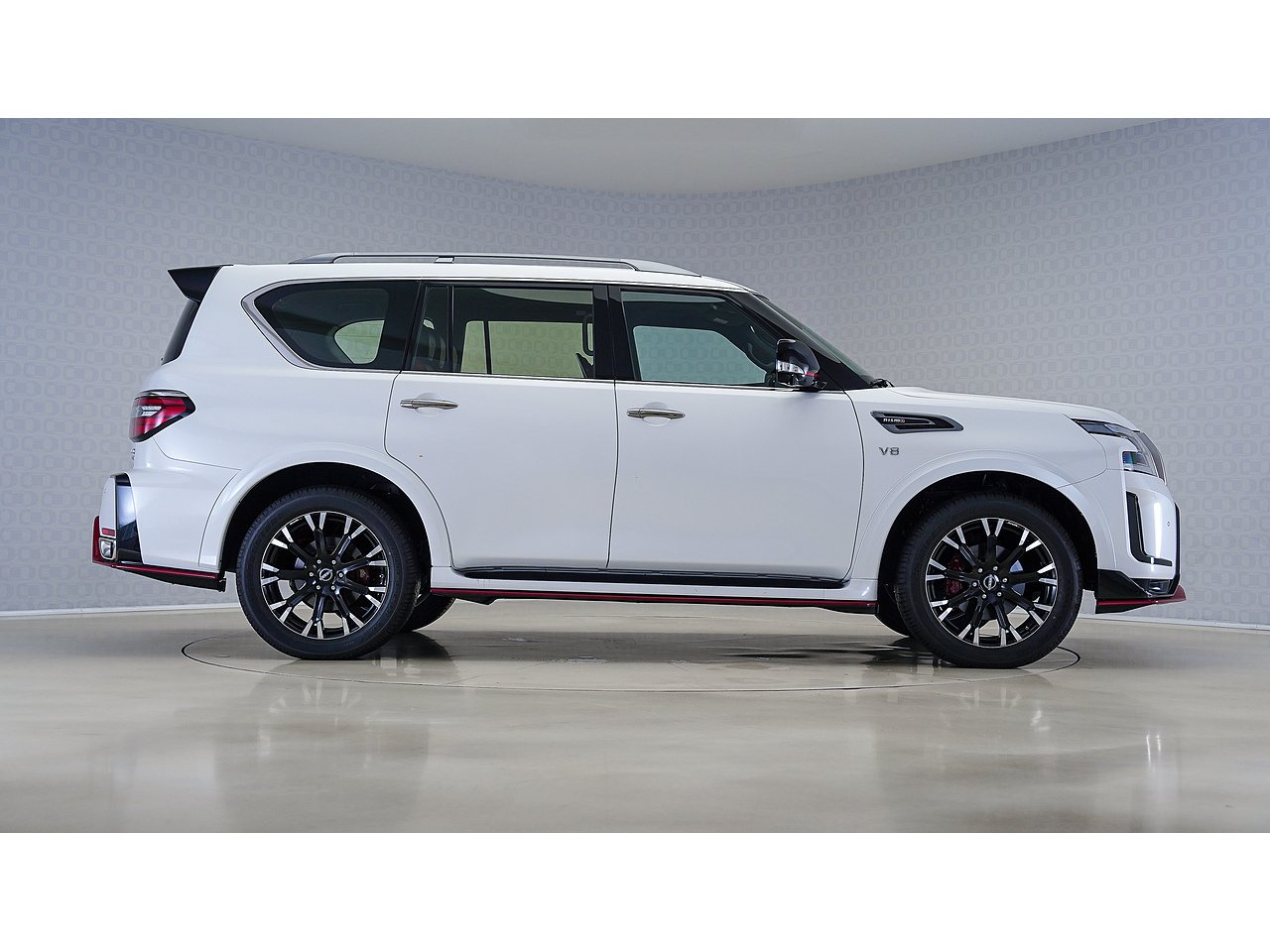 Powered by a hand-tuned 5.6L V8 producing 428 hp, paired with Bilstein-tuned suspension and a sport exhaust, the Patrol NISMO blends exhilarating performance with everyday practicality. Inside, the cabin surrounds you in luxury with Alcantara and red-stitched leather, highlighted by a bespoke Alcantara headliner with Starlight effect for a truly distinctive ambience.
