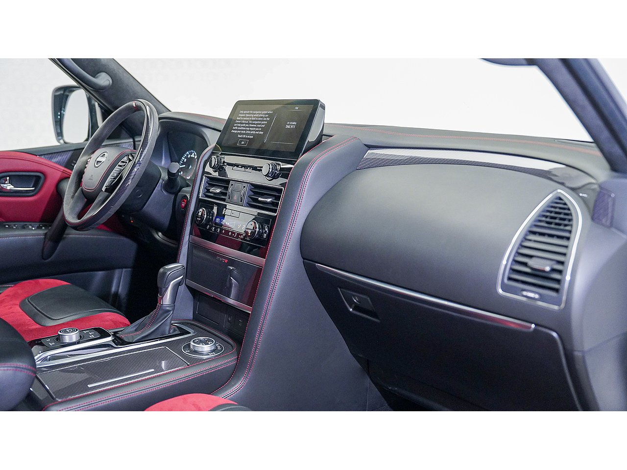 NISMO-exclusive Black Alcantara with Red stitching,