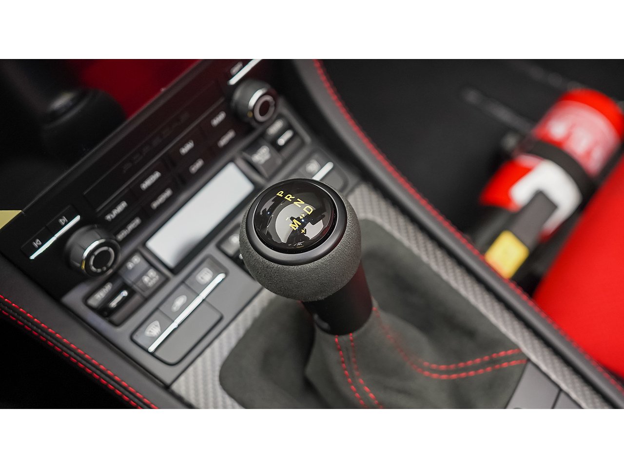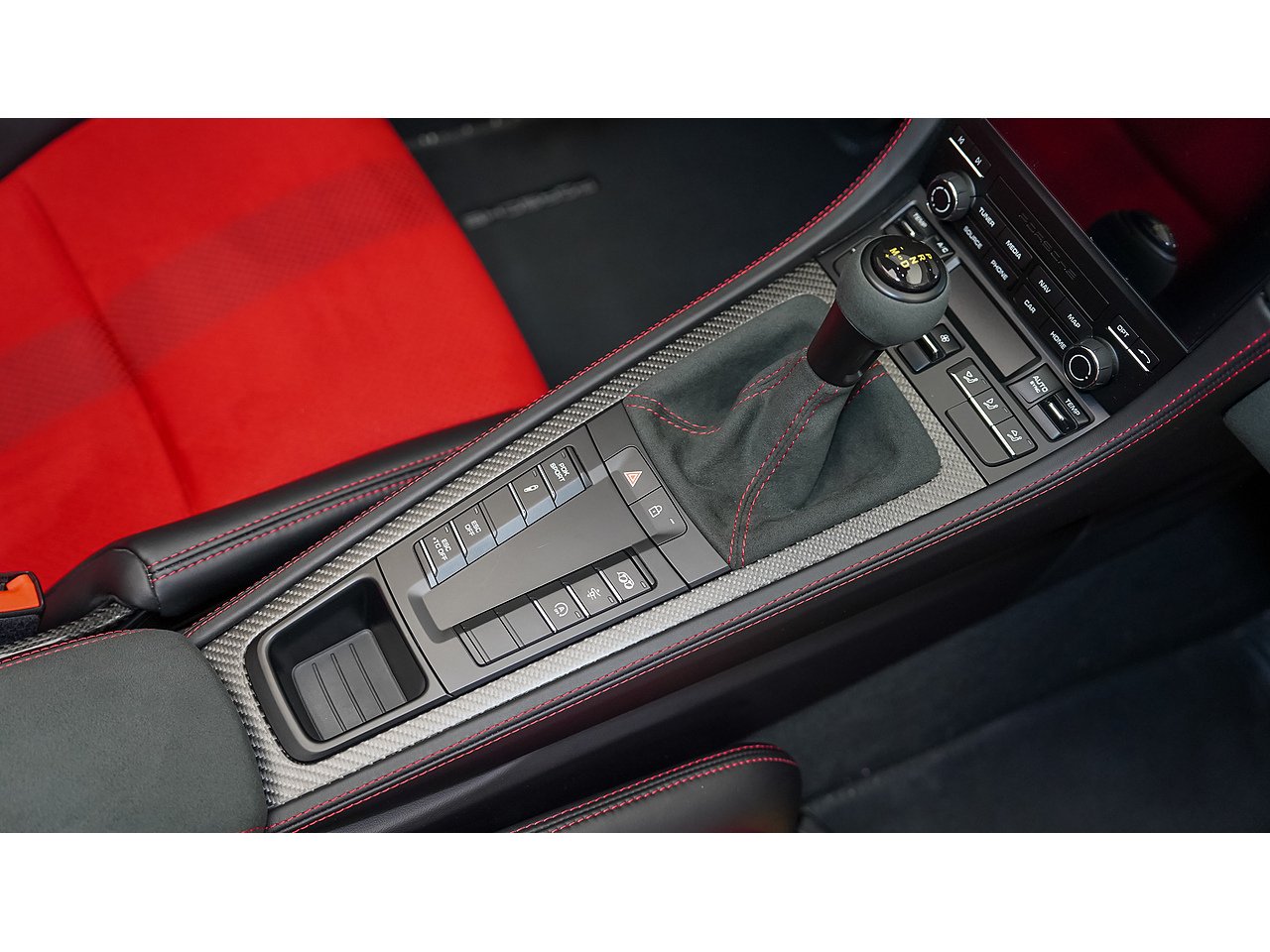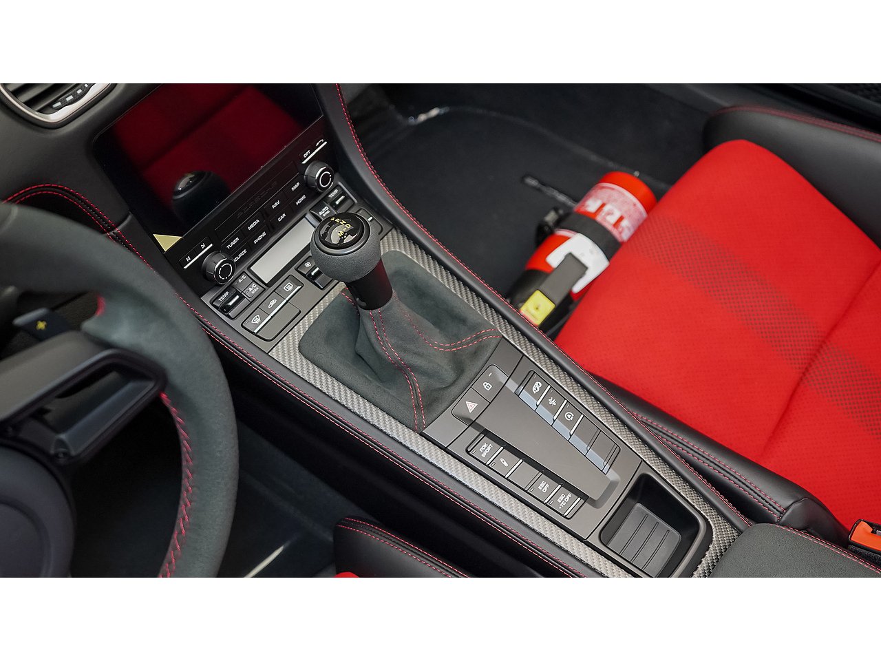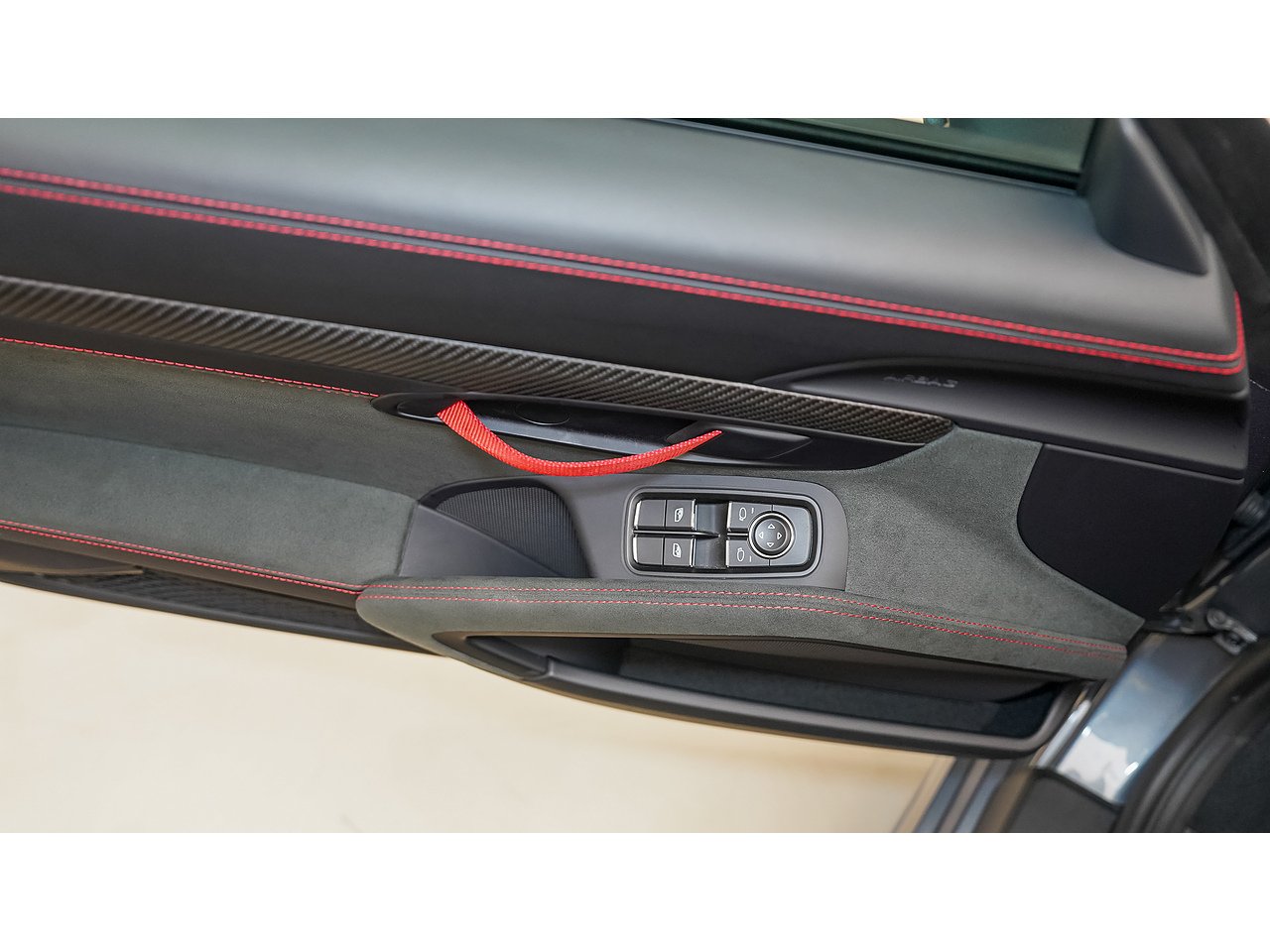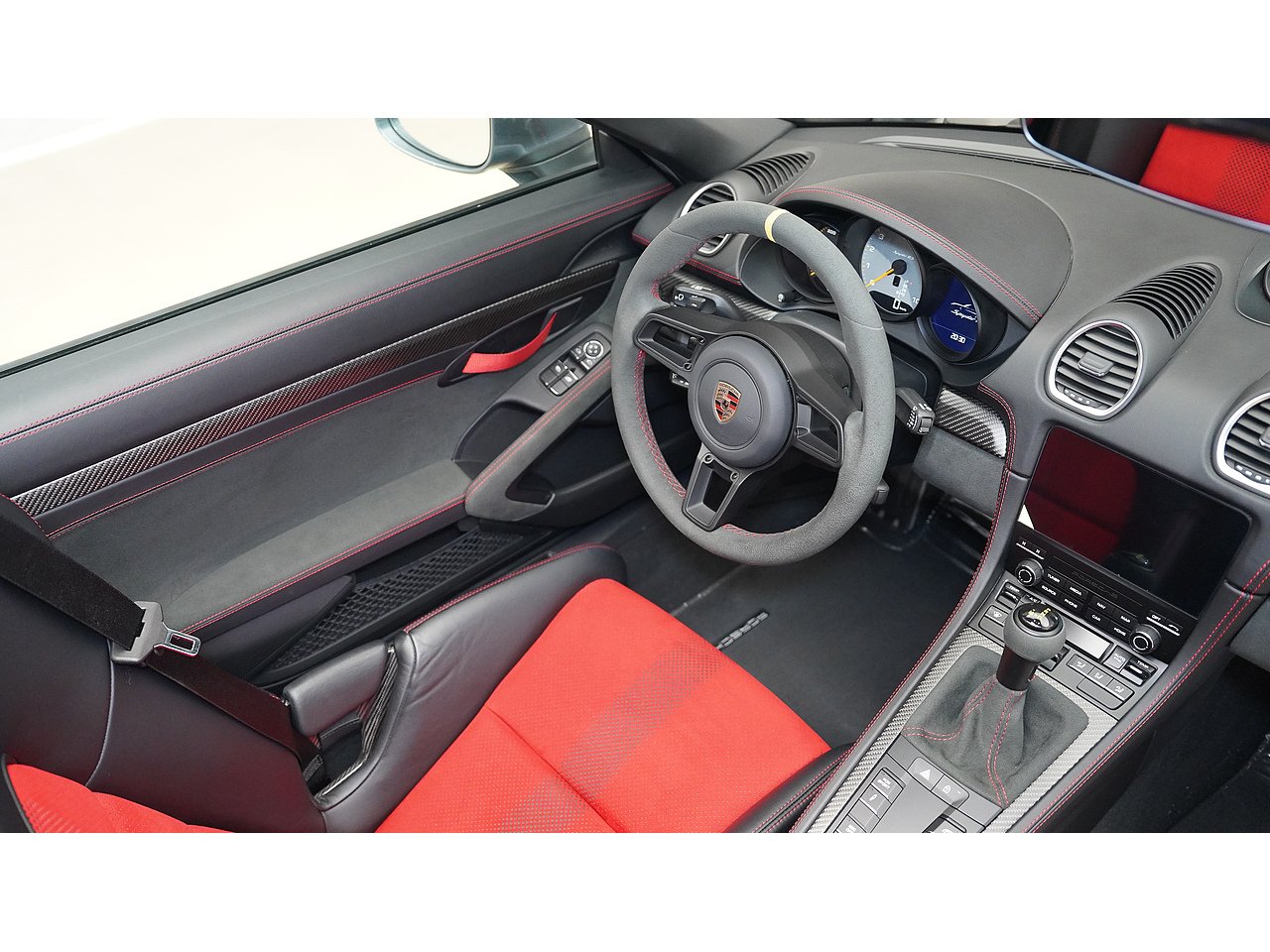 Interior: Black Leather / Racetex with Carmine Red