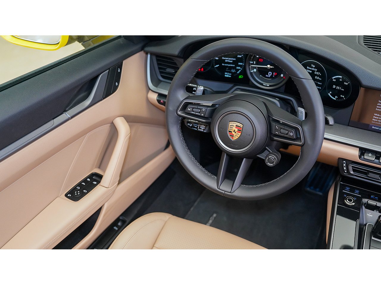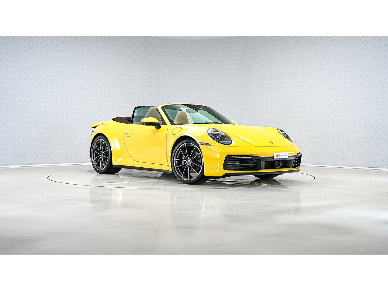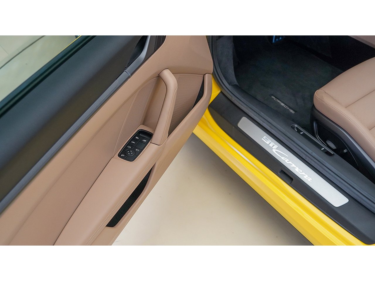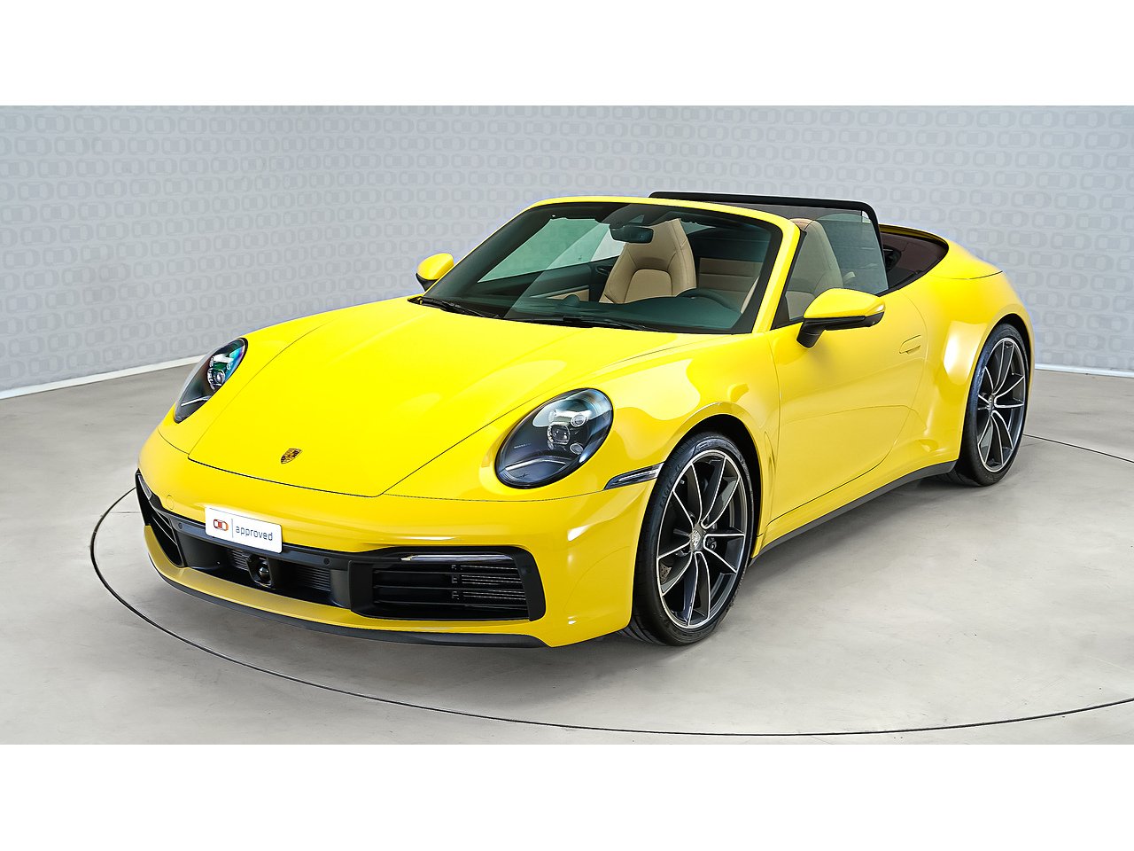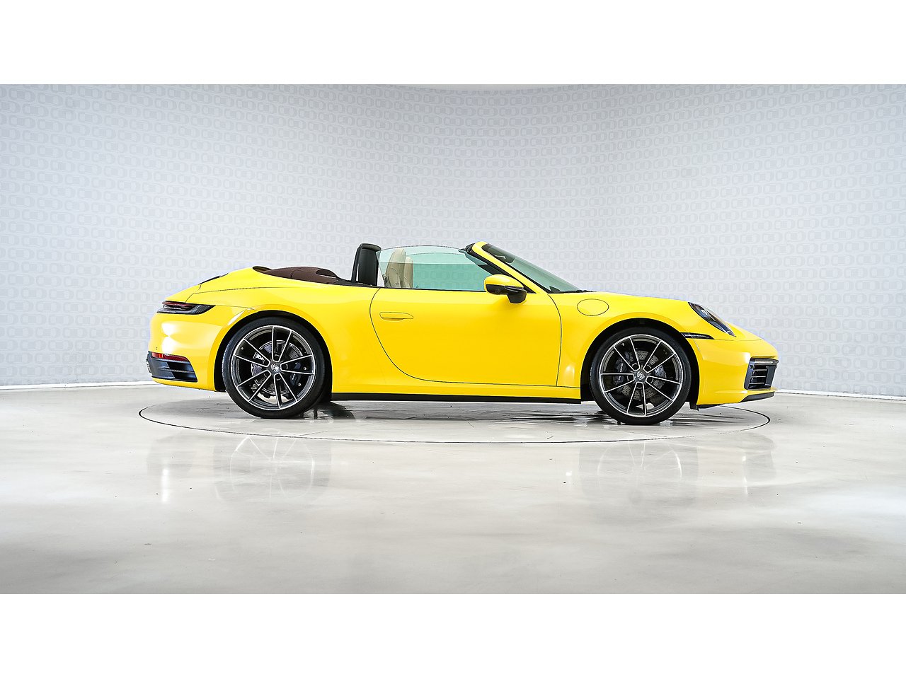 This 2024 Porsche 911 Cabriolet delivers timeless open-top performance paired with unmistakable Porsche design, finished in striking Racing Yellow with a contrasting brown convertible roof and a refined Beige interior.