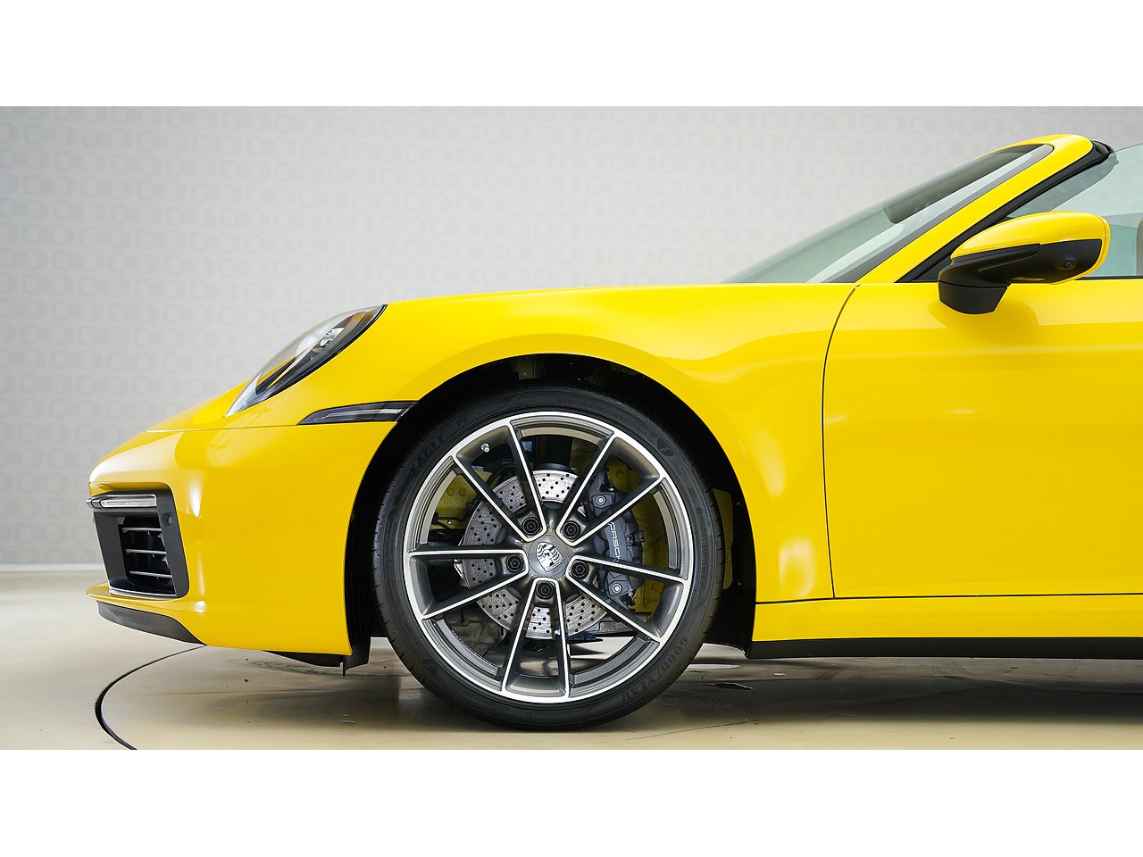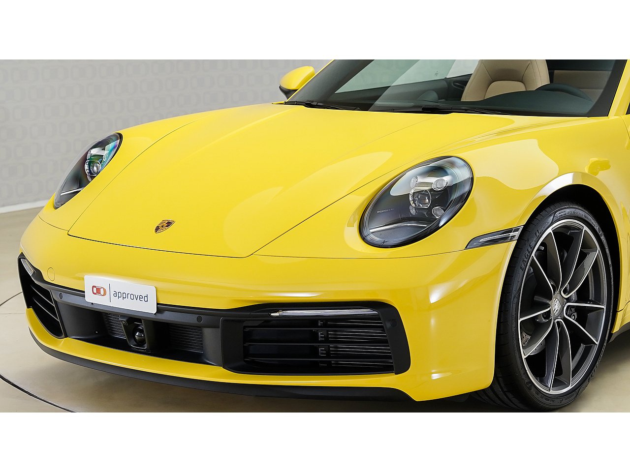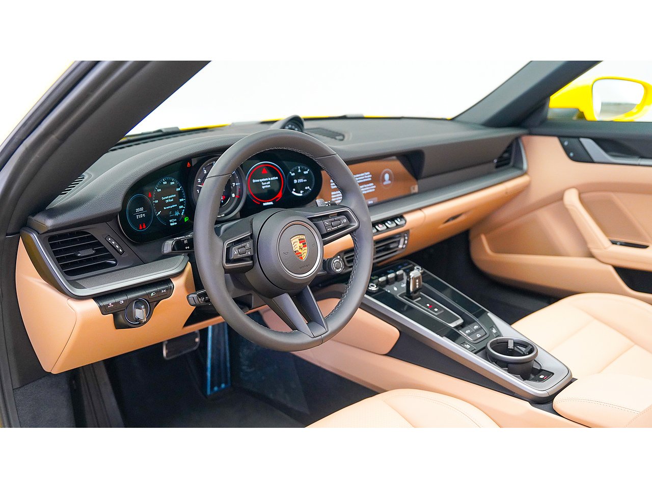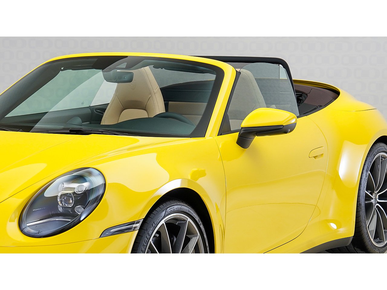 This 2024 Porsche 911 Cabriolet delivers timeless open-top performance paired with unmistakable Porsche design, finished in striking Racing Yellow with a contrasting brown convertible roof and a refined Beige interior.