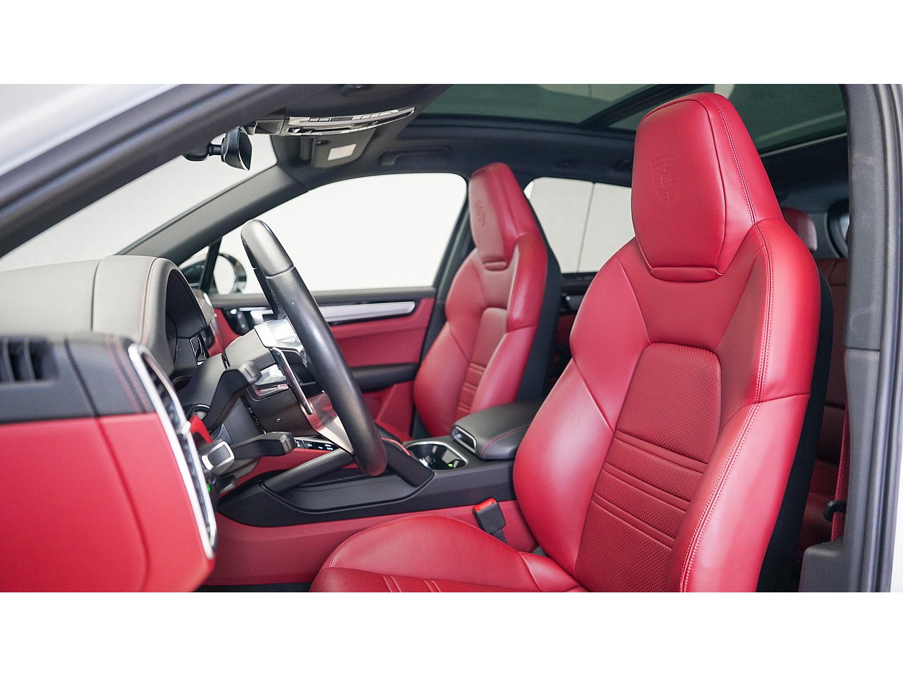Porsche crest embossed on front and rear headrests,