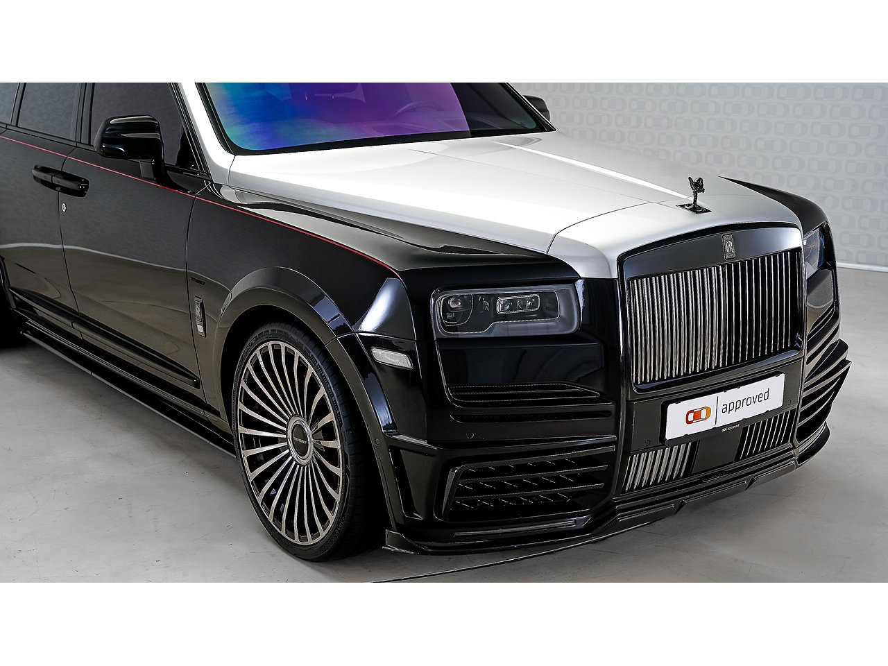 Finished in a striking two-tone specification, this Cullinan stands out with a full Mansory body upgrade, including Mansory front bumper, Mansory rear spoiler, and commanding 24-inch Mansory alloy wheels, giving it an unmistakable road presence. Inside, the experience is pure Rolls-Royce with a starlight headliner and Bespoke audio system, delivering a first-class cabin environment with exceptional sound quality and craftsmanship.