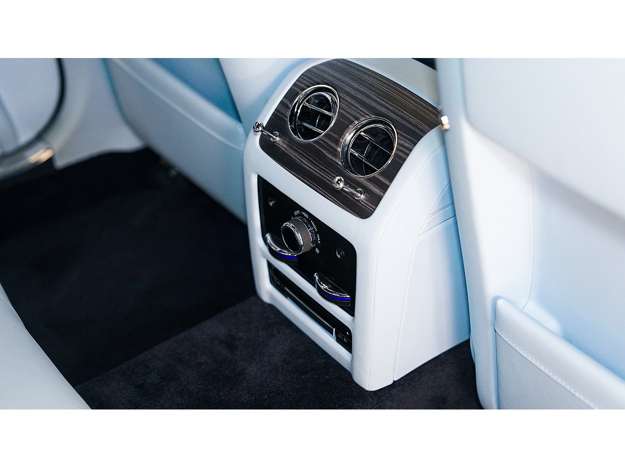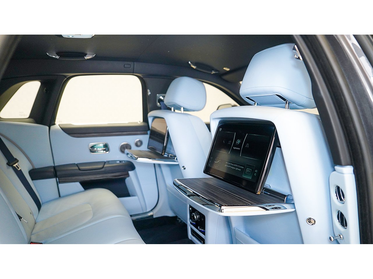 The cabin is crafted to the highest standard, featuring a Starlight Headliner, Rolls-Royce Bespoke Audio system, rear picnic tables, and plush lambswool floor mats. Comfort is elevated further with heated, ventilated, and massage front seats and soft-close doors creating a serene and indulgent environment for every journey.